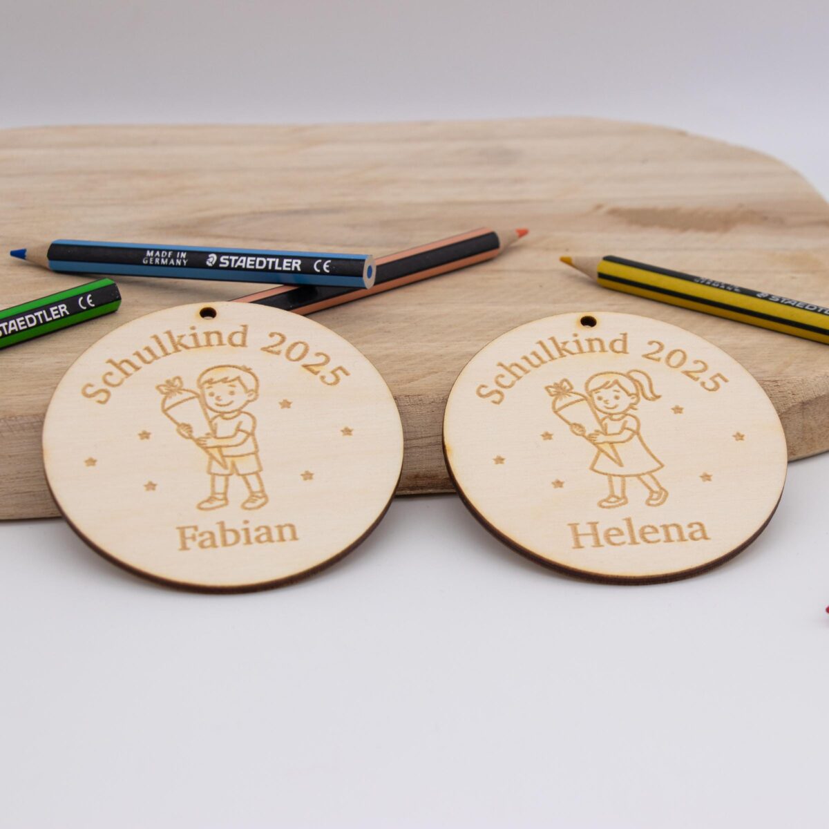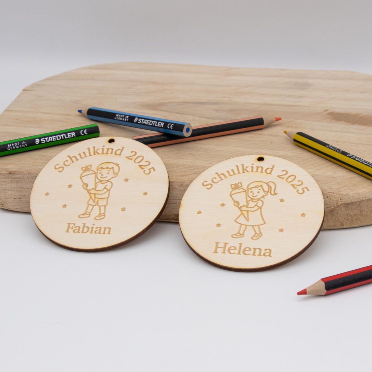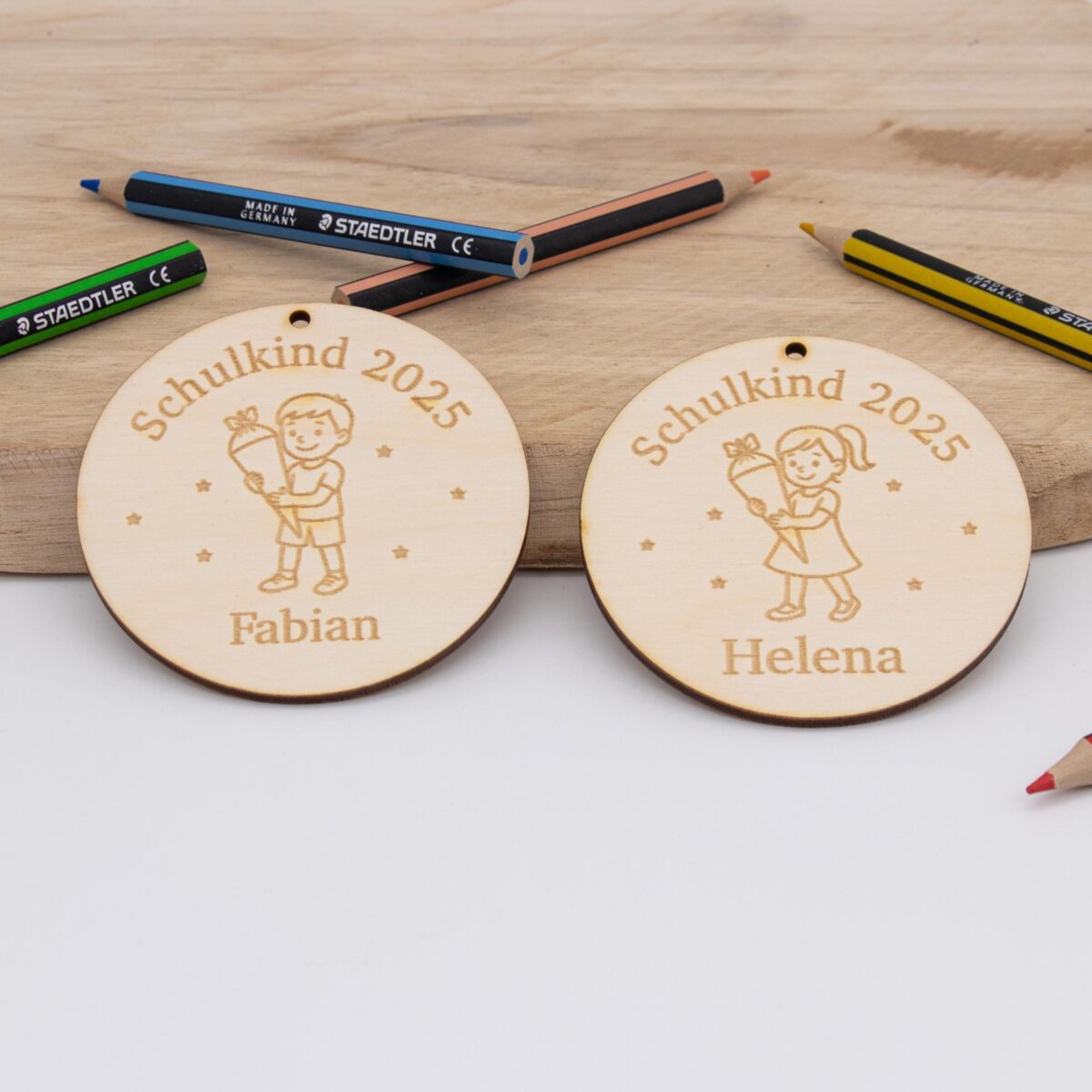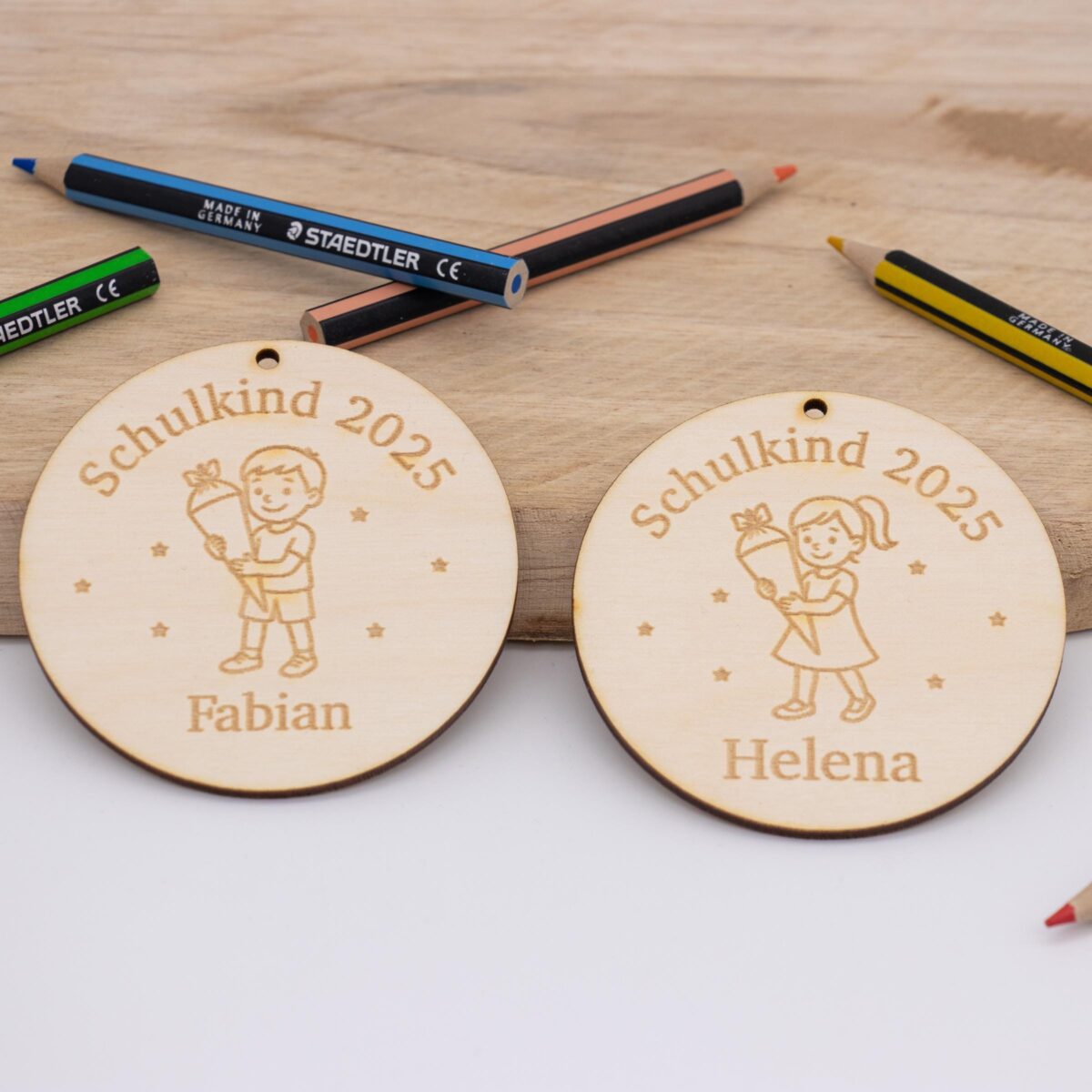 Entdecken Sie unseren handgefertigten Holzanhänger für Zuckertüten, eine charmante und persönliche Note für jeden Schulanfang. Mit einem Durchmesser von 7 cm ist dieser Anhänger ideal dimensioniert, um auffällig, aber nicht überwältigend zu sein.
