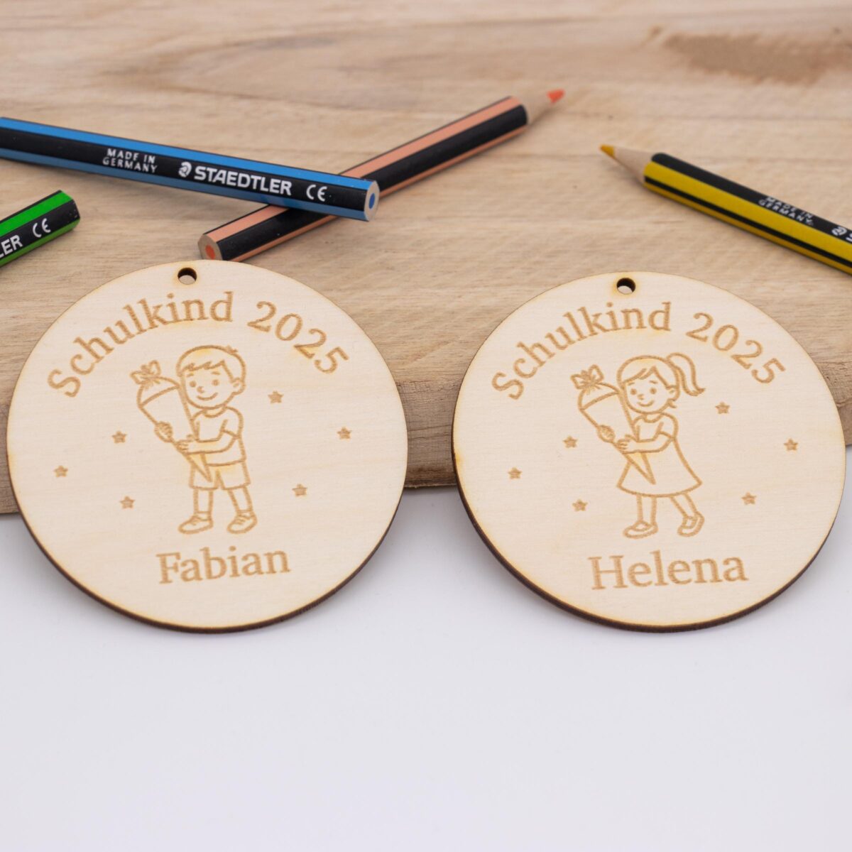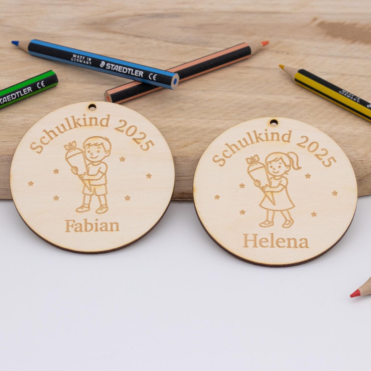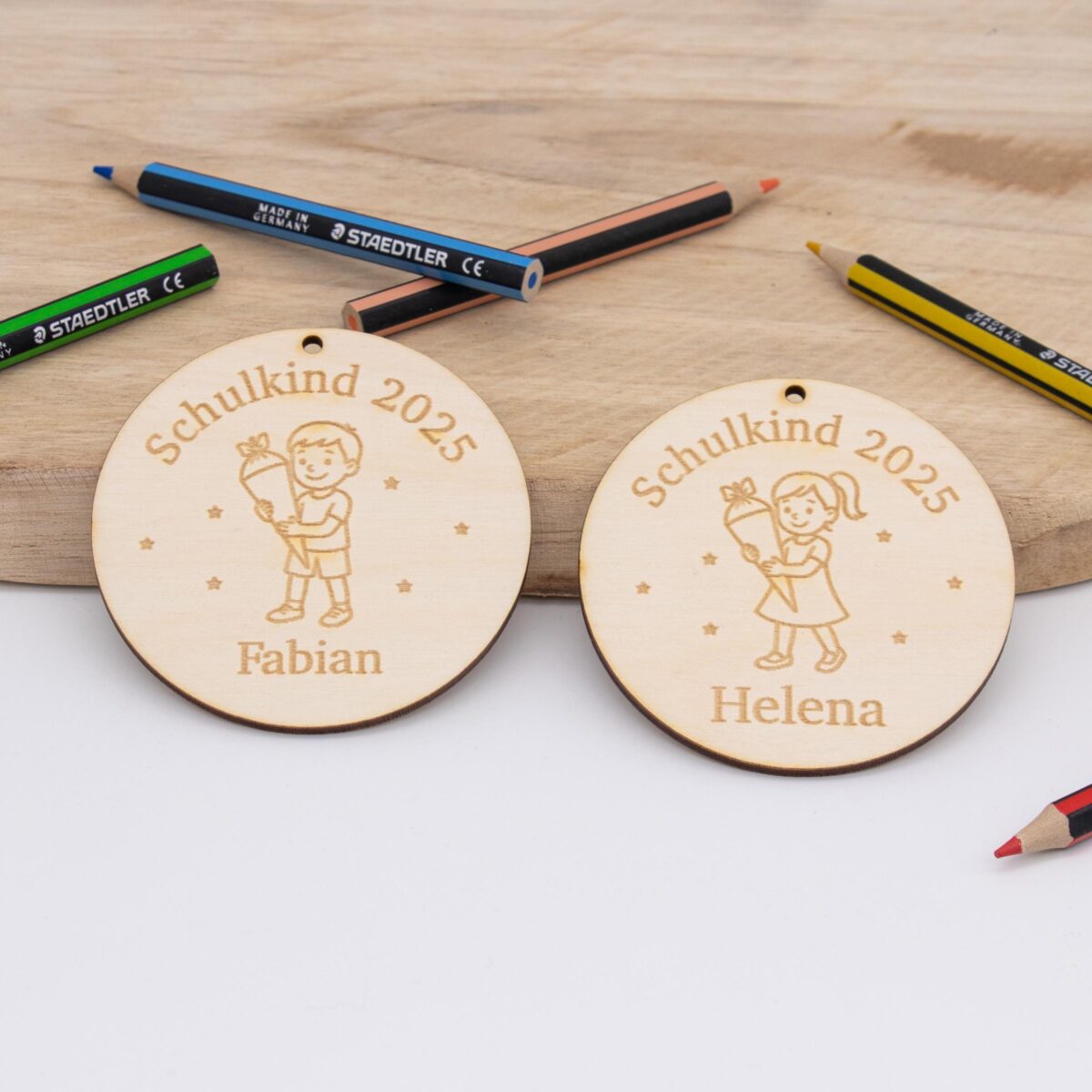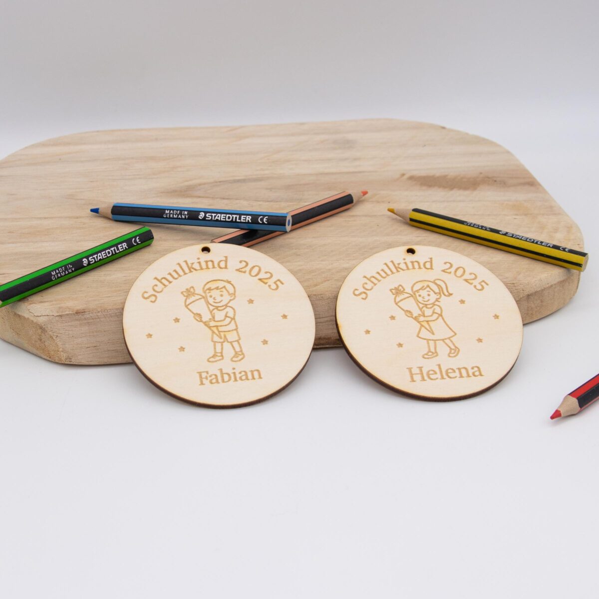 Entdecken Sie unseren handgefertigten Holzanhänger für Zuckertüten, eine charmante und persönliche Note für jeden Schulanfang. Mit einem Durchmesser von 7 cm ist dieser Anhänger ideal dimensioniert, um auffällig, aber nicht überwältigend zu sein.