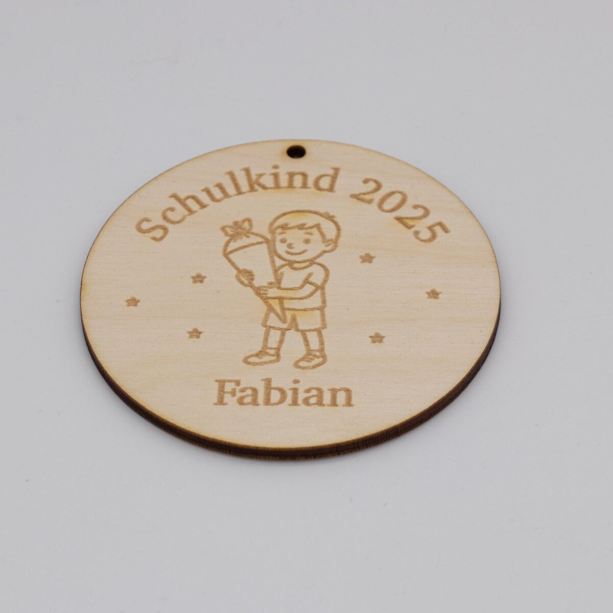 Produkt: Personalisierbarer Holzanhänger für Zuckertüten, Durchmesser 7 cm