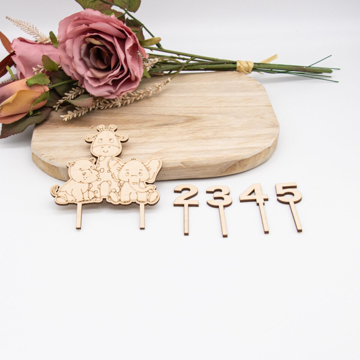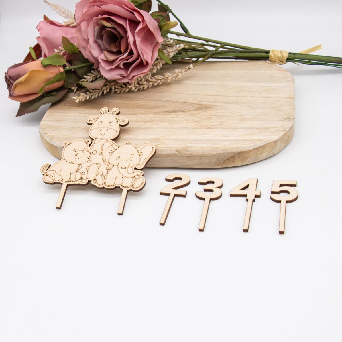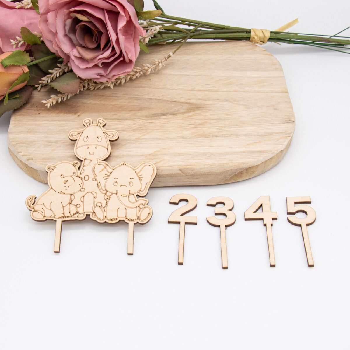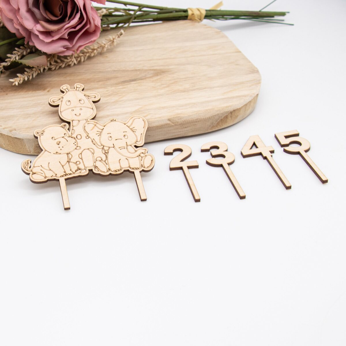 Design: Liebevoll gestaltete Dschungeltiere, präzise ausgeschnitten mit modernster Lasertechnologie. Die filigranen Details der Tiere, von der majestätischen Giraffe bis zum Elefanten, bringen Leben und Charakter auf jede Torte.