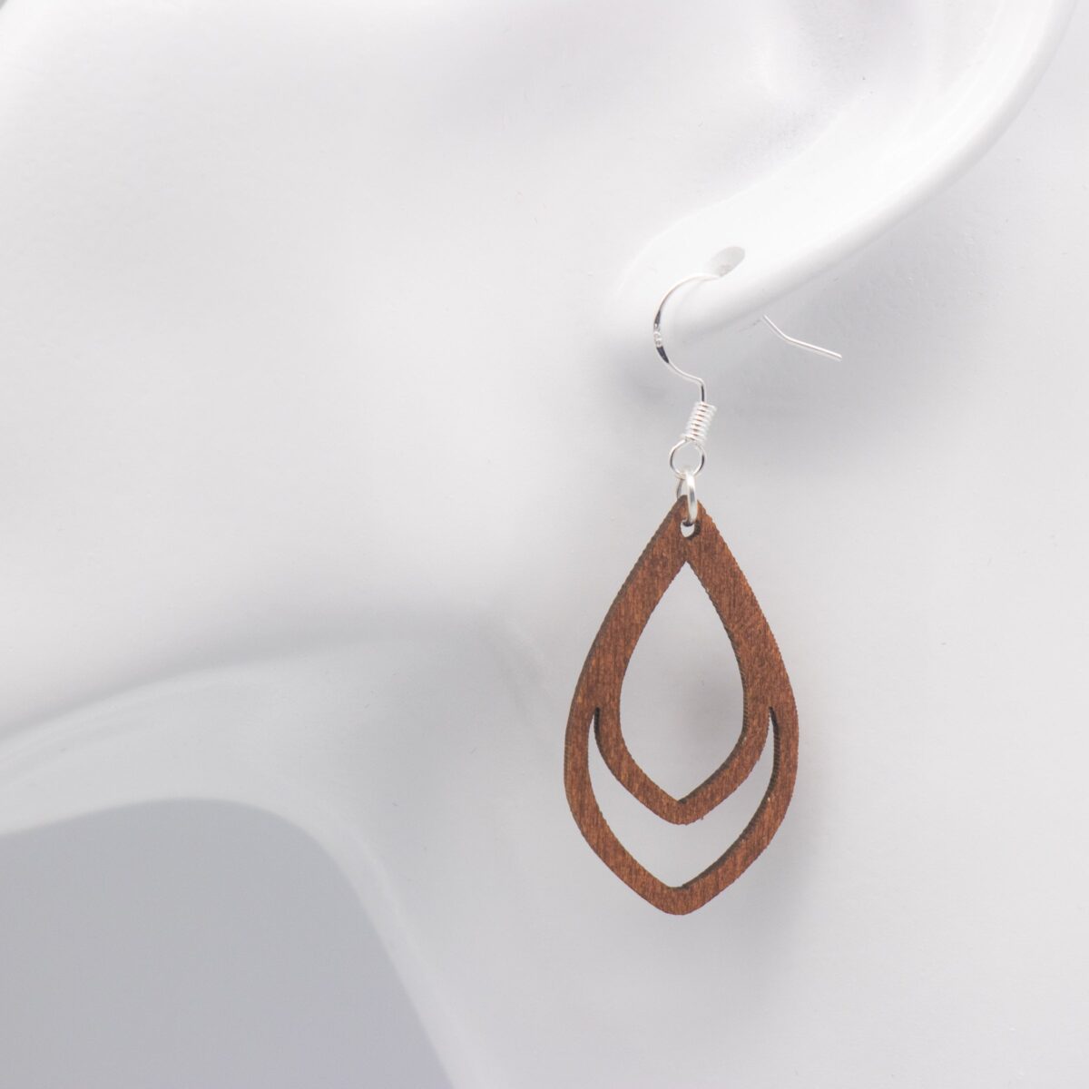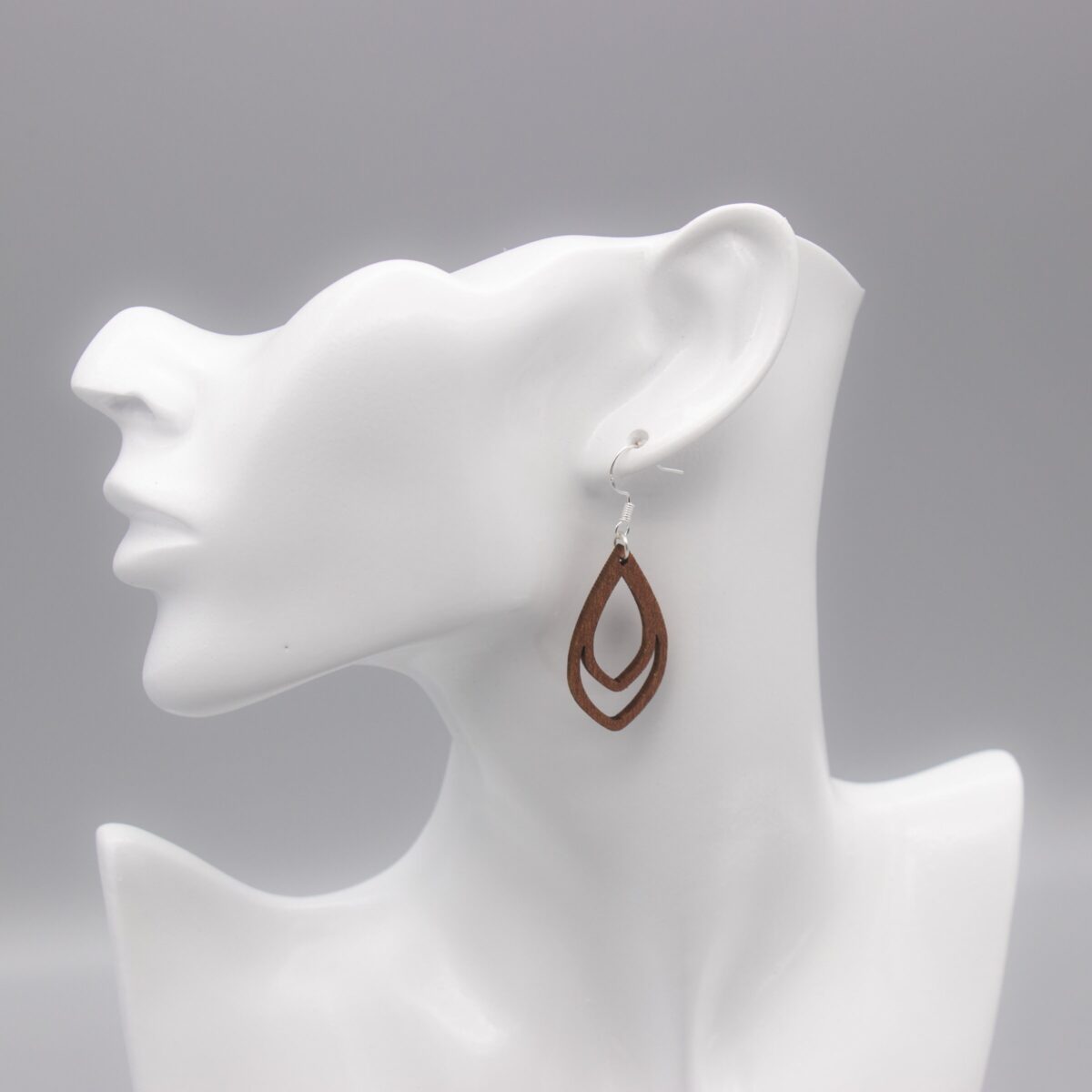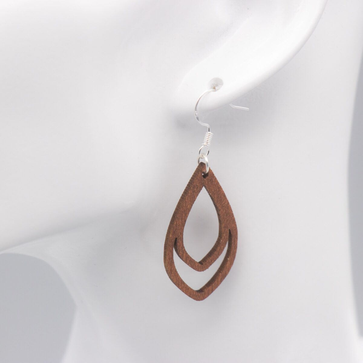 Diese Ohrstecker sind handgemacht mithilfe unseres Lasers. Sie bestehen aus Holz mit Edelstahl Haken.