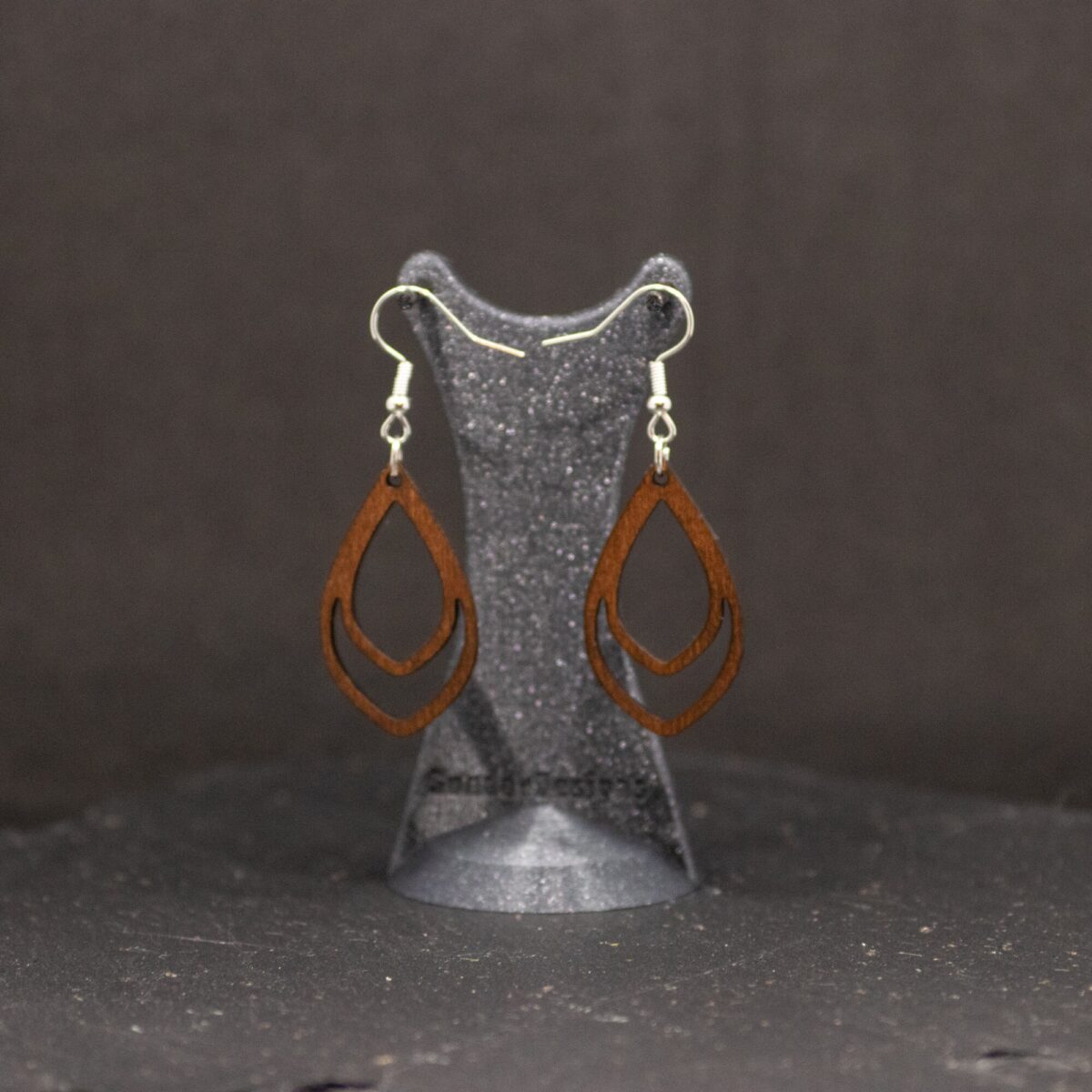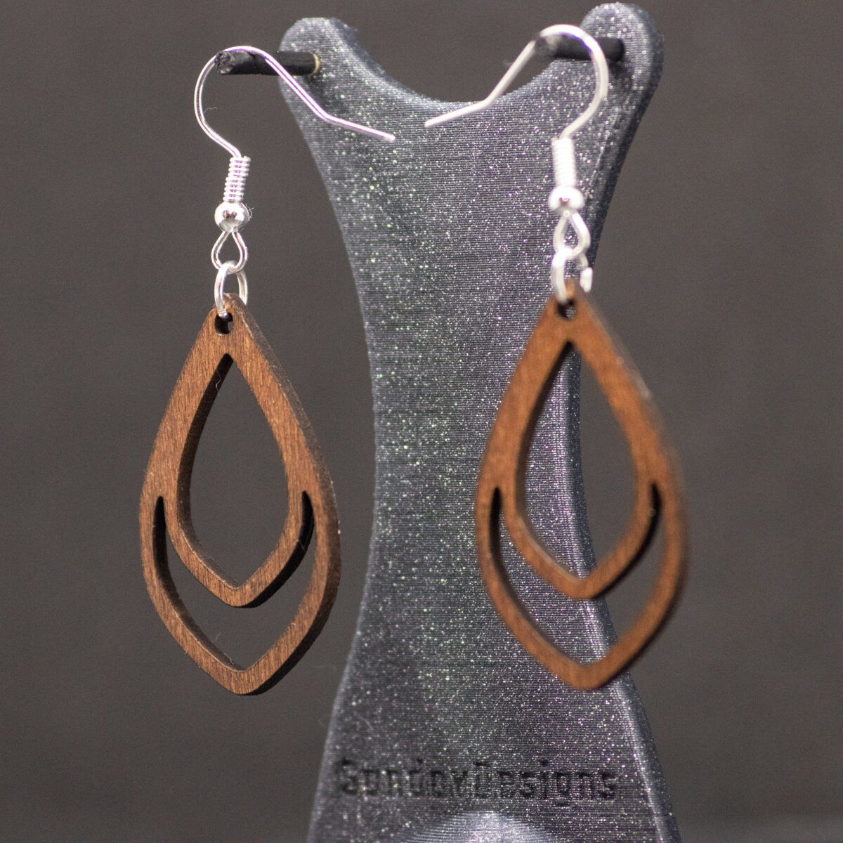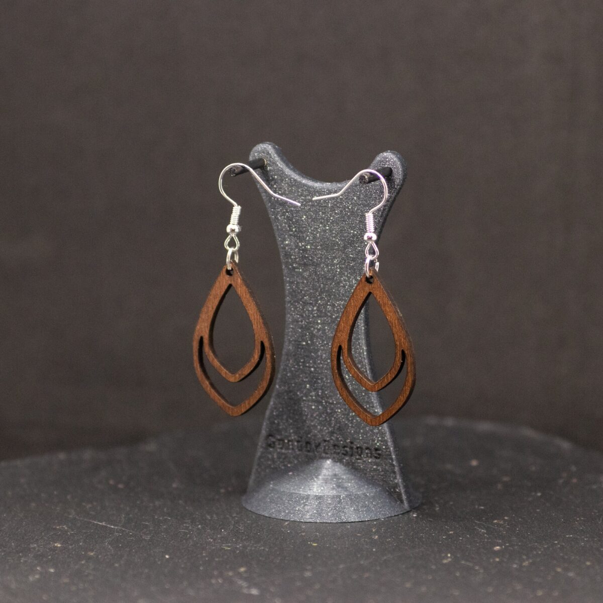 Diese Ohrstecker sind handgemacht mithilfe unseres Lasers. Sie bestehen aus Holz mit Edelstahl Haken.