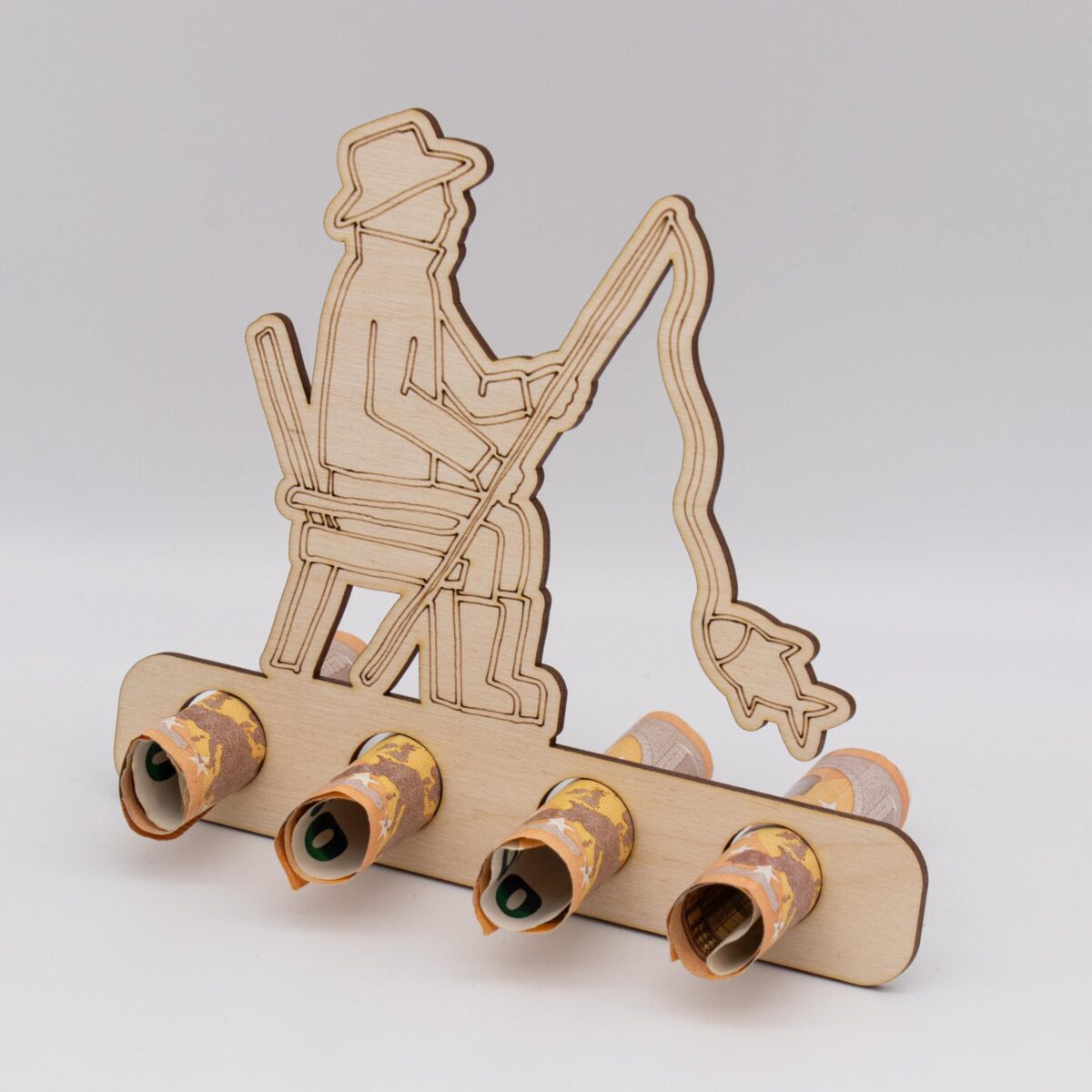 Das stilvolle Motiv zeigt einen entspannten Angler, der auf einem Stuhl sitzt und mit seiner Angel die Ruhe am Wasser genießt. Gefertigt aus hochwertigem Birkenholz, sorgt das Naturmaterial für eine edle Optik und eine langlebige Erinnerung.