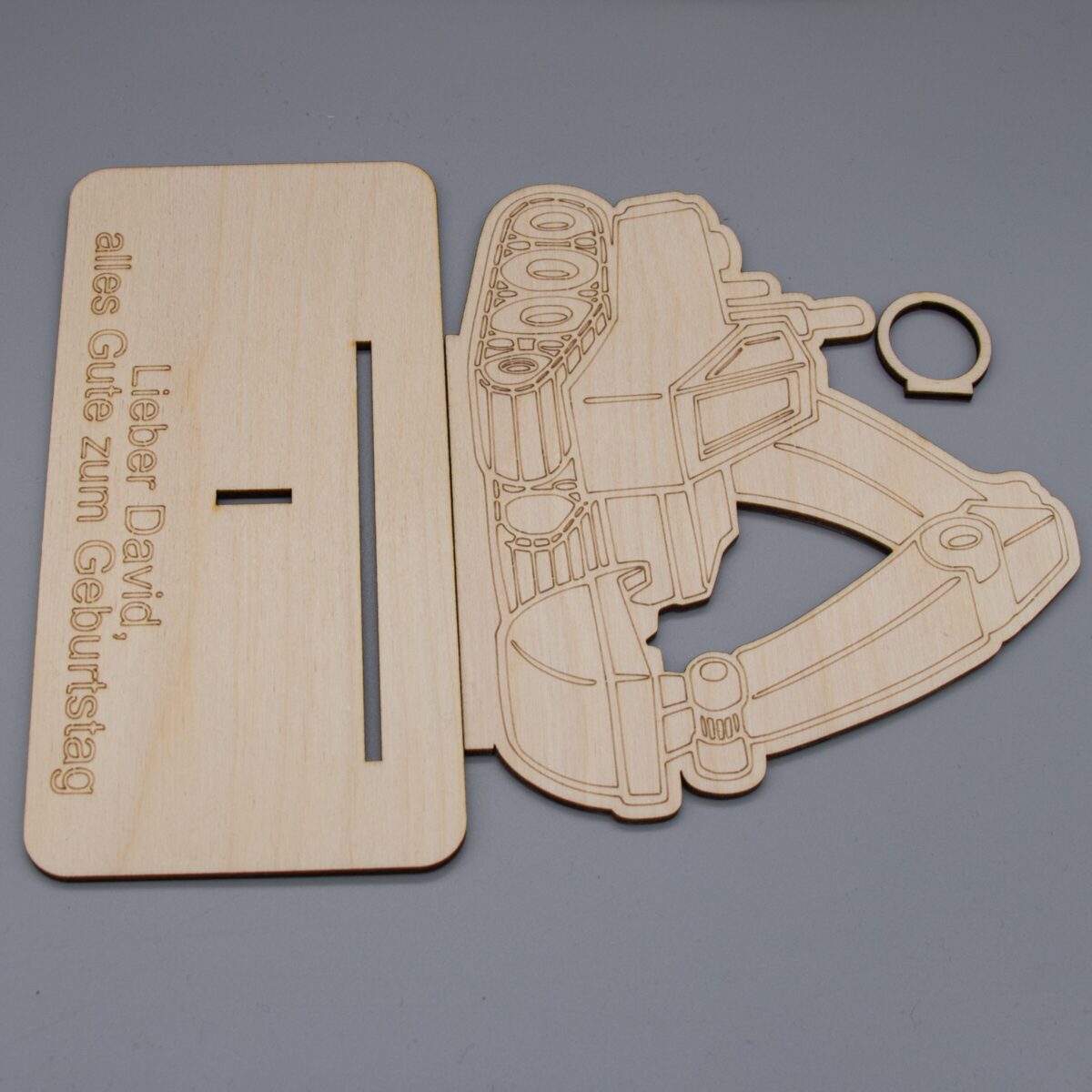 Das Set besteht aus präzise gelaserten Einzelteilen aus 3 mm starkem Holz, die sich ganz einfach zusammenstecken oder kleben lassen. Ob als Highlight auf dem Geschenketisch oder als witziges Extra zur Geburtstagskarte – der detailreiche Bagger sorgt garantiert für ein Schmunzeln und bleibt in Erinnerung.