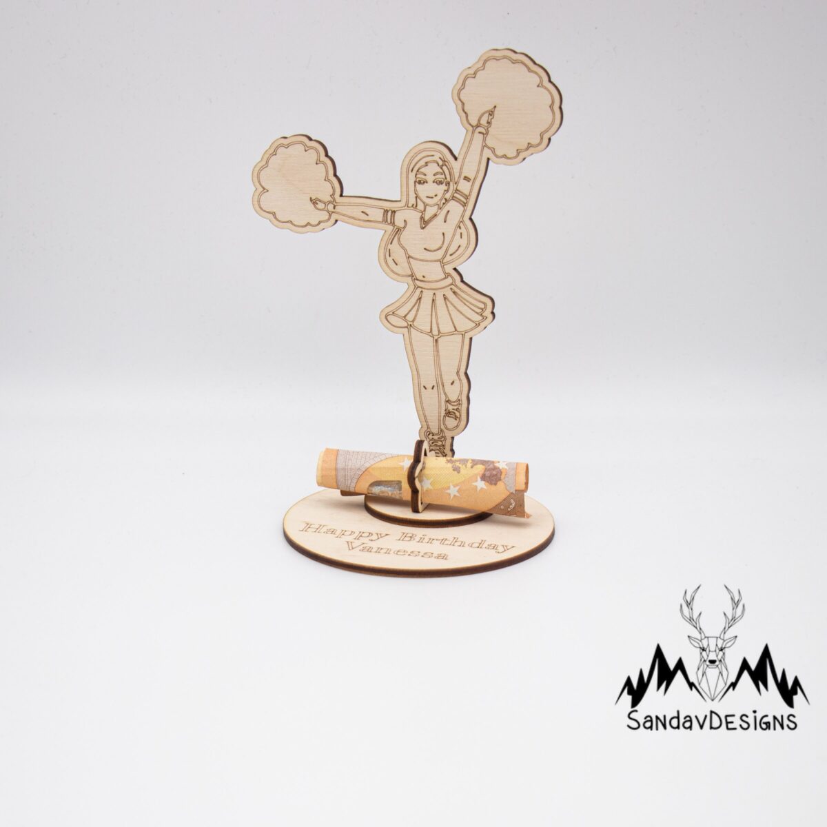 Unser Geldgeschenk aus 3 mm Birkensperrholz bietet nicht nur eine stilvolle Präsentation für Geldscheine, sondern kann auch als dekoratives Element in jedem Zuhause dienen. Es kann an der Wand aufgehängt oder auf einem Regal platziert werden, um eine wunderbare Erinnerung an den besonderen Anlass zu schaffen.