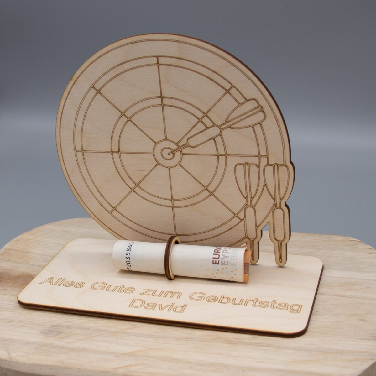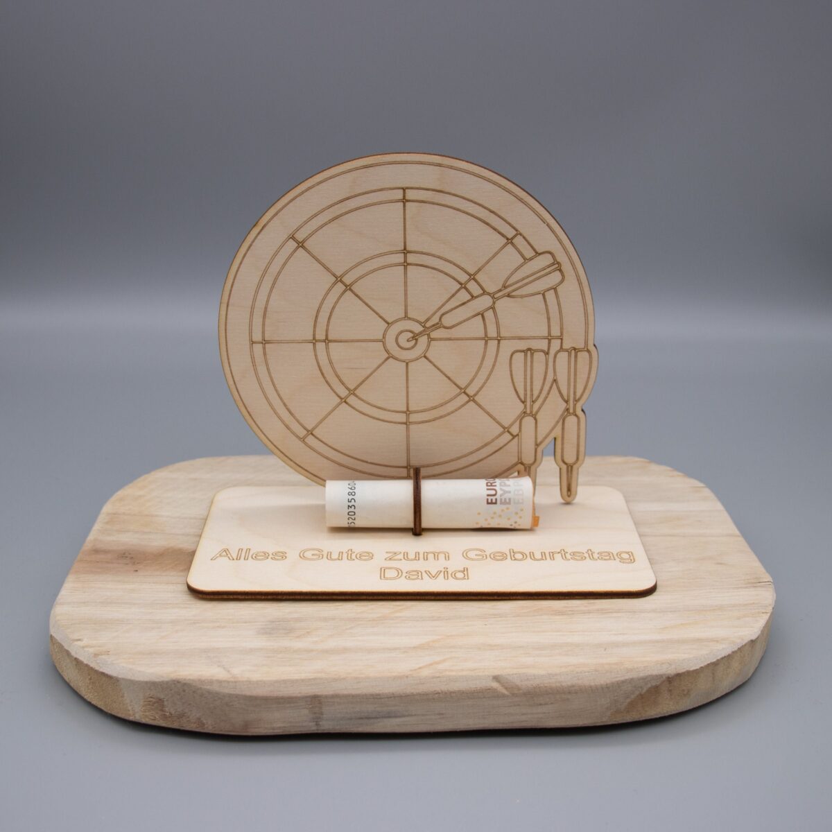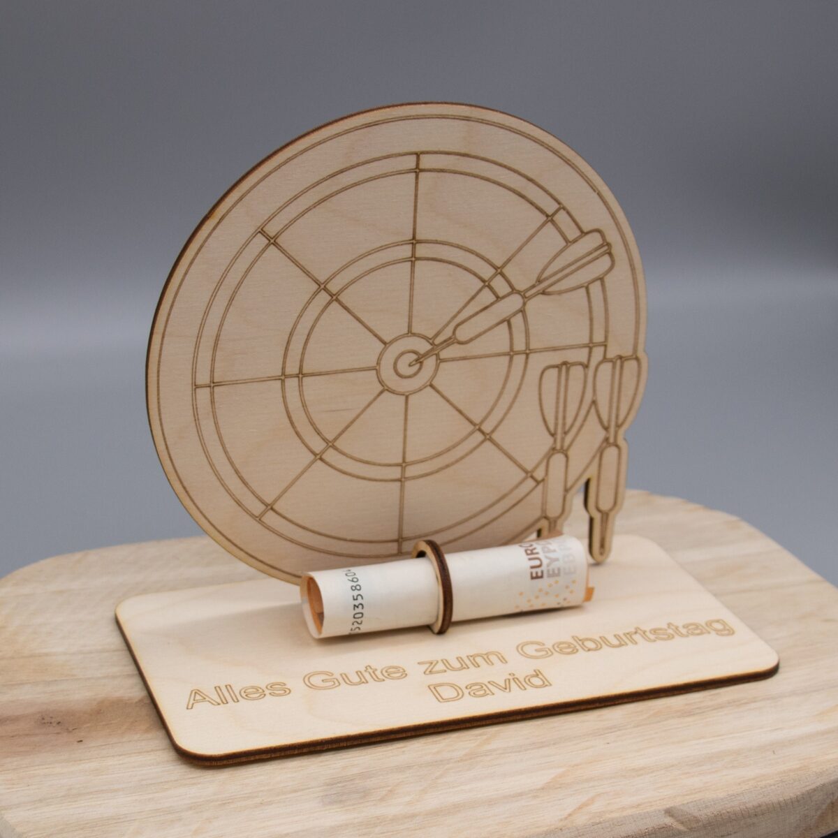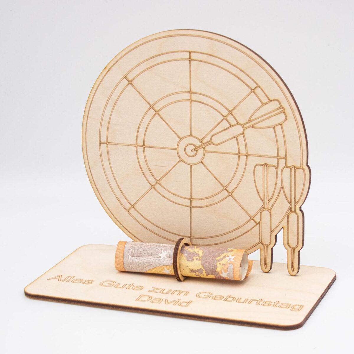 Geldgeschenk Dart – aus Holz personalisiert