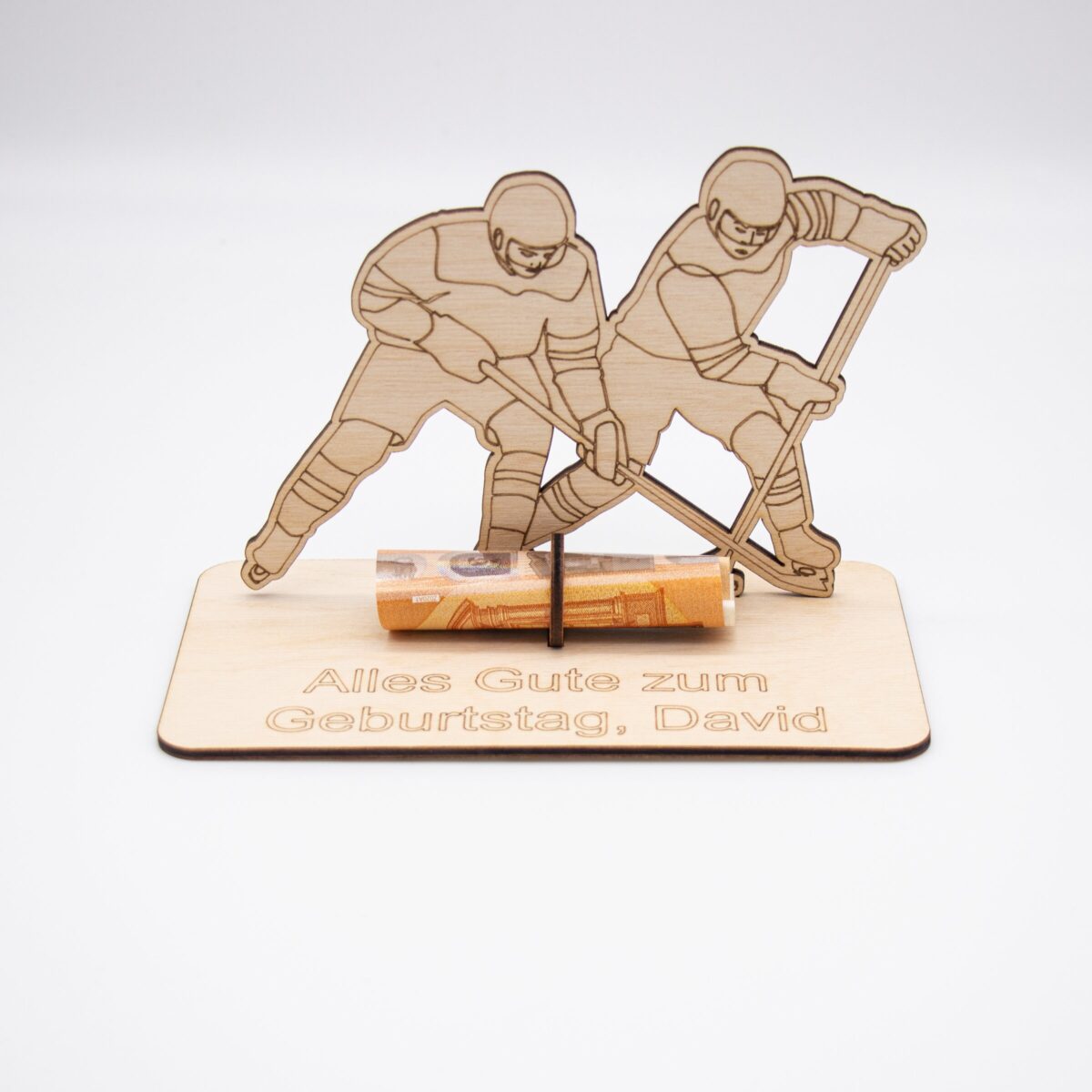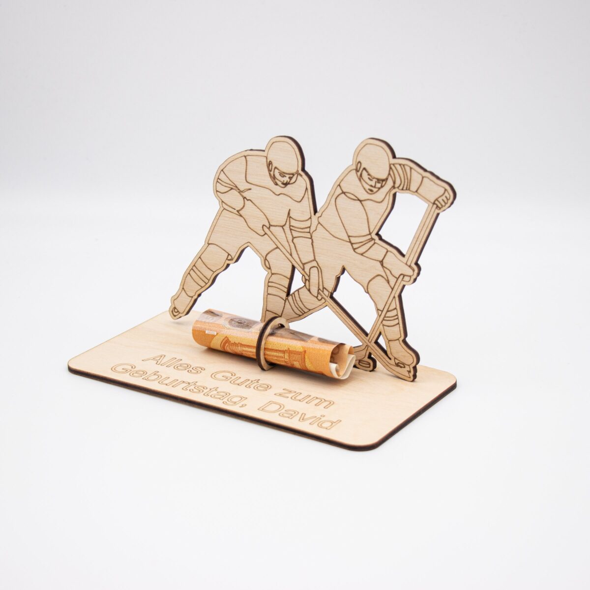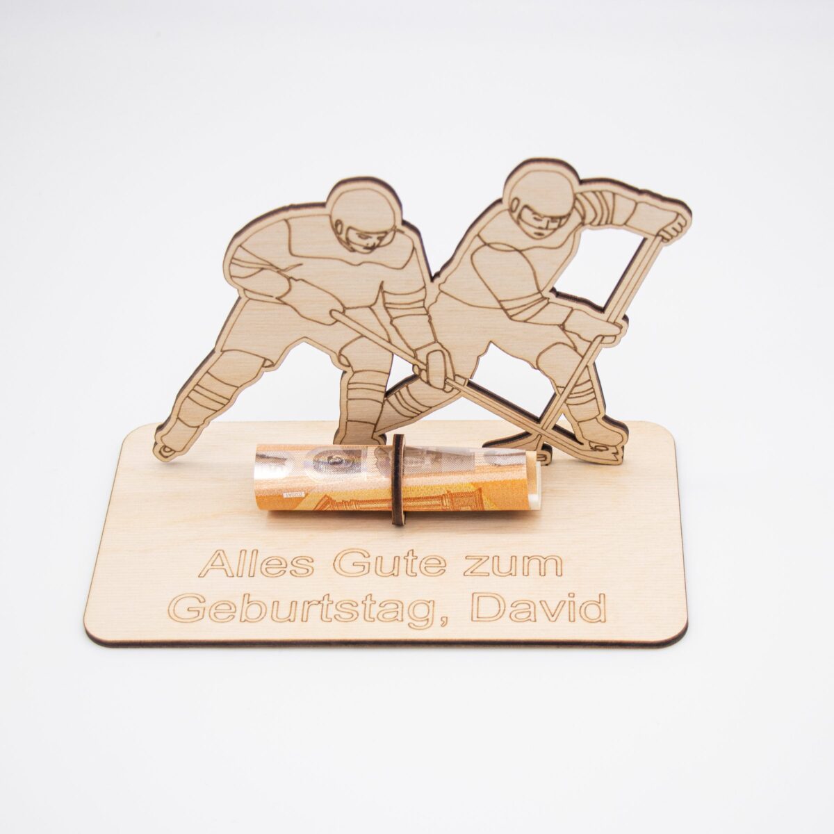 Du suchst nach einer originellen Verpackung für Geldgeschenke mit sportlicher Note? Unser Geldgeschenk aus 3 mm Holz mit Eishockey-Motiv ist die perfekte Lösung für alle Eishockey-Fans!