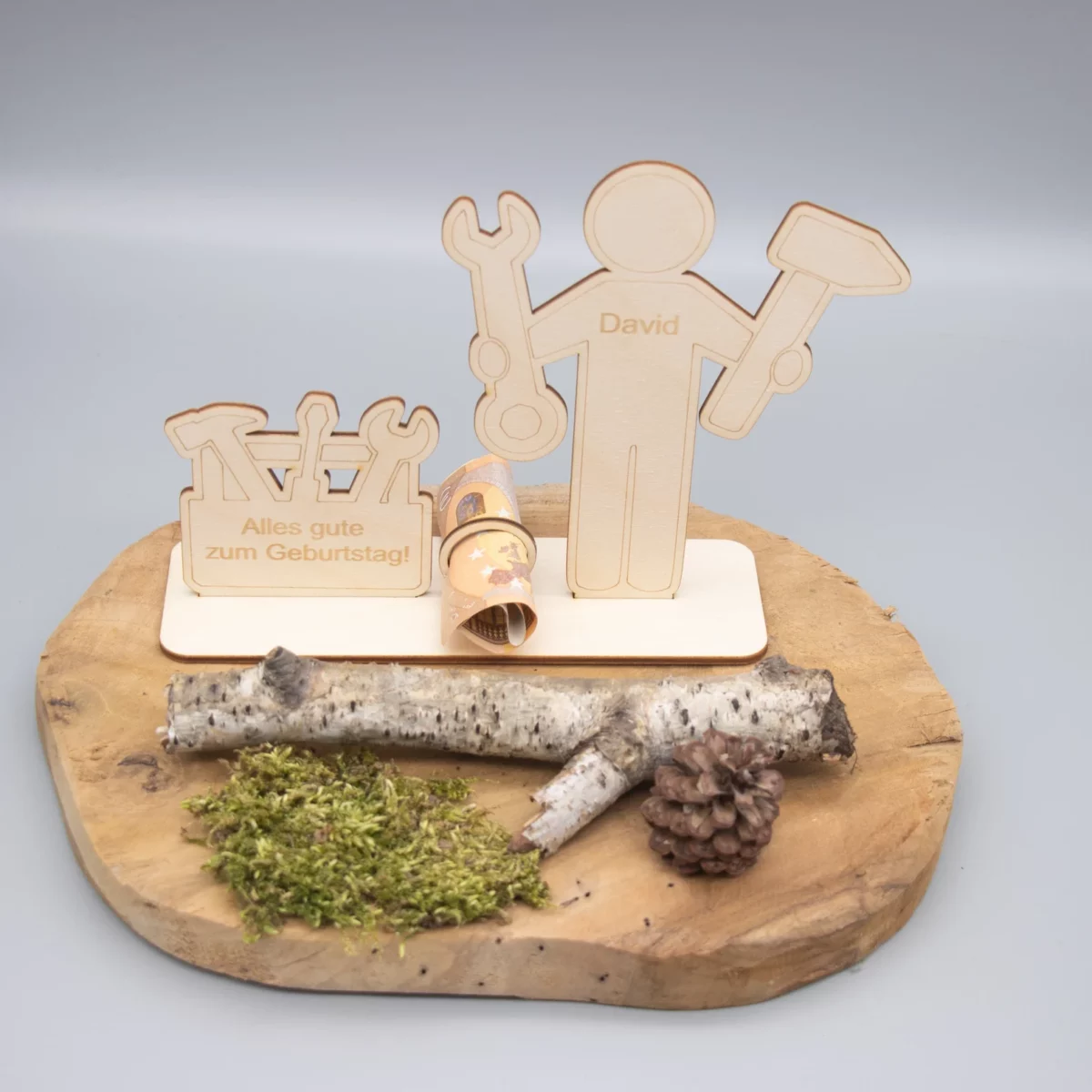 Du suchst nach einer kreativen Art, Geld zu verschenken? Unser liebevoll gestalteter Holzaufsteller im Handwerker-Design ist die perfekte Lösung für Geburtstage, Gesellenfeiern, Rentenabschiede oder andere besondere Anlässe rund um Handwerk & Heimwerken!