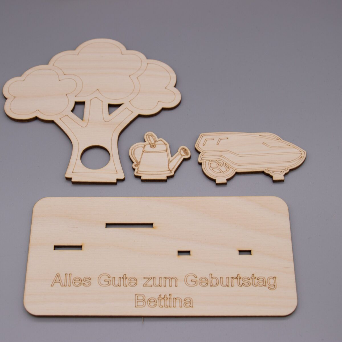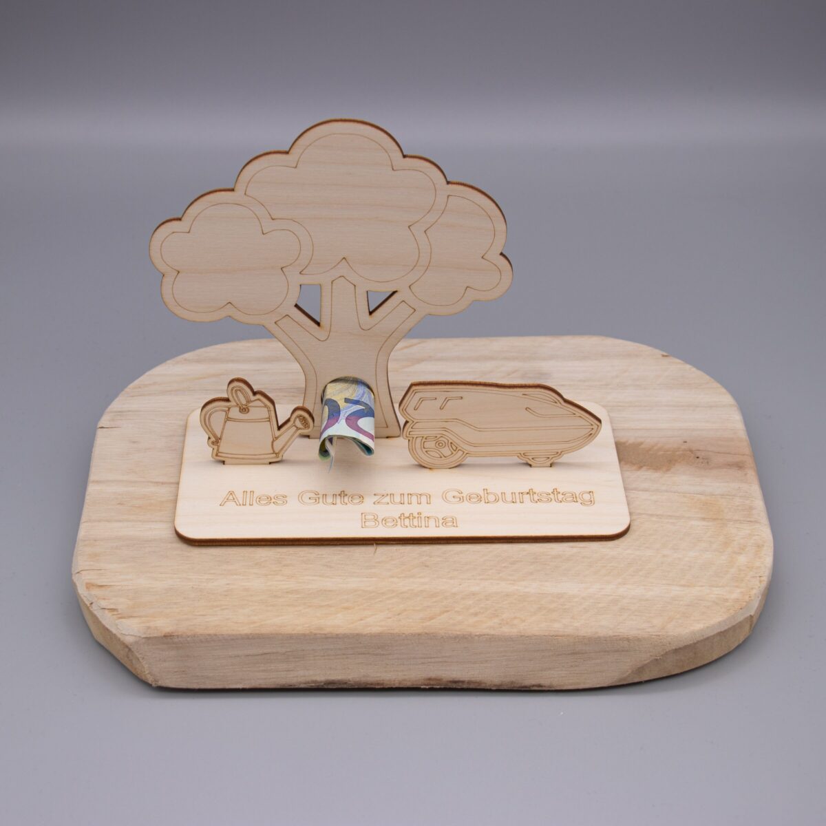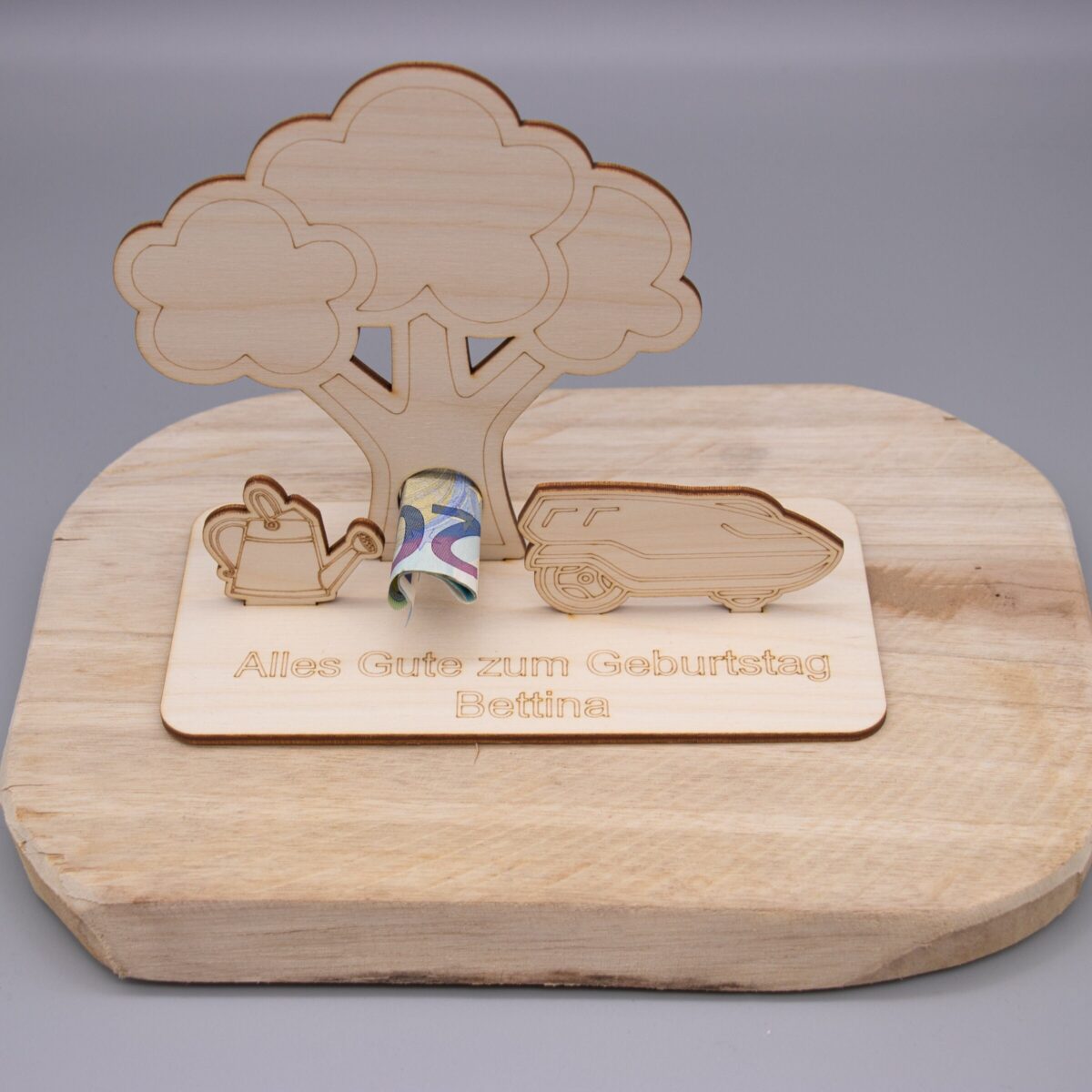 Auf der Suche nach einem einzigartigen und kreativen Geldgeschenk? Entdecke „Der blühende Garten“, ein meisterhaft hergestelltes Geldgeschenk aus 3mm dickem Birkensperrholz, präzise und kunstvoll mit Laser geschnitten.