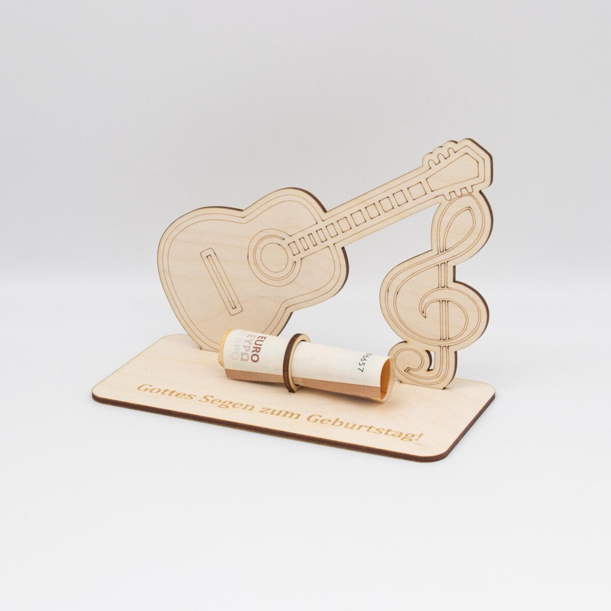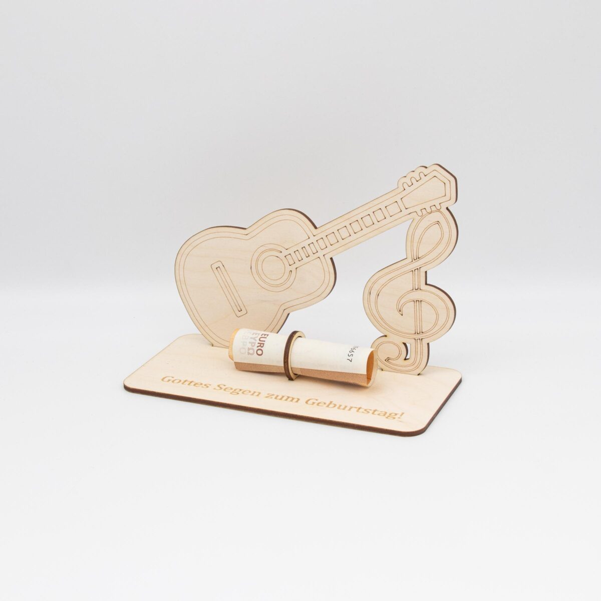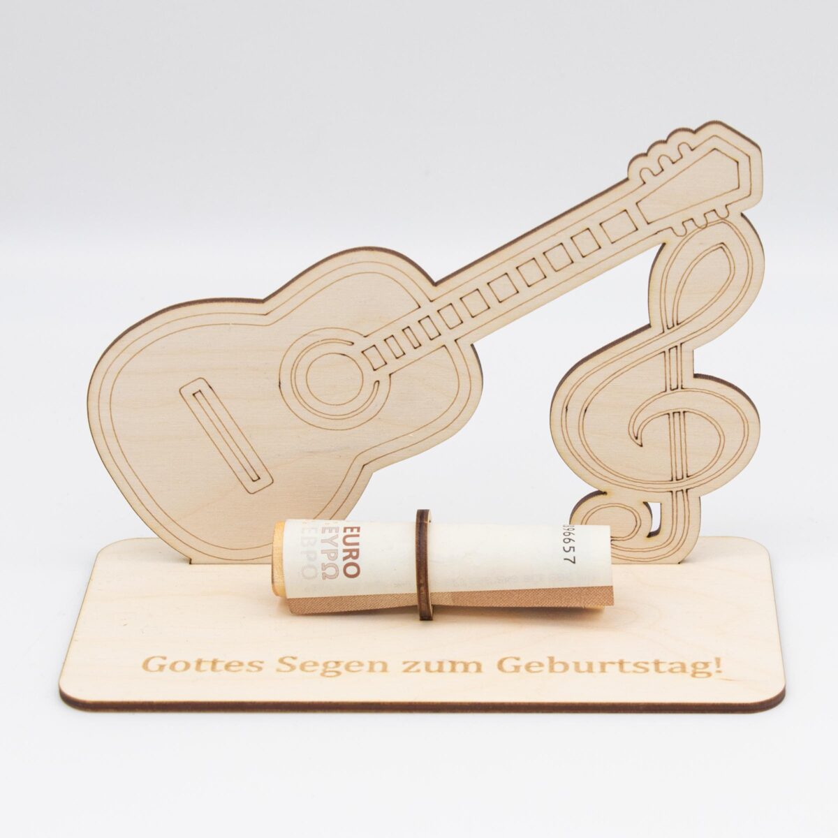 Hergestellt aus hochwertigem 3mm dickem Birkensperrholz, zeichnet sich dieses einzigartige Geldgeschenk durch seine Langlebigkeit und ästhetische Eleganz aus. Jedes Stück wird sorgfältig mit einem Laser ausgeschnitten und graviert, um ein makelloses Finish und exquisite Details zu gewährleisten, die die Essenz der Musik einfangen.