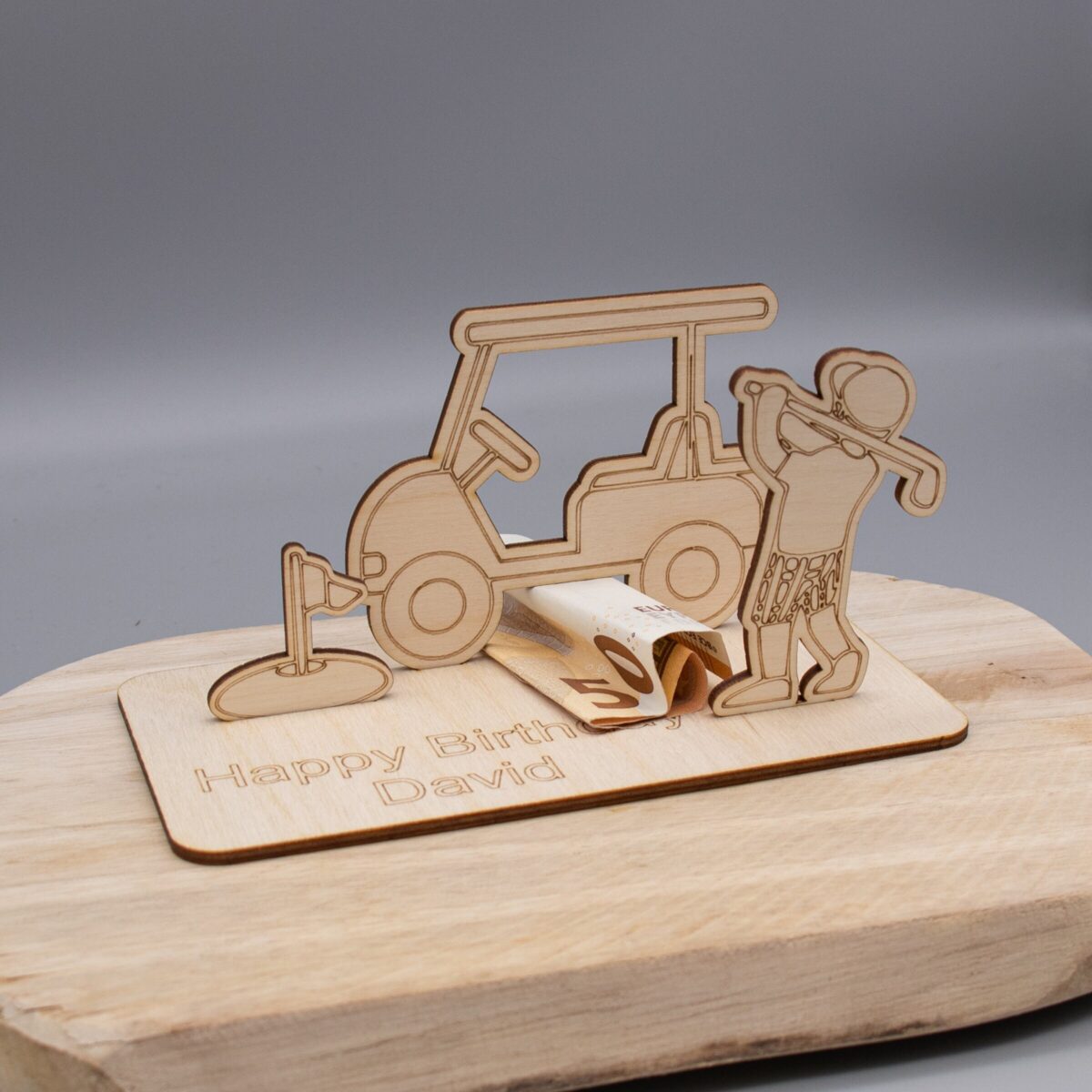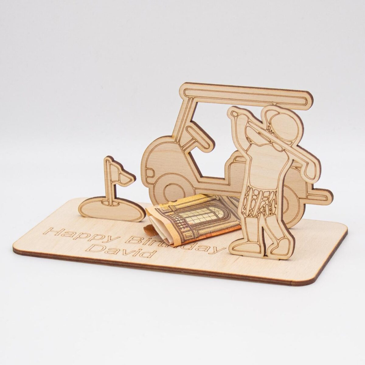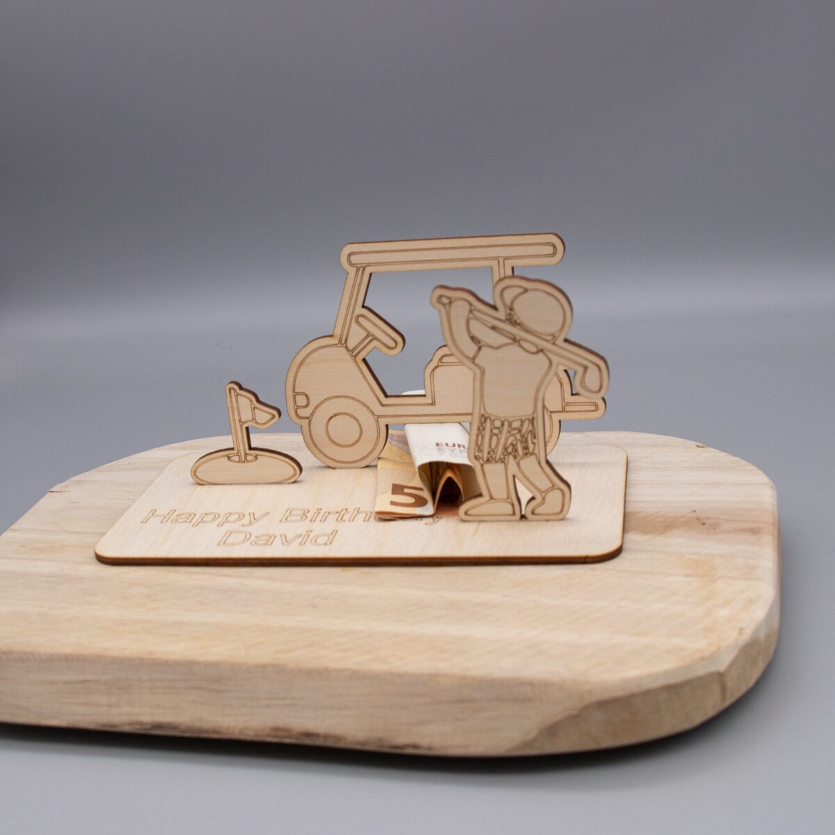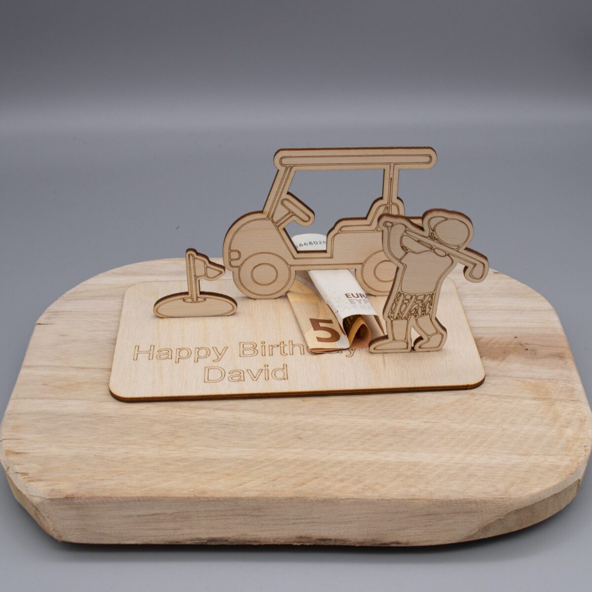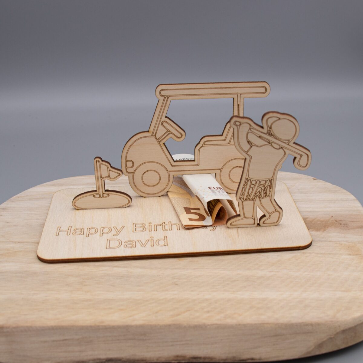 Bestellen Sie jetzt dieses einzigartige Geldgeschenk und überraschen Sie den Golf-Liebhaber in Ihrem Leben mit einem Geschenk, das sowohl in seiner Form als auch in seiner Bedeutung Bestand hat.