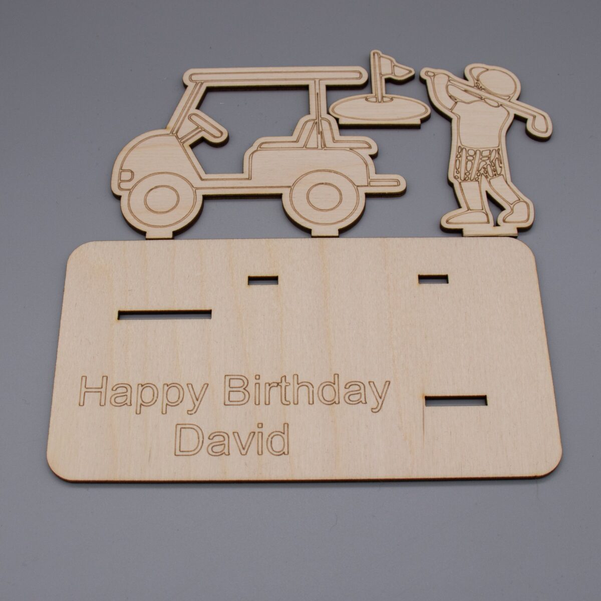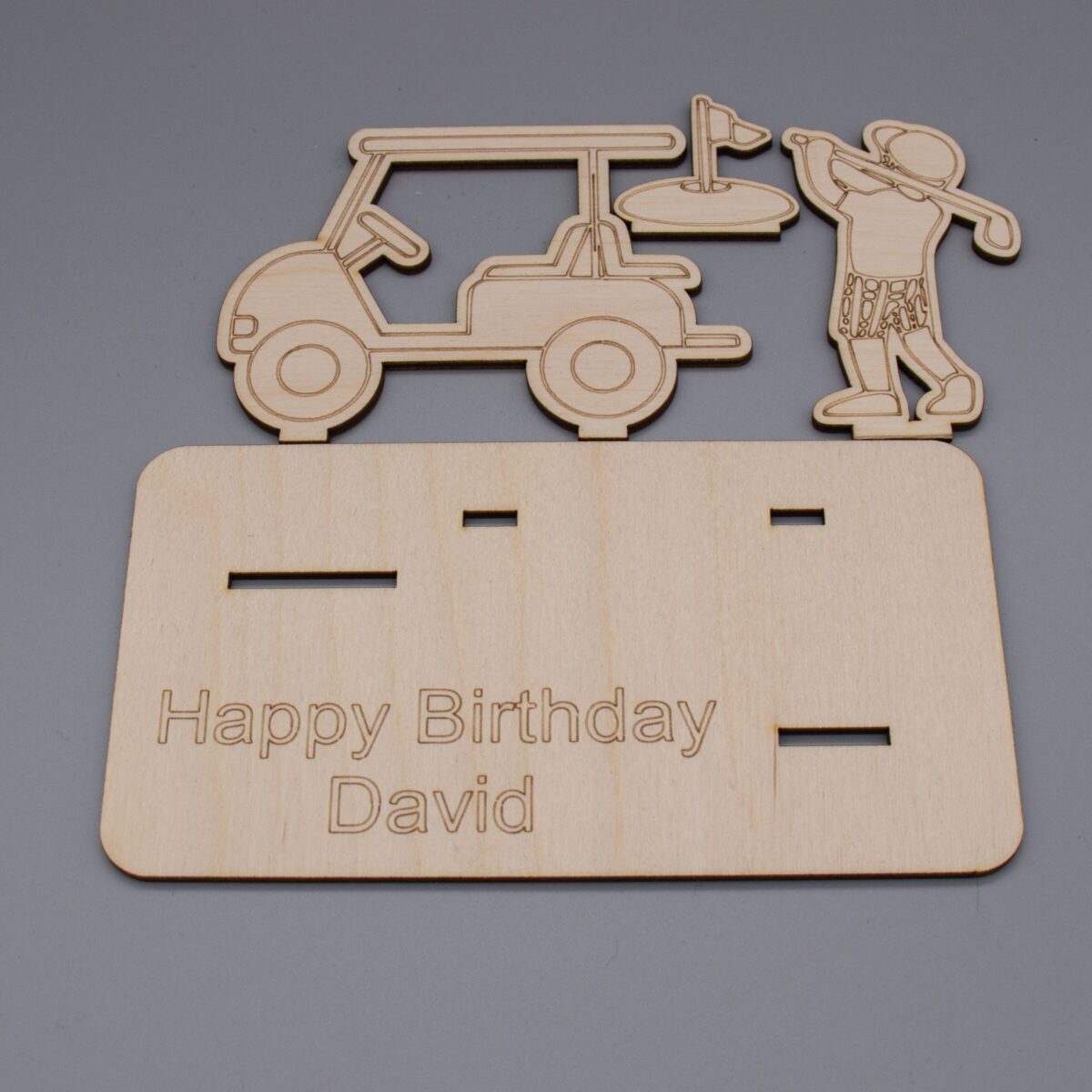 Dieses exklusive Geldgeschenk aus Holz vereint Eleganz mit einem sportlichen Touch und ist das perfekte Präsent für alle Golf-Enthusiasten. Aus unbehandeltem Birkensperrholz mit einer Stärke von .3mm meisterhaft gefertigt, zeichnet sich dieses Schmuckstück durch seine Natürlichkeit und Langlebigkeit aus.
