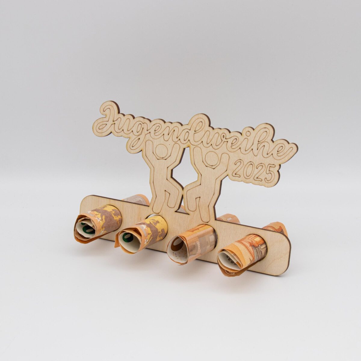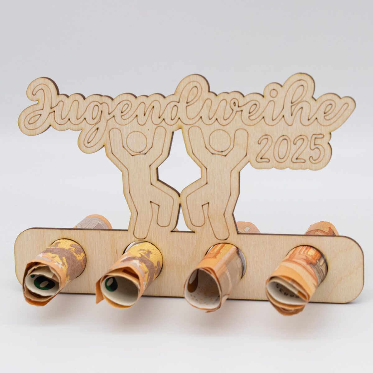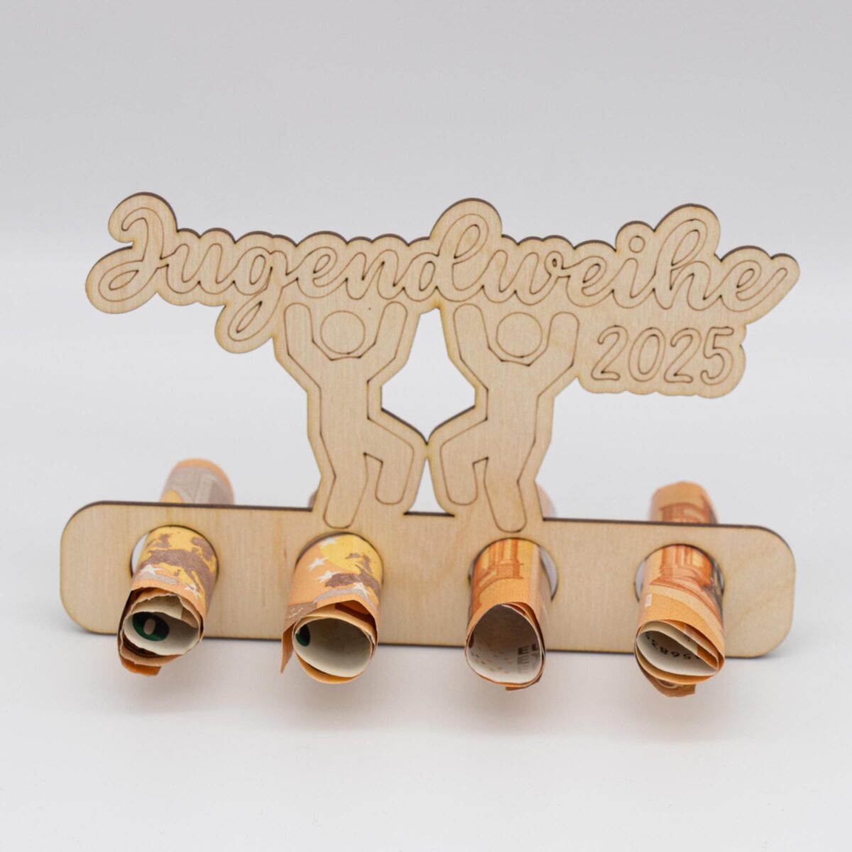 Ob als kleines Highlight auf dem Geschenketisch oder als persönliche Aufmerksamkeit – dieses Geldgeschenk aus Holz ist eine wunderschöne und besondere Art, finanzielle Unterstützung zur Jugendweihe zu überreichen.