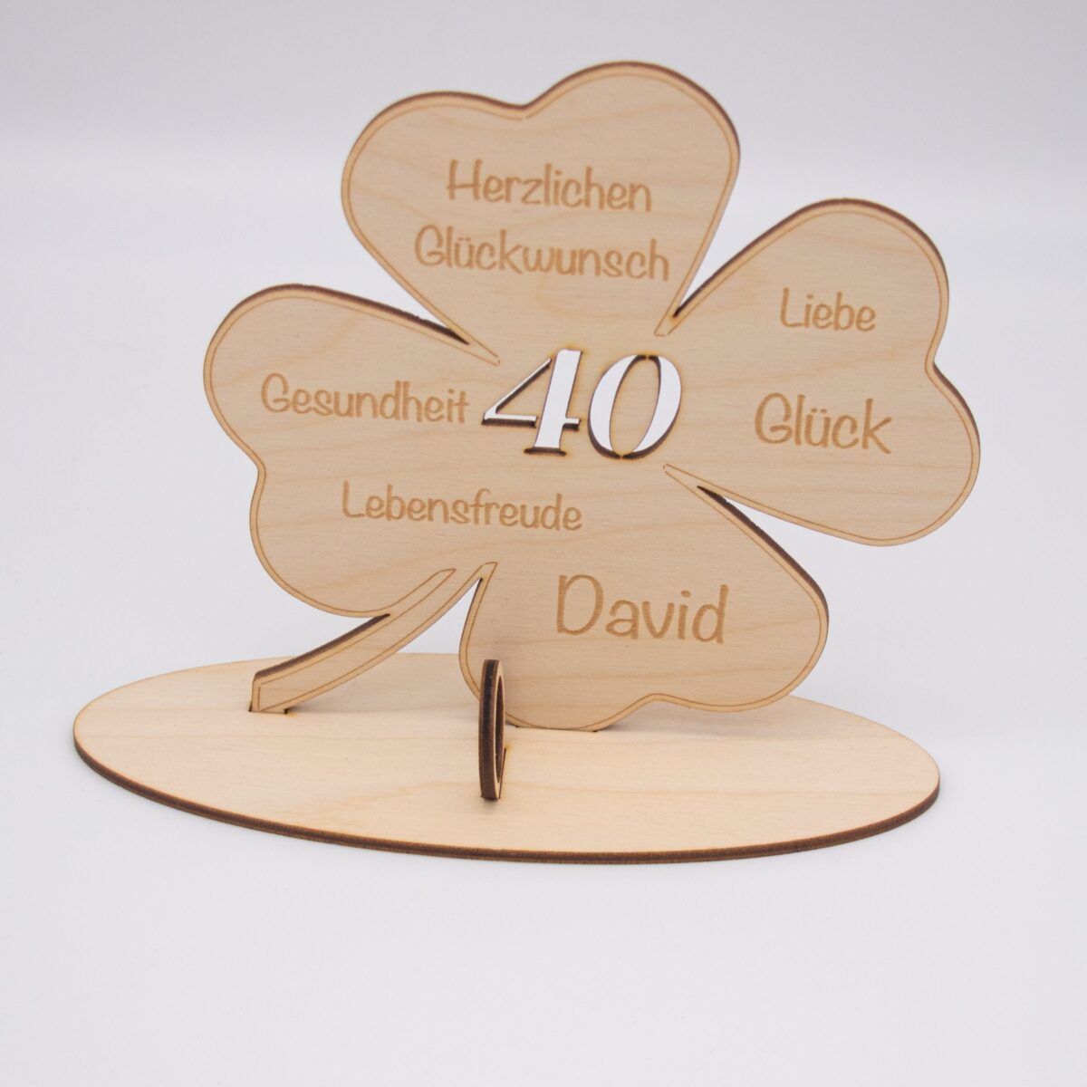 Motiv: Kleeblatt mit gravierten Glückwünschen