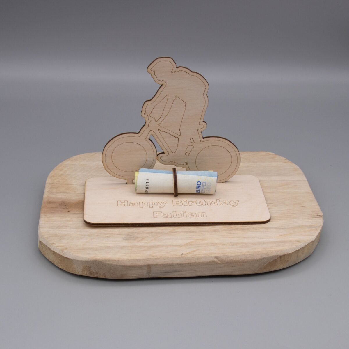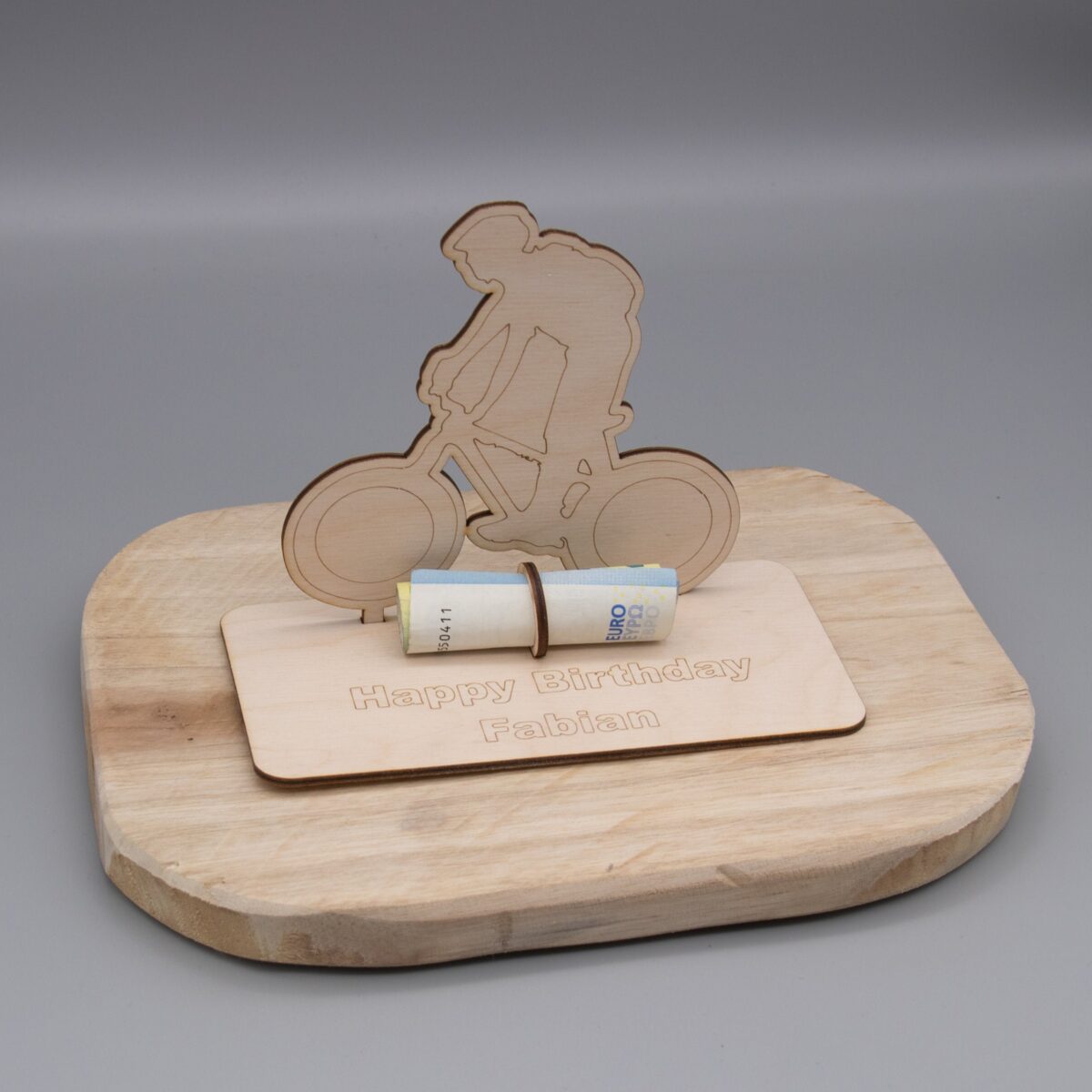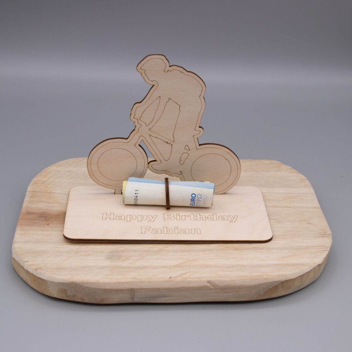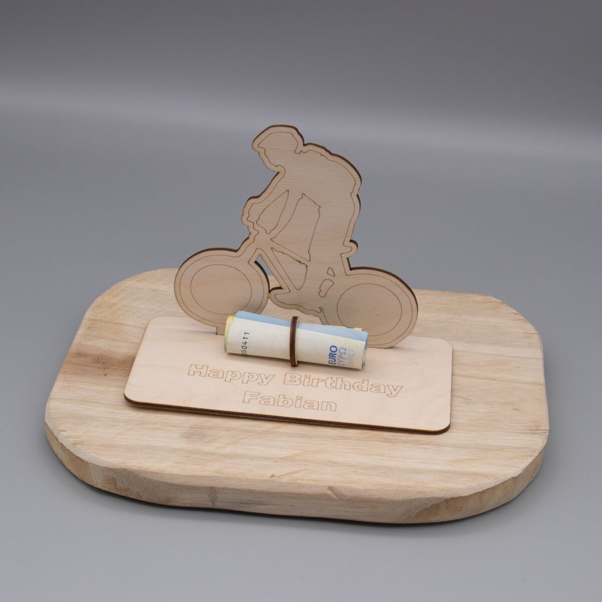 Geldgeschenk mit BMX Fahrrad – aus Holz personalisiert