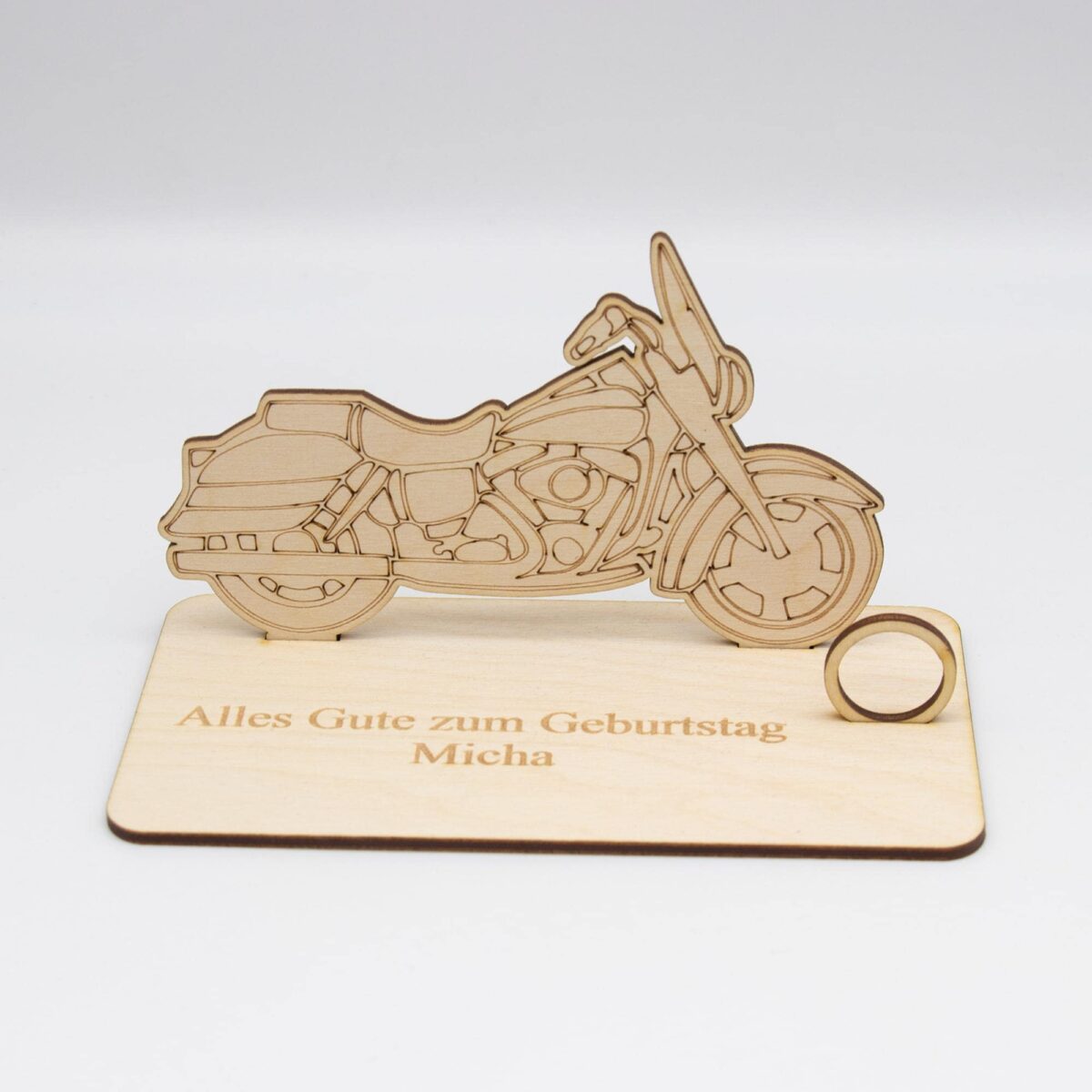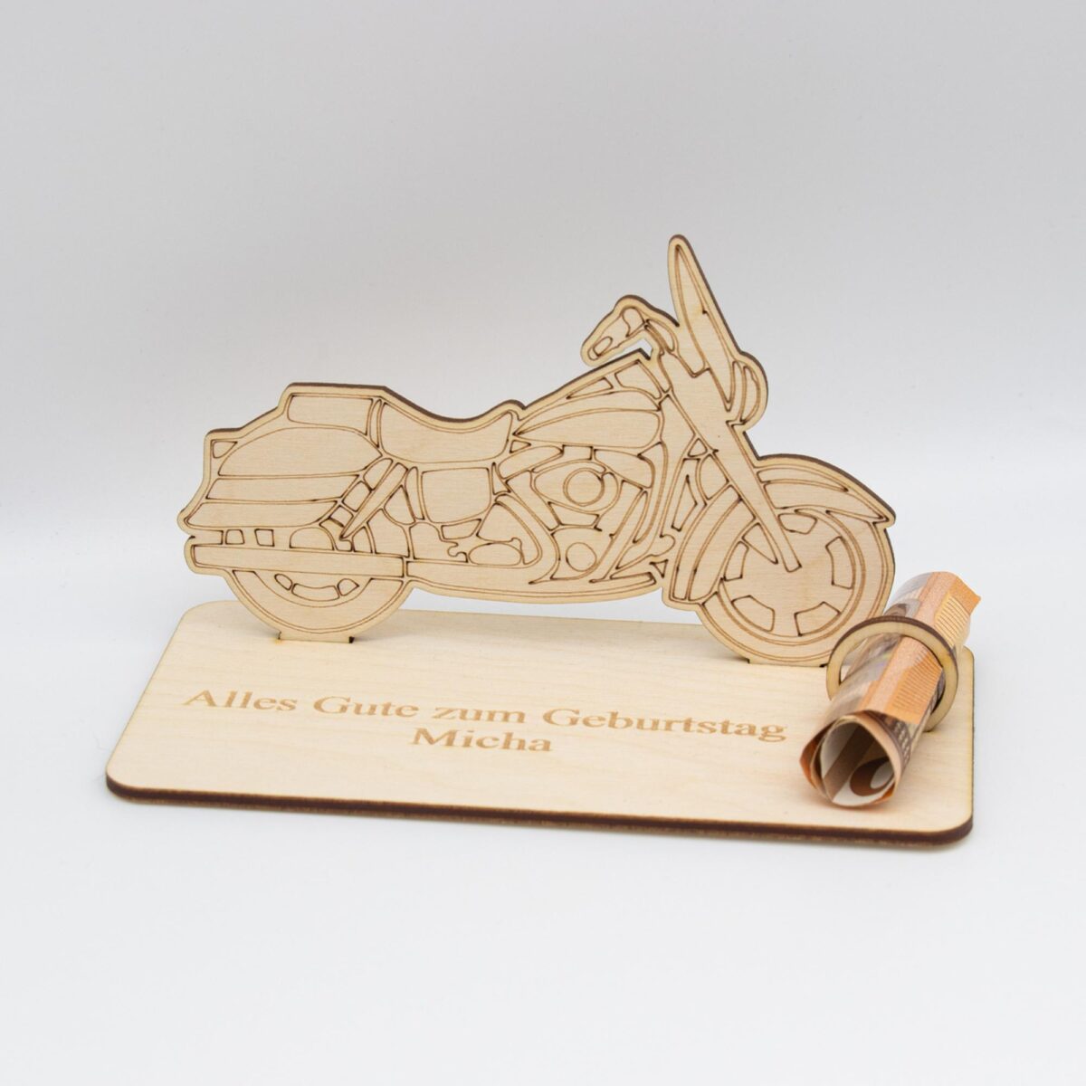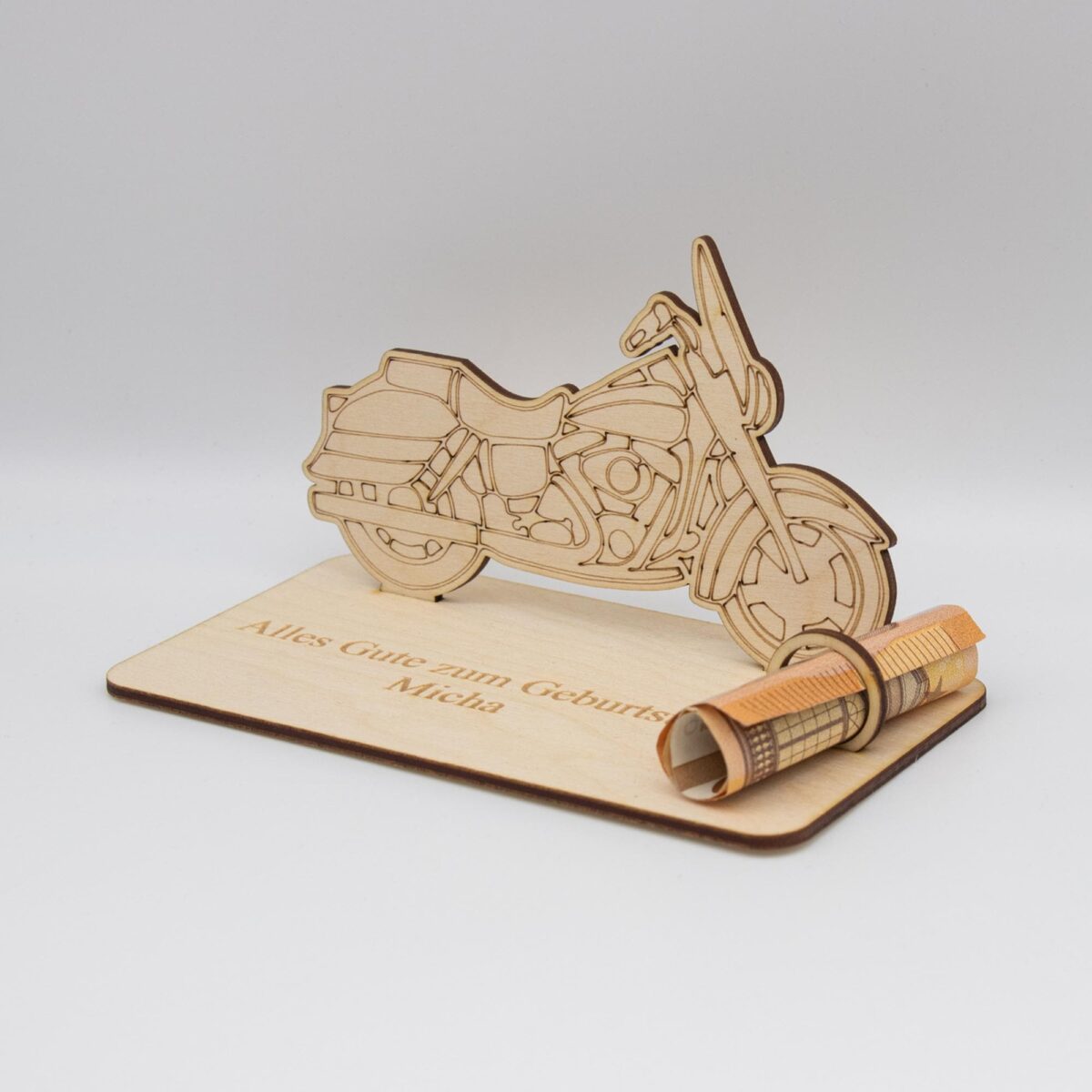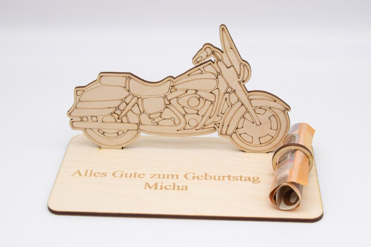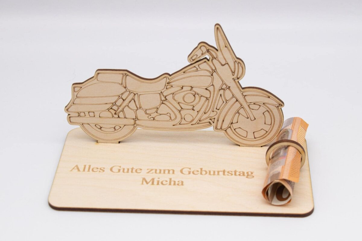 Geldgeschenk Motorrad – aus Holz personalisiert