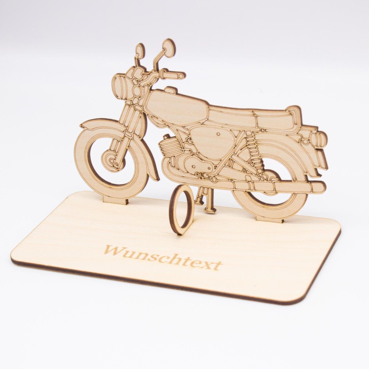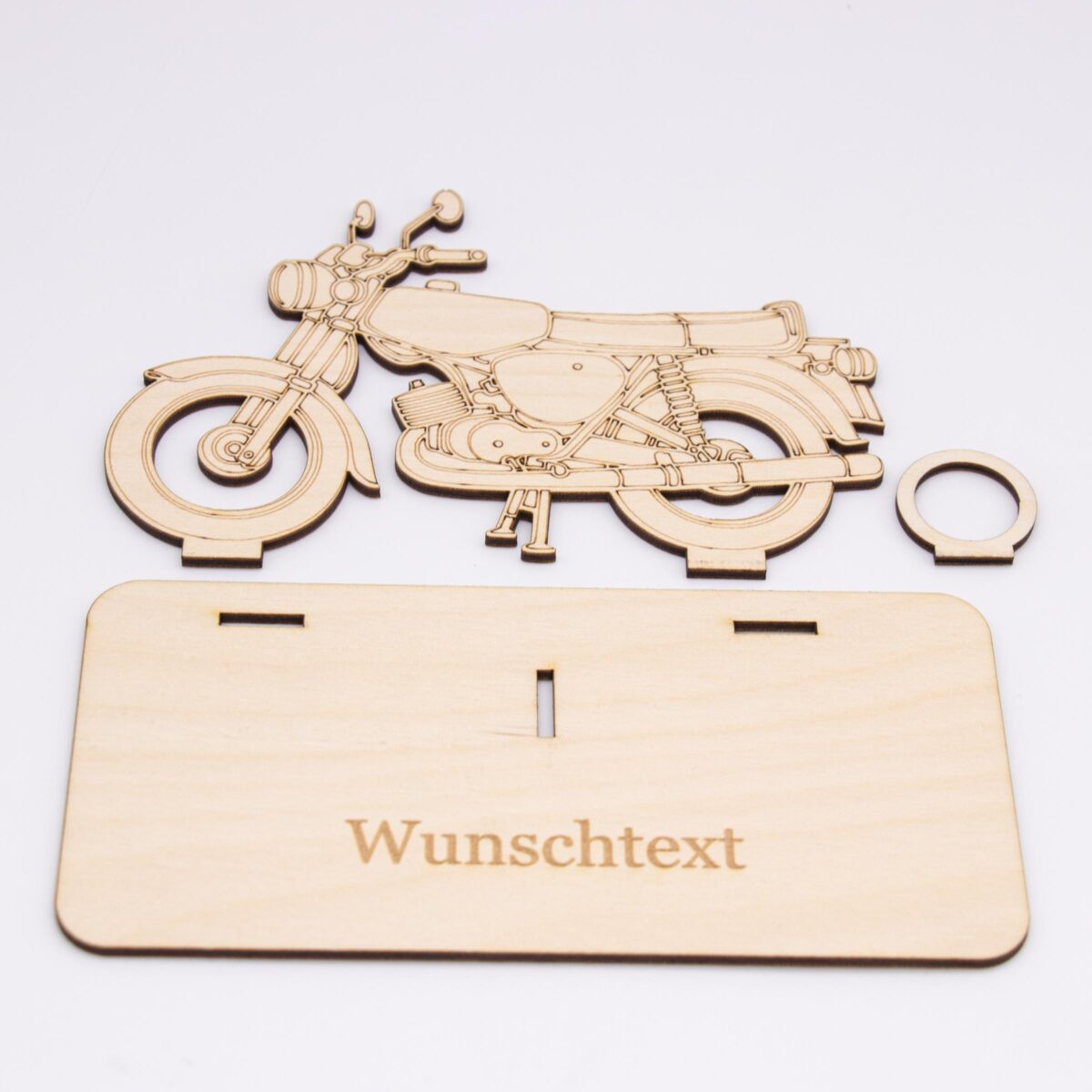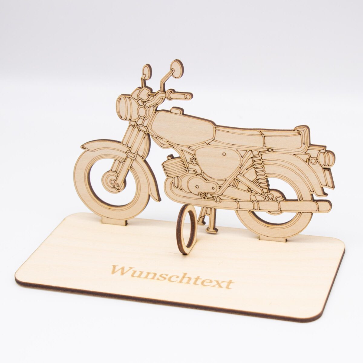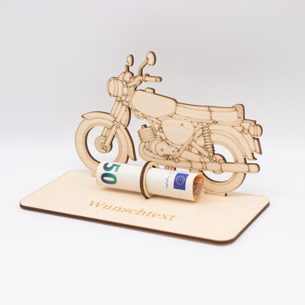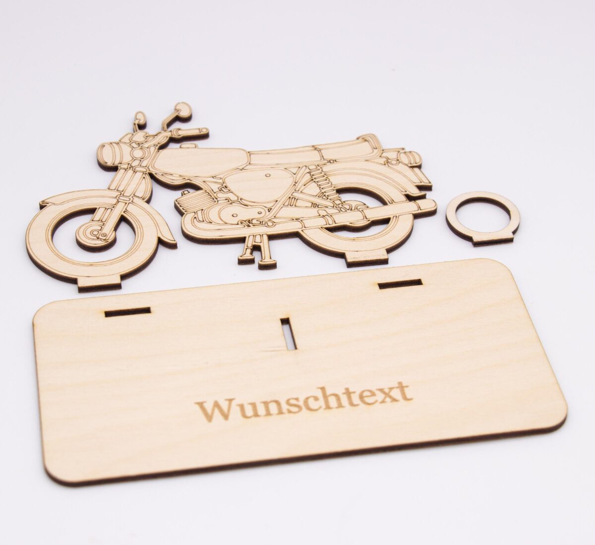 Dieses besondere Geldgeschenk aus hochwertigem 3 mm Birkenholz ist ein echtes Highlight für alle, die die Simson S51 lieben. Das Motiv besteht aus mehreren präzise gelaserten Einzelteilen, die zu einer detailreichen S51 zusammengesteckt oder optional verklebt werden können.