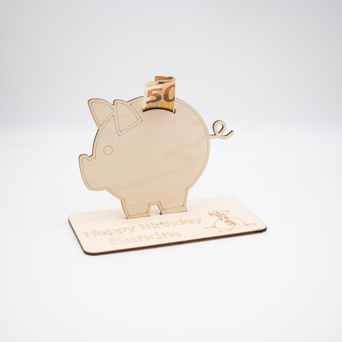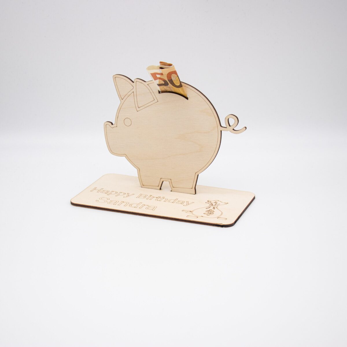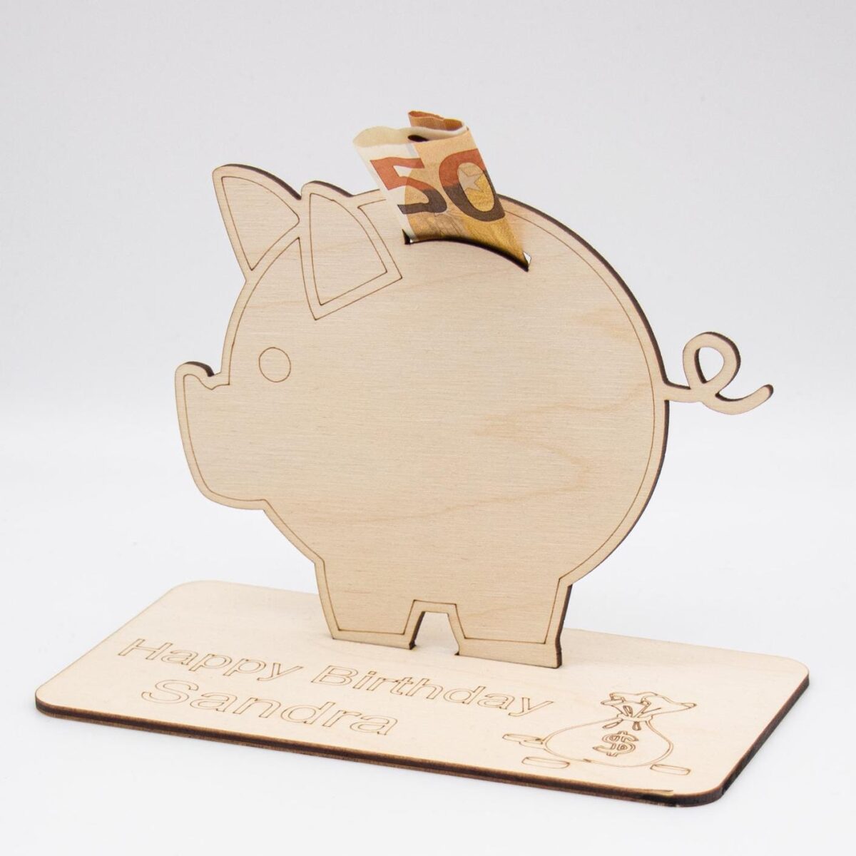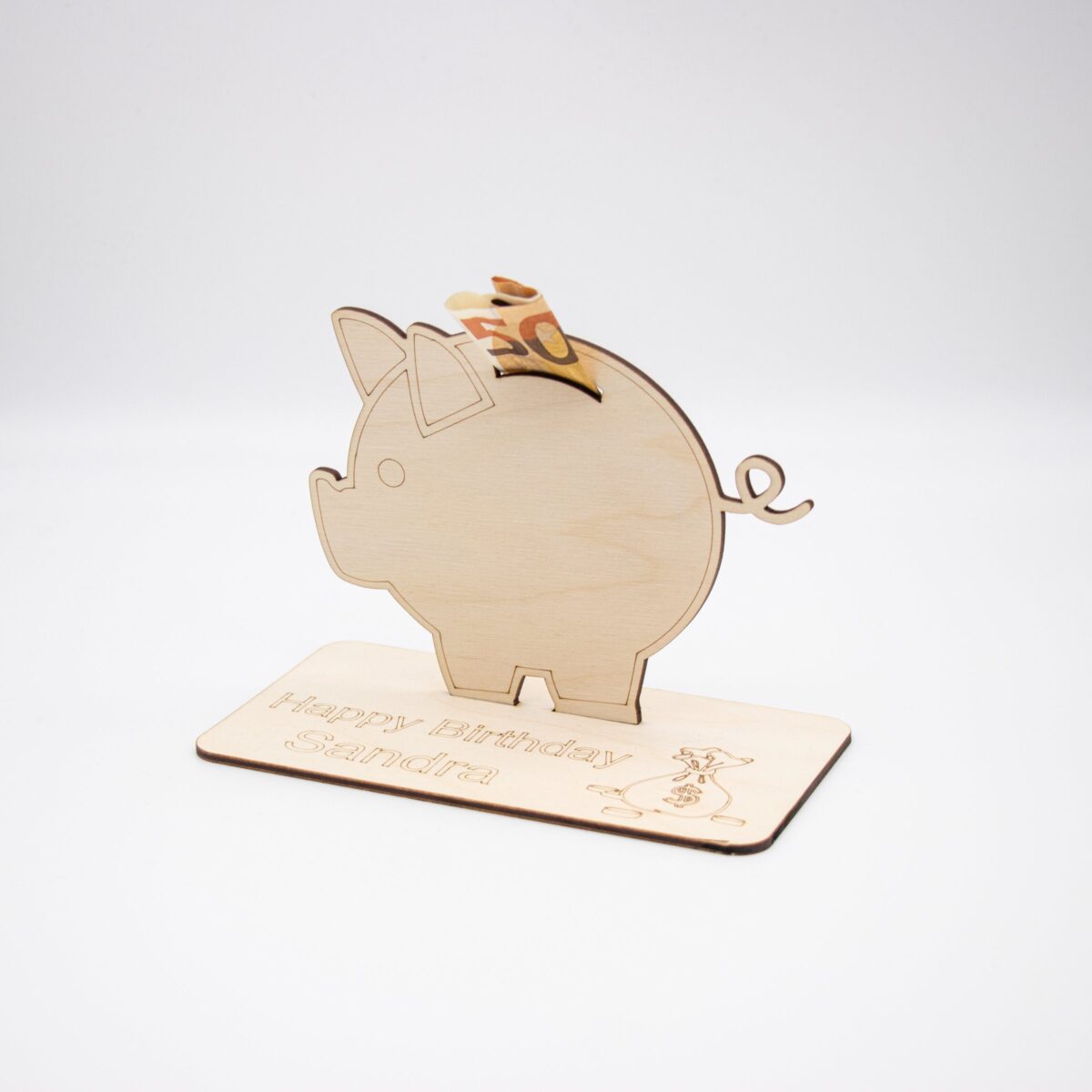 Geldgeschenk Sparschwein – aus Holz personalisiert