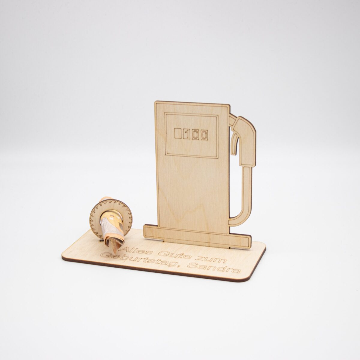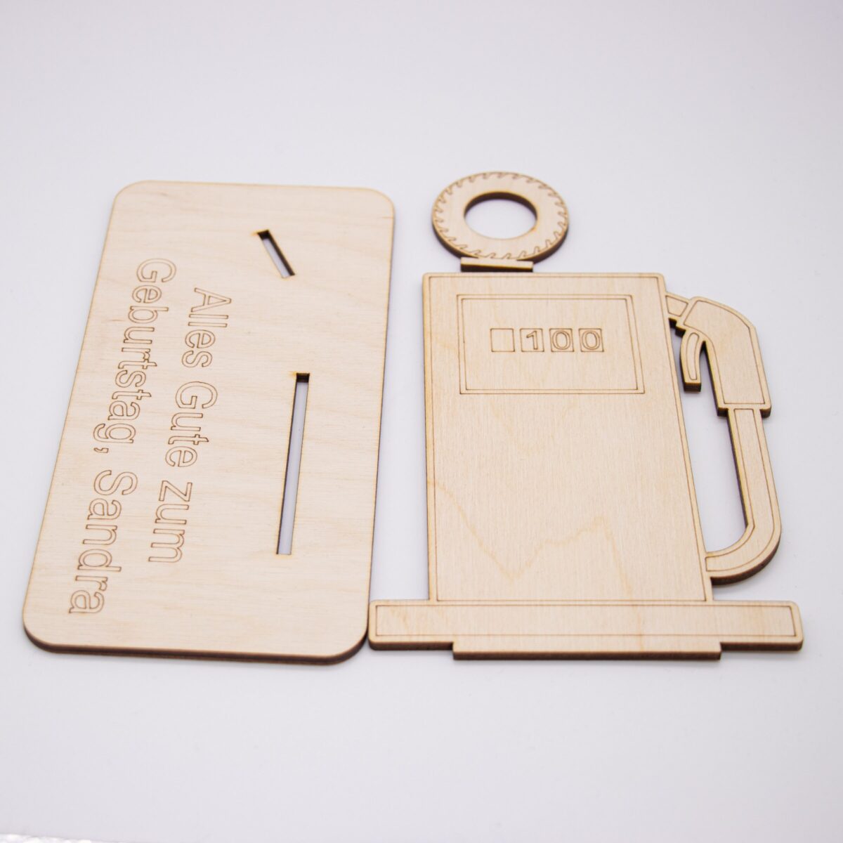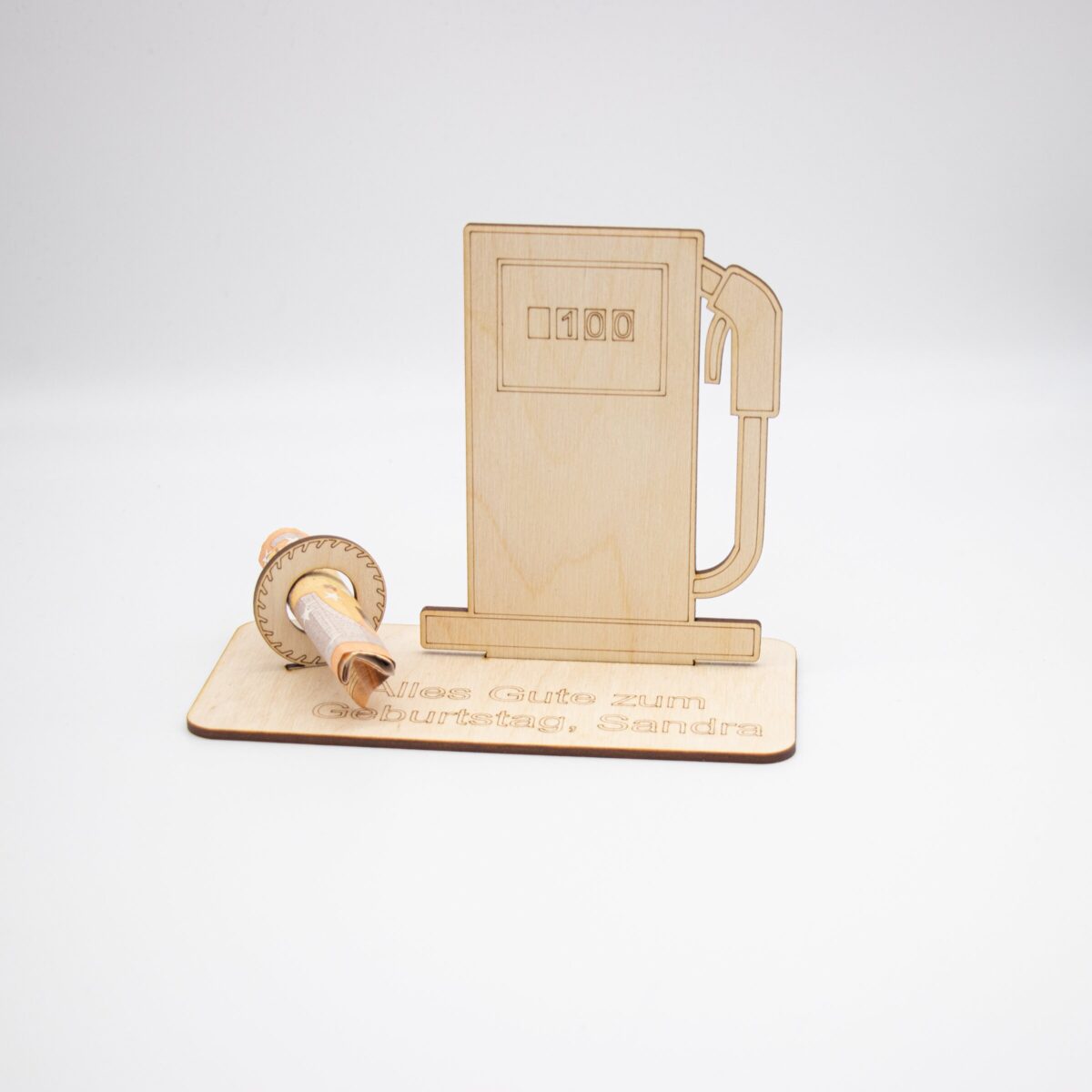 Geldgeschenk Tanken – Tankgutschein – aus Holz personalisiert