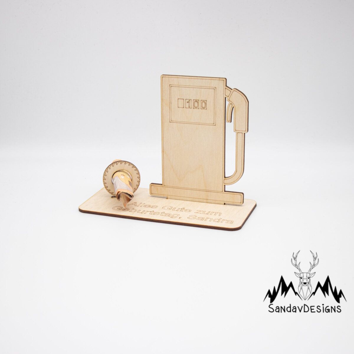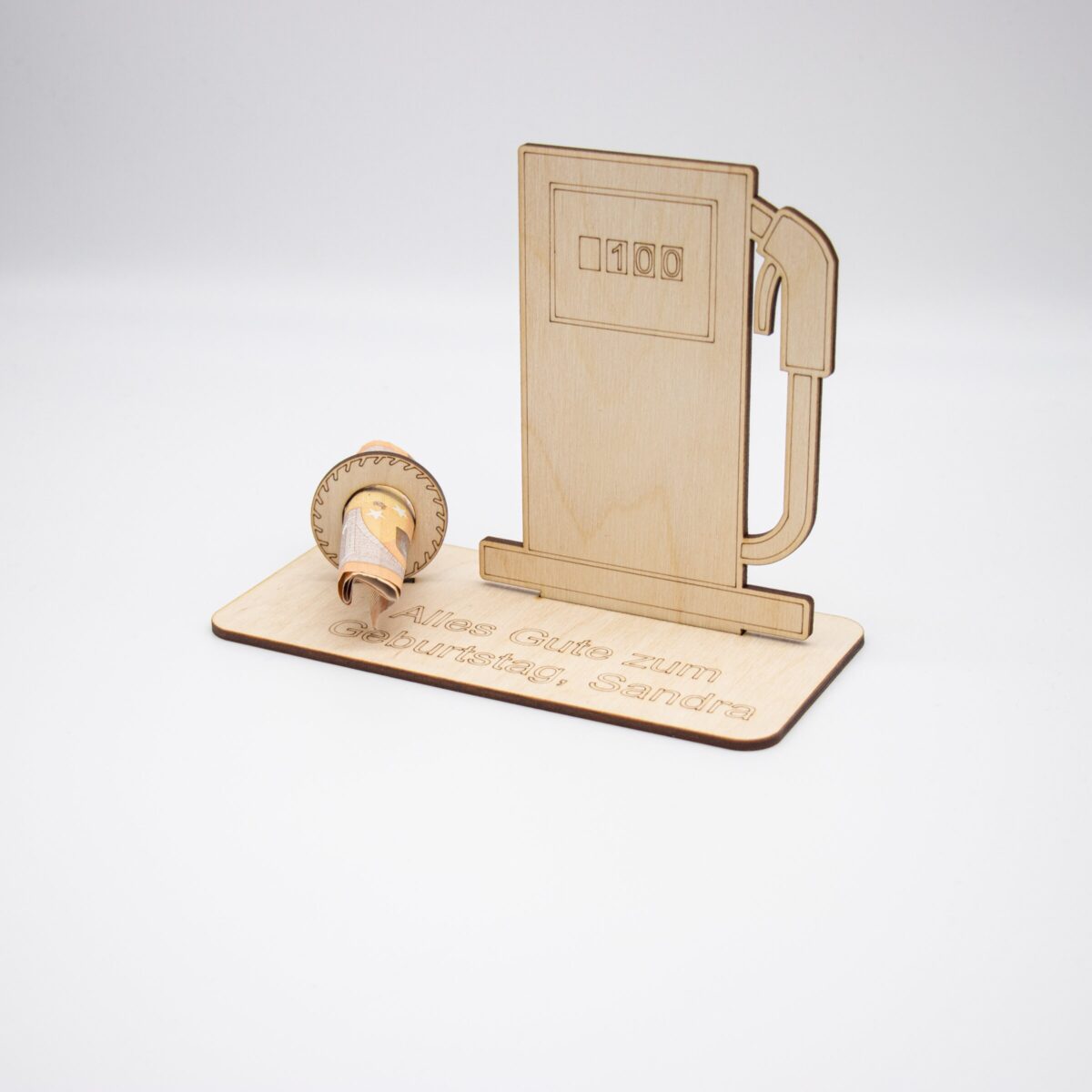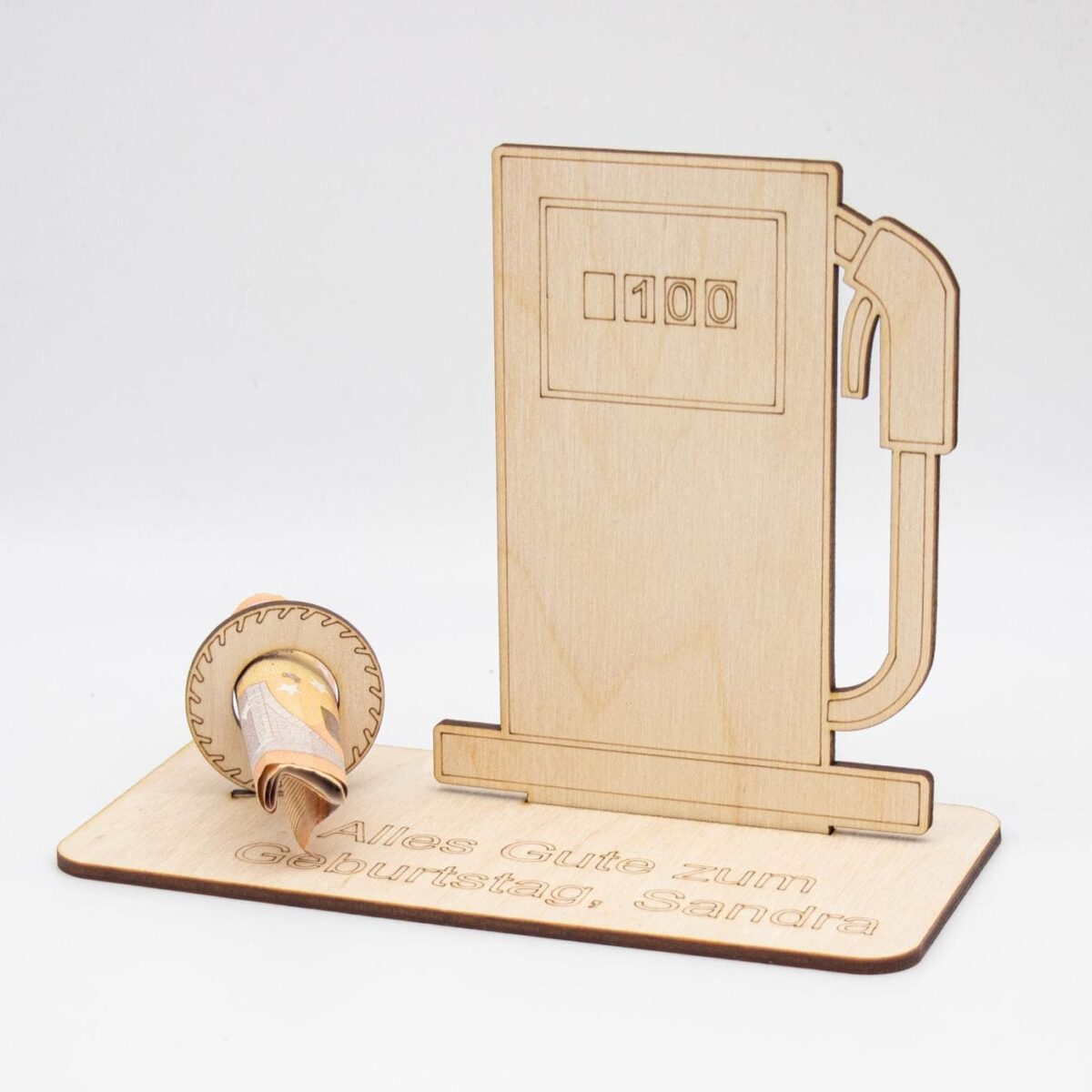 Geldgeschenk Tanken – Tankgutschein – aus Holz personalisiert