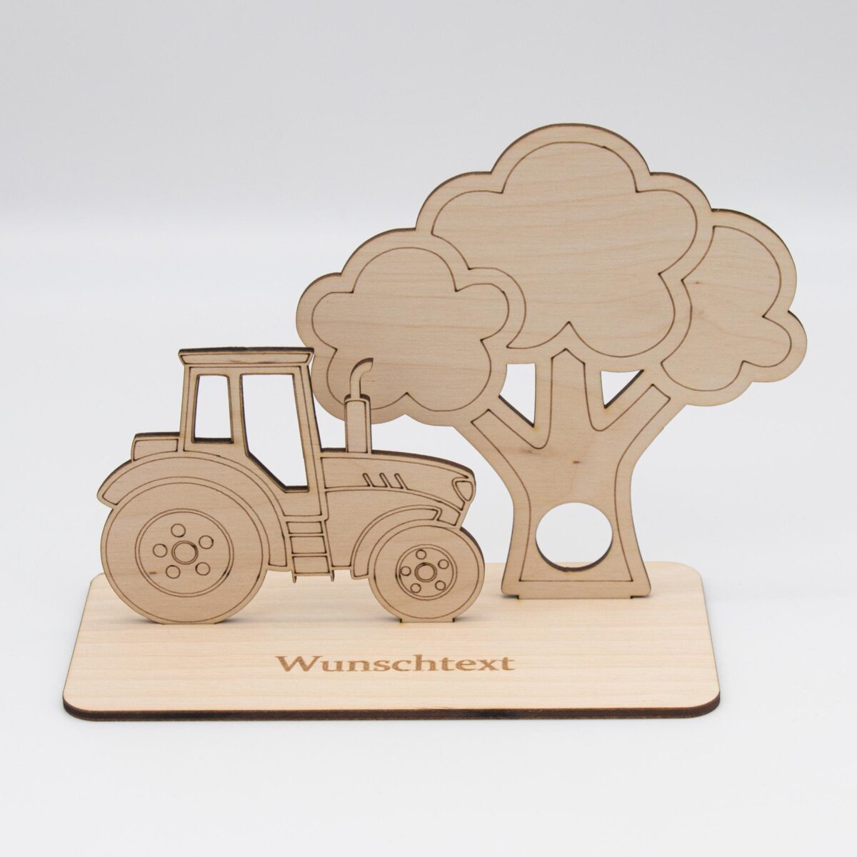 Das Set besteht aus präzise gelaserten Einzelteilen, die ganz einfach zusammengesteckt oder bei Bedarf verklebt werden können. Das Highlight ist das detailreiche Motiv mit einem Traktor unter einem Baum – ideal für kleine und große Traktor-Fans, Hobby-Landwirte oder Naturfreunde.