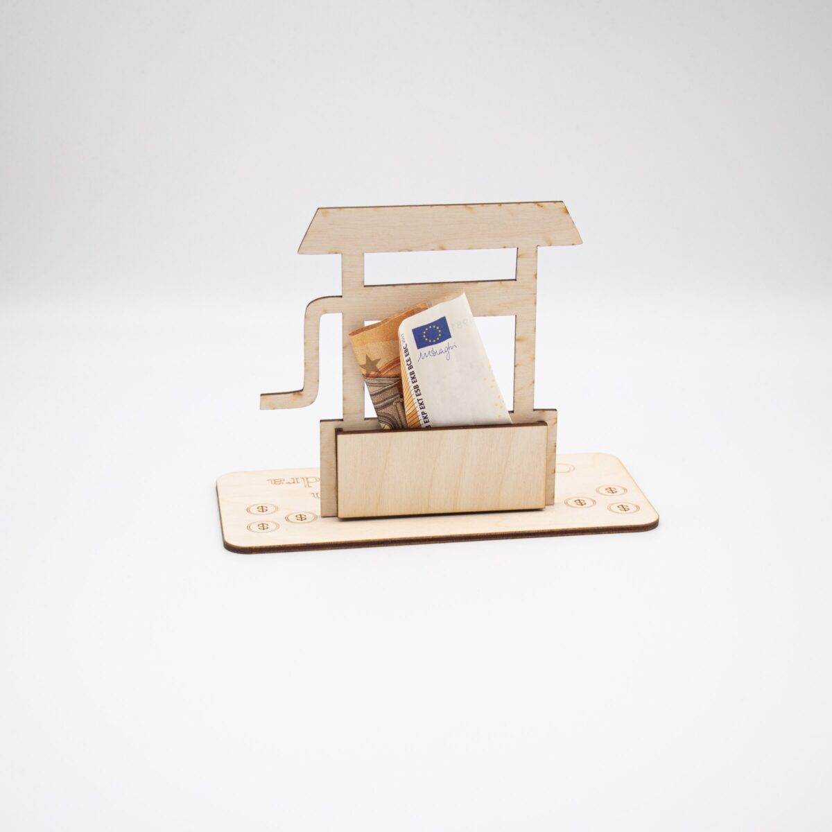 Unser Geldgeschenk aus 3 mm Birkensperrholz bietet nicht nur eine stilvolle Präsentation für Geldscheine, sondern kann auch als dekoratives Element in jedem Zuhause dienen. Es kann an der Wand aufgehängt oder auf einem Regal platziert werden, um eine wunderbare Erinnerung an den besonderen Anlass zu schaffen.