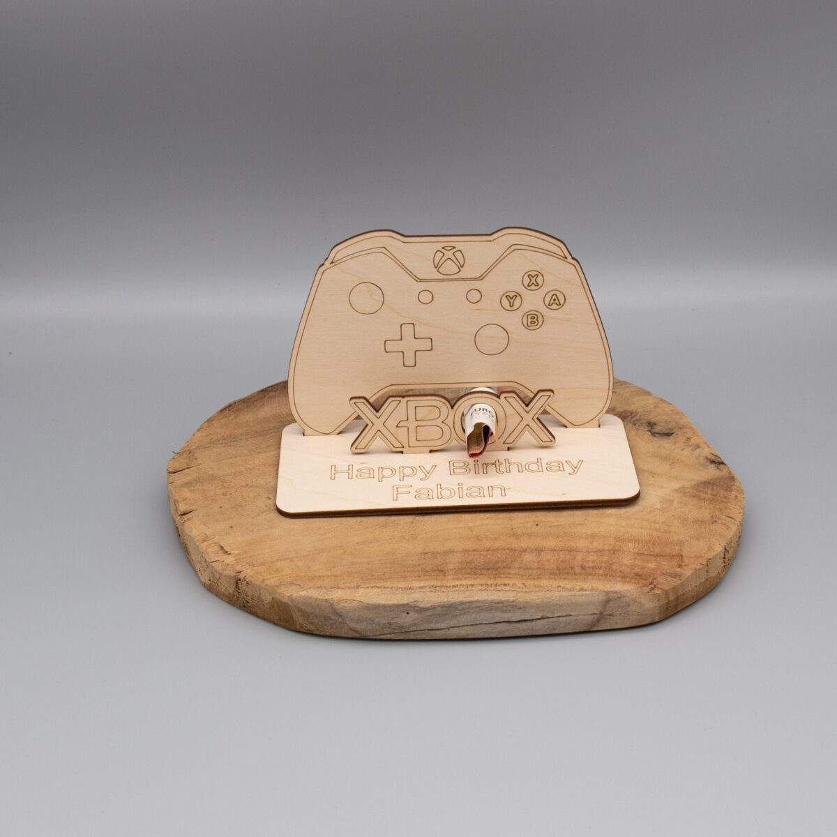 Du suchst nach einer originellen Möglichkeit, Geld zu verschenken – perfekt für Gamer und Xbox-Fans? Dieses besondere Geldgeschenk aus hochwertigem 3 mm Holz ist nicht nur ein Hingucker, sondern auch ein persönliches Highlight!