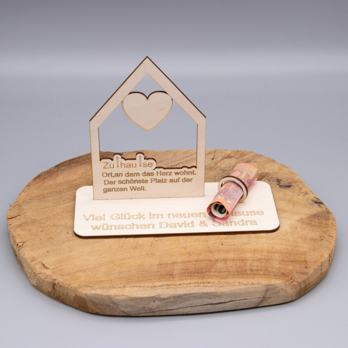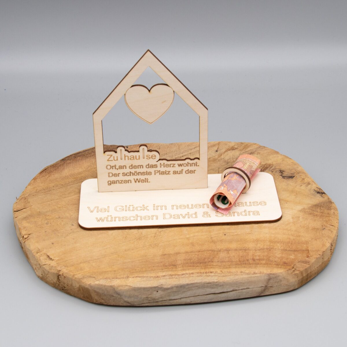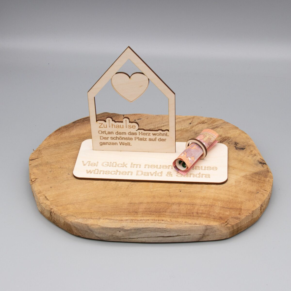 Geldgeschenk Zuhause – aus Holz personalisiert