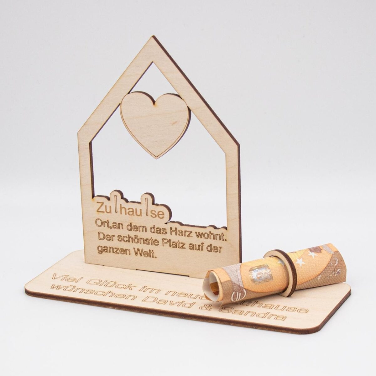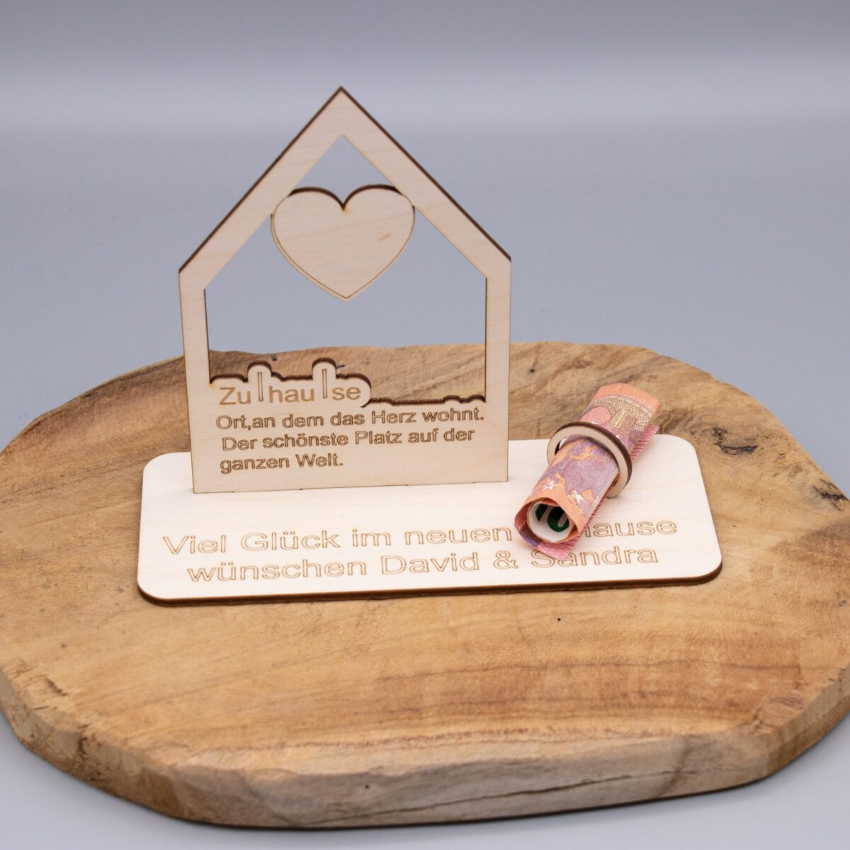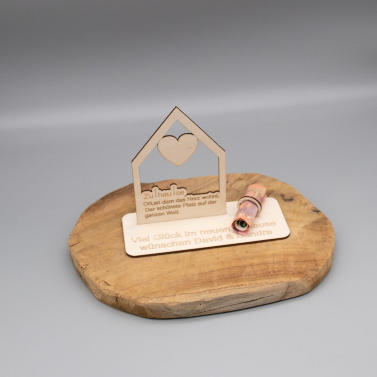 Geldgeschenk Zuhause – aus Holz personalisiert