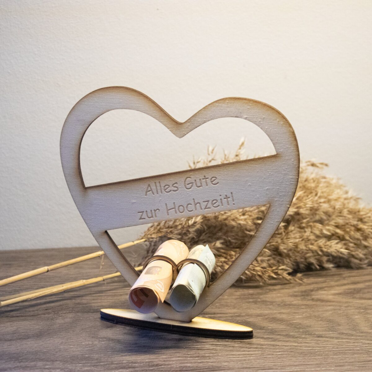 Unsere Lasergravurtechnologie ermöglicht es, kreative Designs, maßgeschneiderte Botschaften und persönliche Details auf das Holz zu übertragen. Dadurch wird jedes Geldgeschenk zu einem einzigartigen Unikat, das von Herzen kommt. Die Präzision der Gravur sorgt dafür, dass jedes Detail gestochen scharf und beeindruckend dargestellt wird.