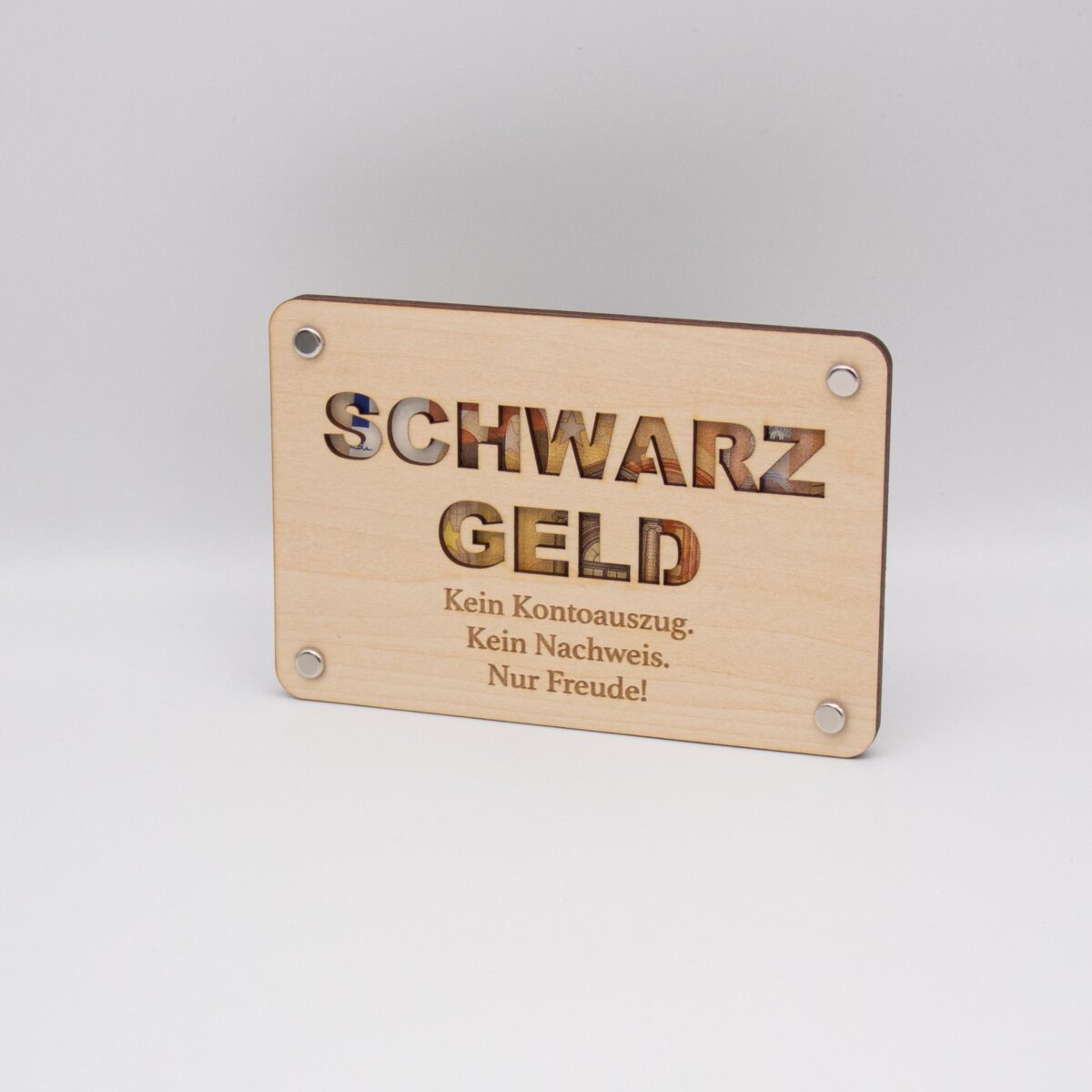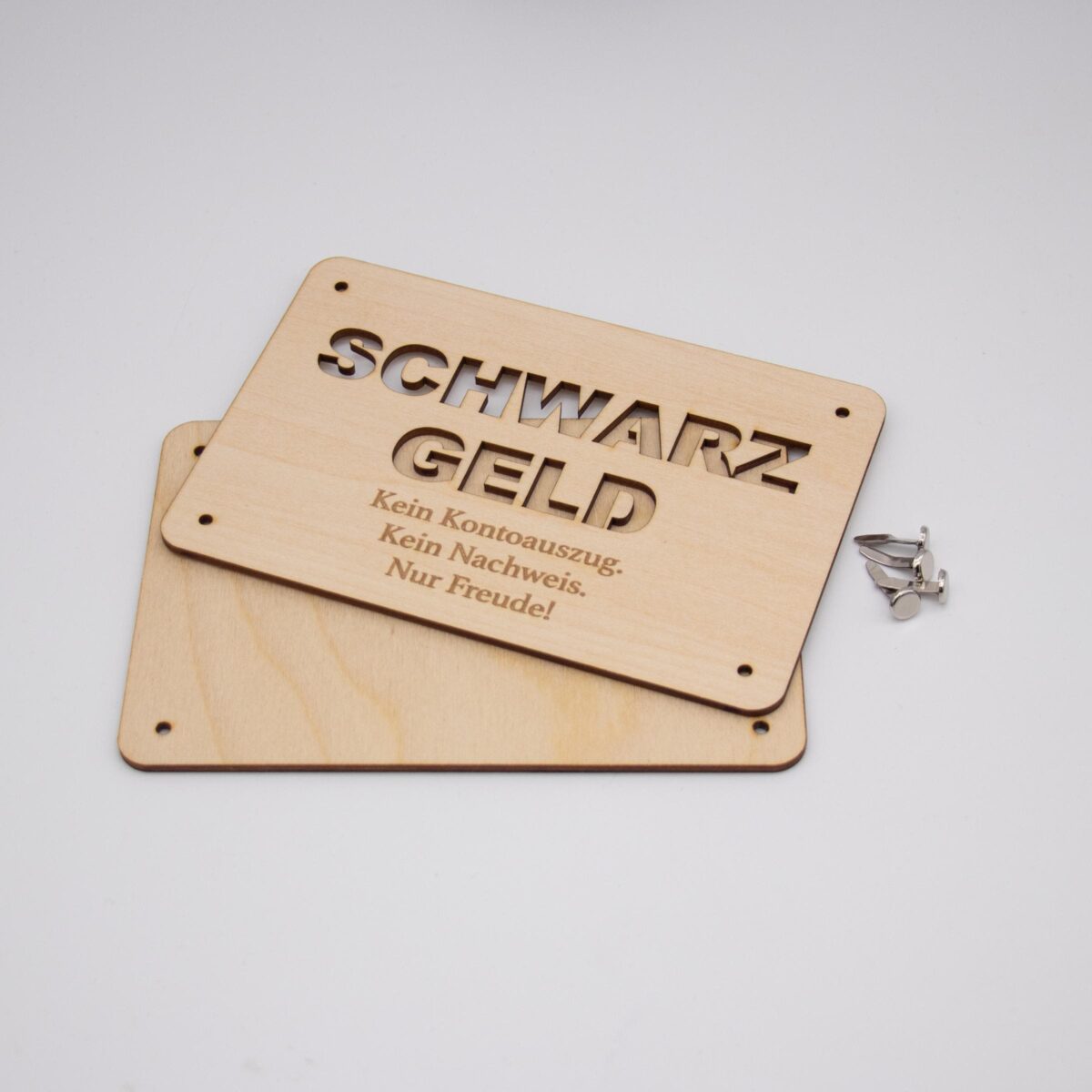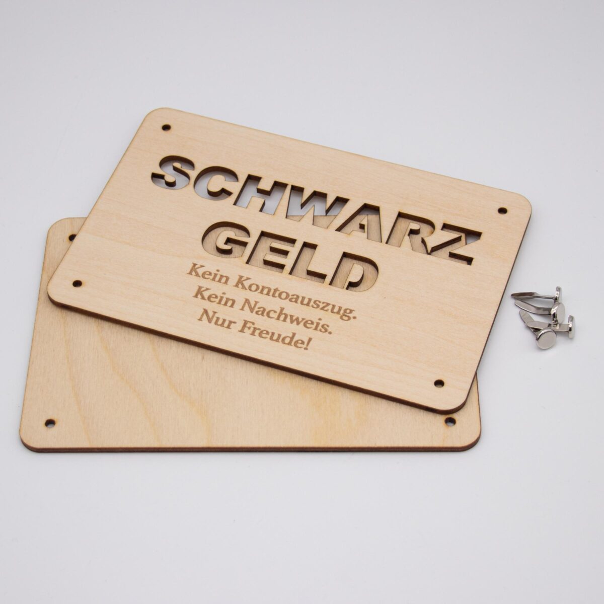 Das Highlight: In der Vorderseite ist das Wort „Schwarzgeld“ fein ausgelasert, sodass das Geld durchscheint. Unter dem Motiv steht noch ein kurzer Spruch – so wird aus einem einfachen Geldgeschenk eine originelle und liebevolle Überraschung.