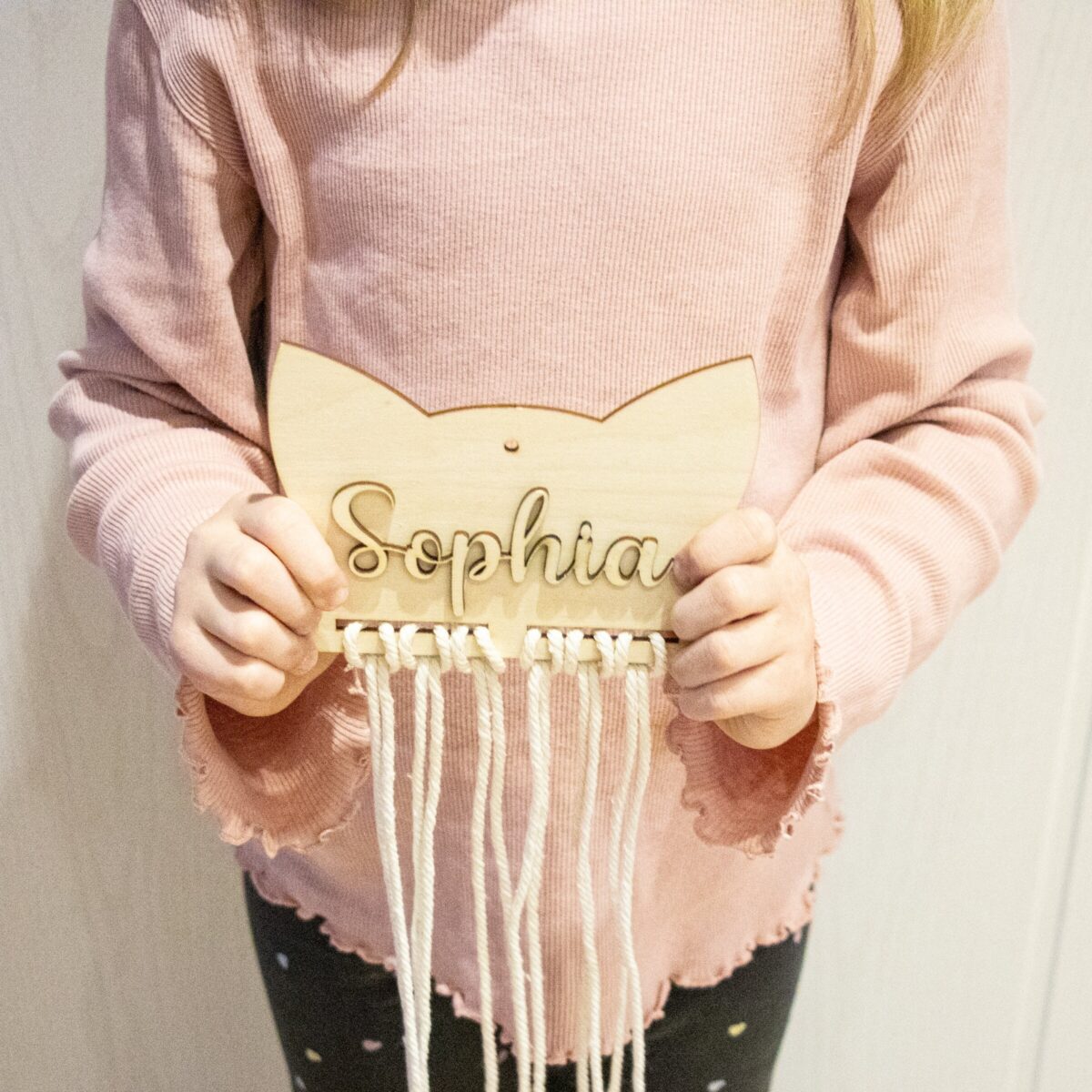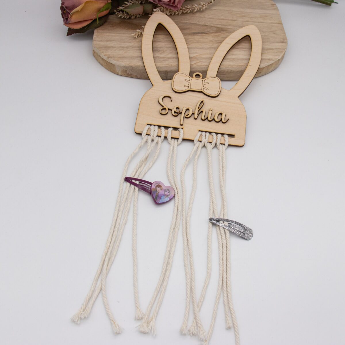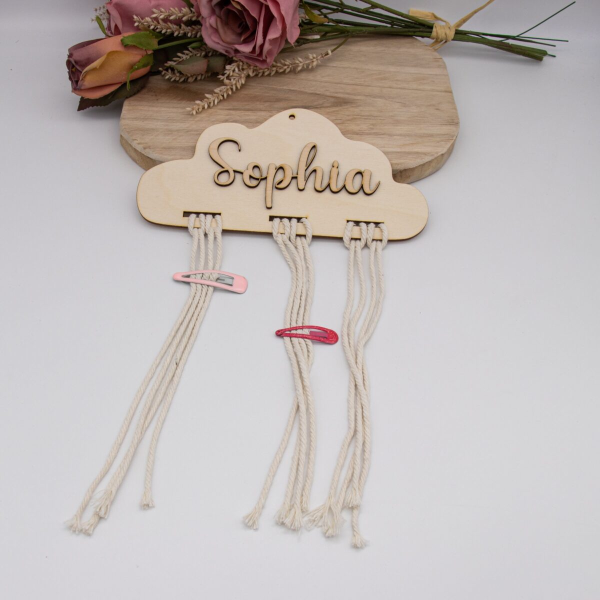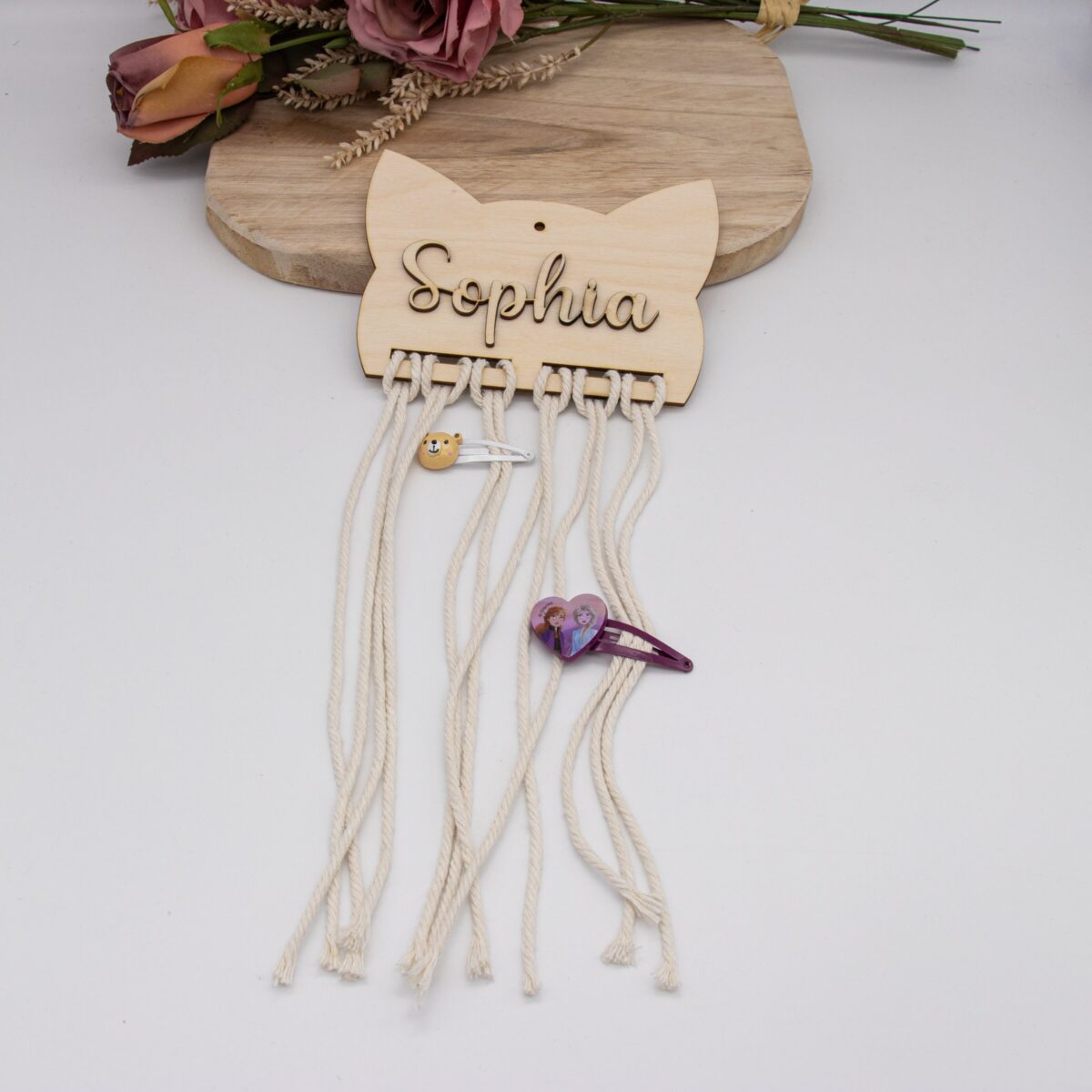 Bestellen Sie jetzt und verwandeln Sie die Aufbewahrung Ihrer Haarspangen in ein Kunstwerk. Personalisieren Sie Ihren Haarspangen-Halter mit einem Namen Ihrer Wahl und genießen Sie die Schönheit und Ordnung, die er in Ihr Leben bringt.