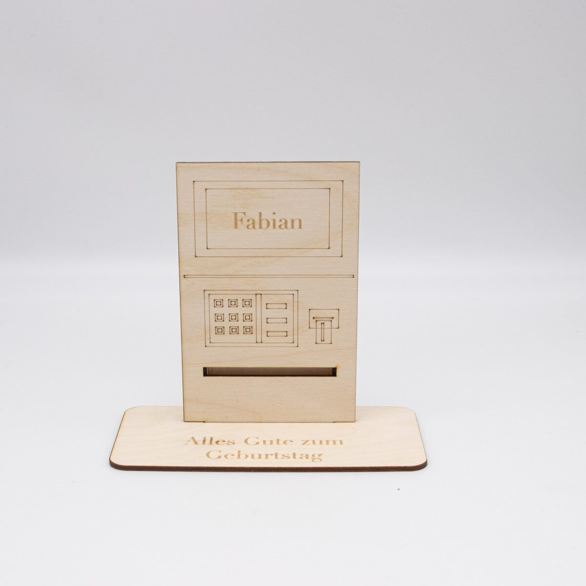 Ob als Geschenk für Geburtstage, Hochzeiten oder andere besondere Anlässe – dieser Geldgeschenk-Automat aus Birkensperrholz ist eine stilvolle und innovative Möglichkeit, Freude zu bereiten.