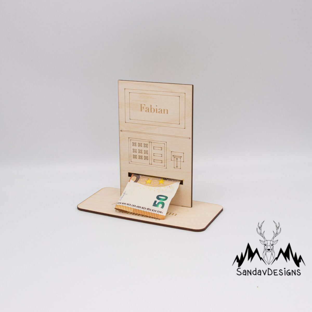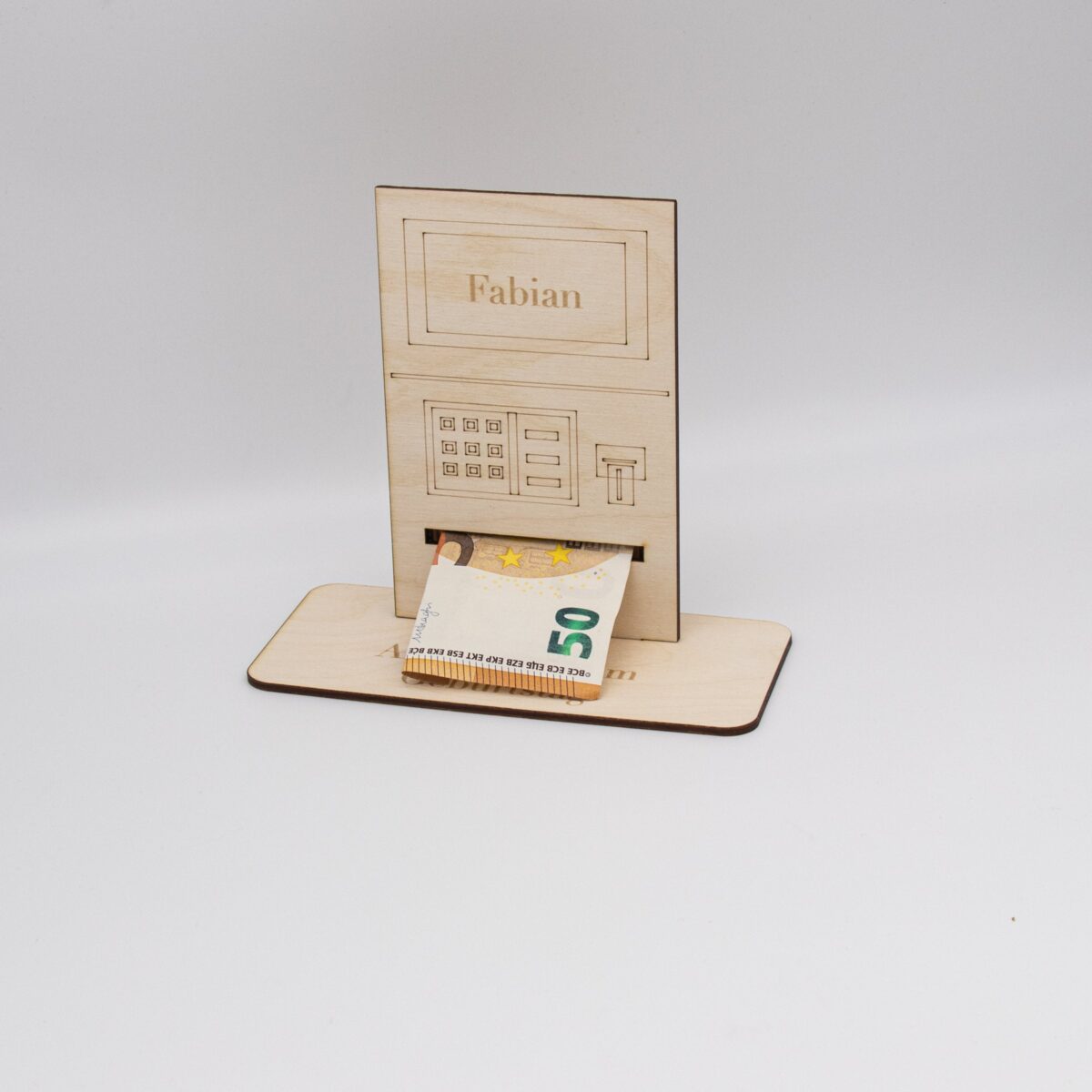 Hergestellt mit präziser Lasertechnik, zeichnet sich unser Geldautomat durch seine fein ausgearbeiteten Details und sauberen Schnitte aus. Das Design ist inspiriert von klassischen Geldautomaten, komplett mit realistischen Elementen, die ein einzigartiges visuelles Erlebnis bieten.