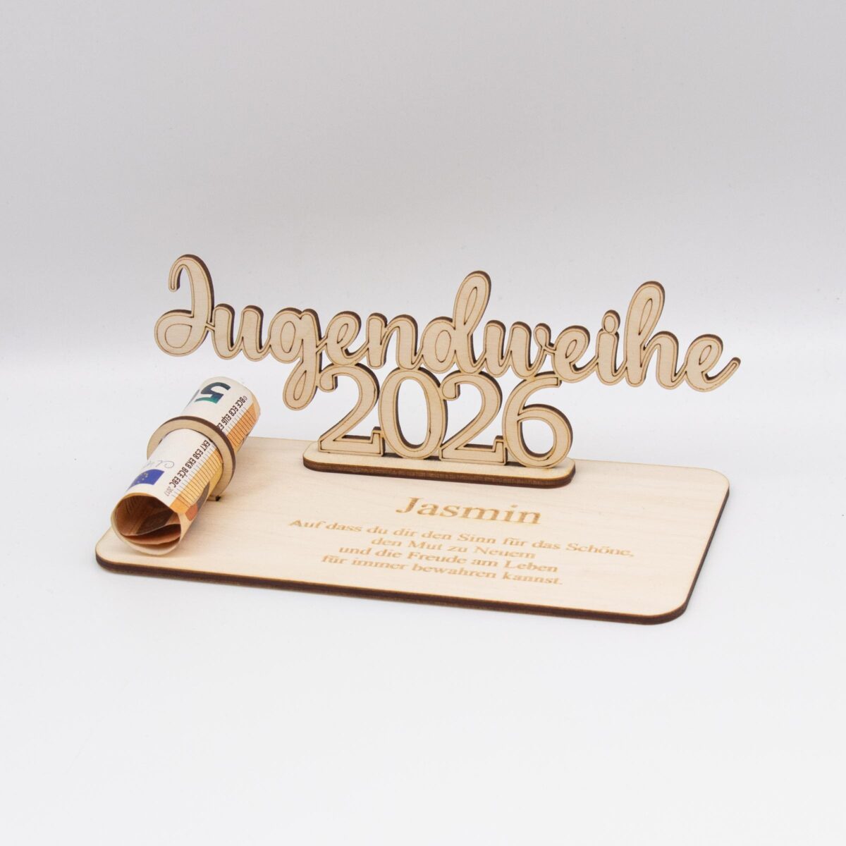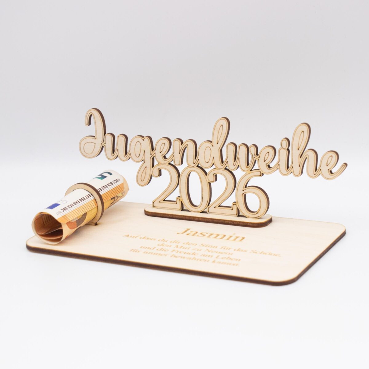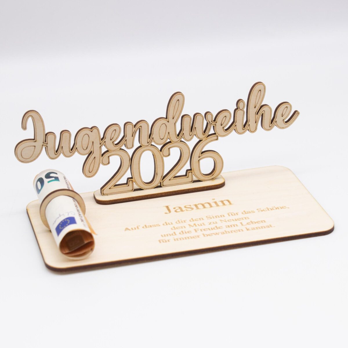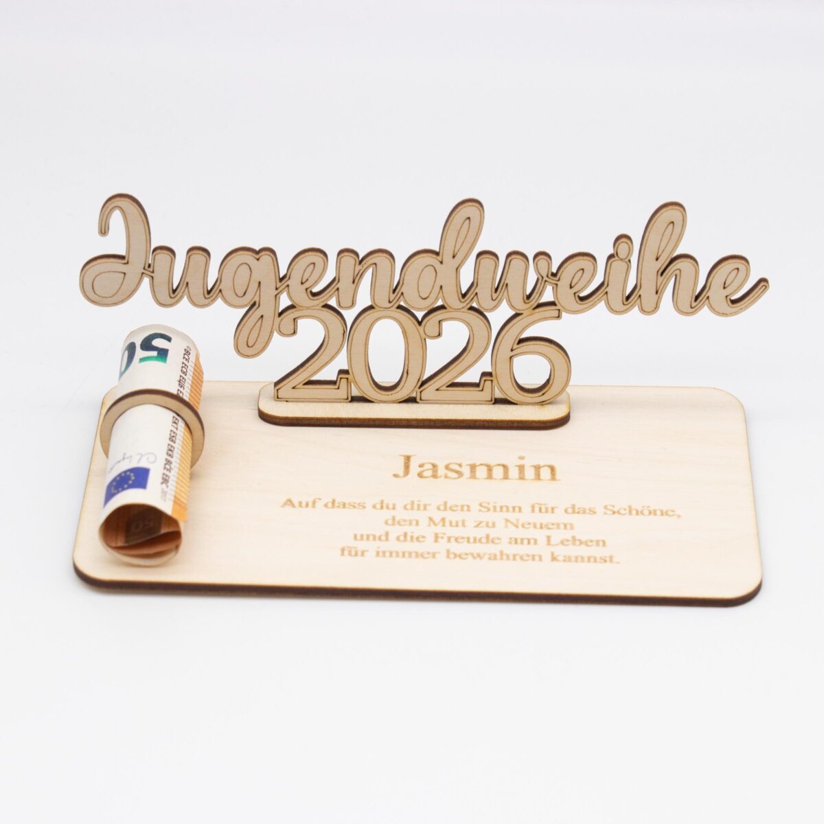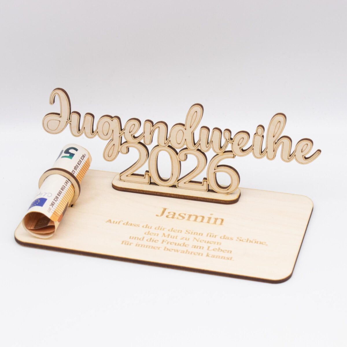Geldgeschenk Jugendweihe 2026 – personalisiert aus Holz – modernes Jugendweihe Geschenk mit Name