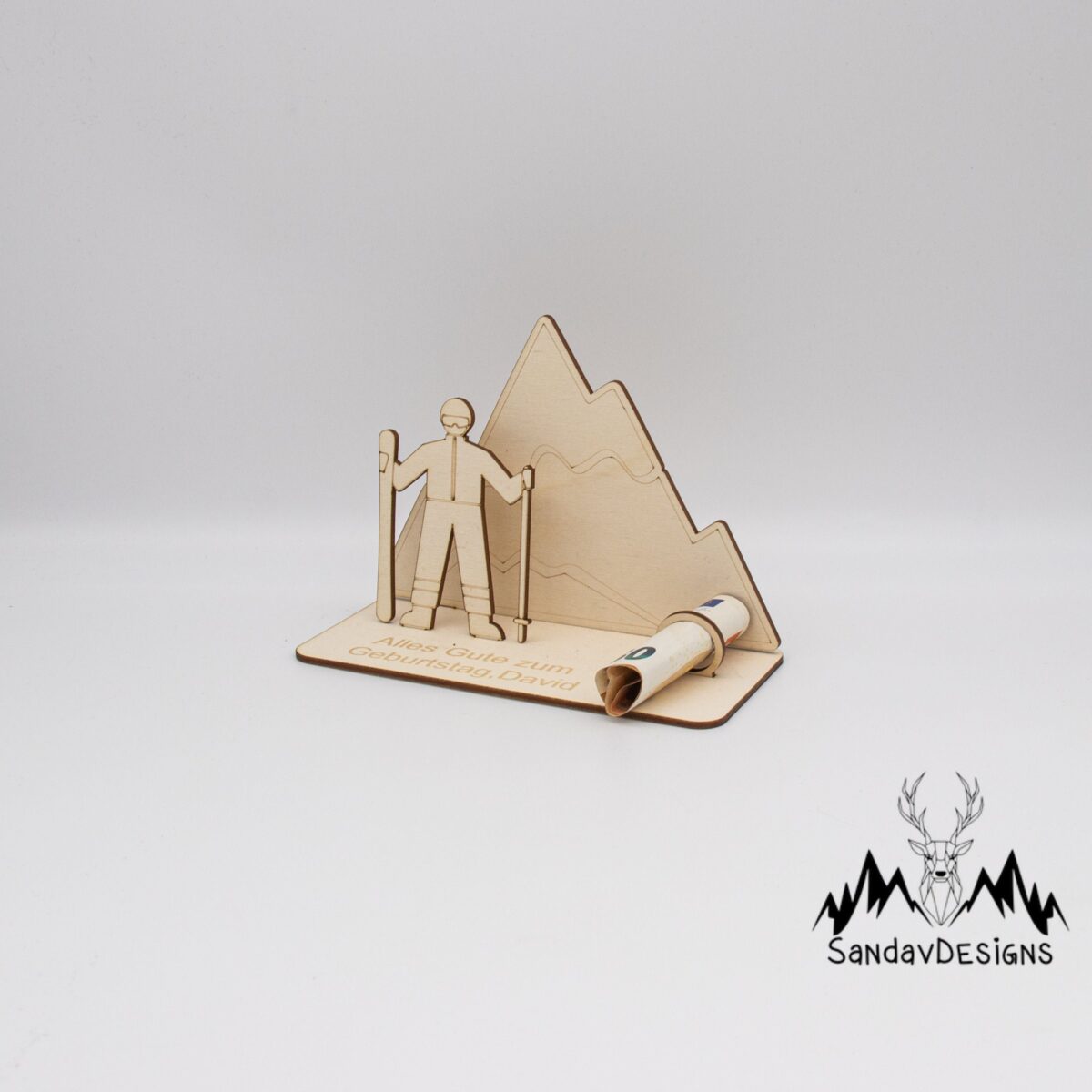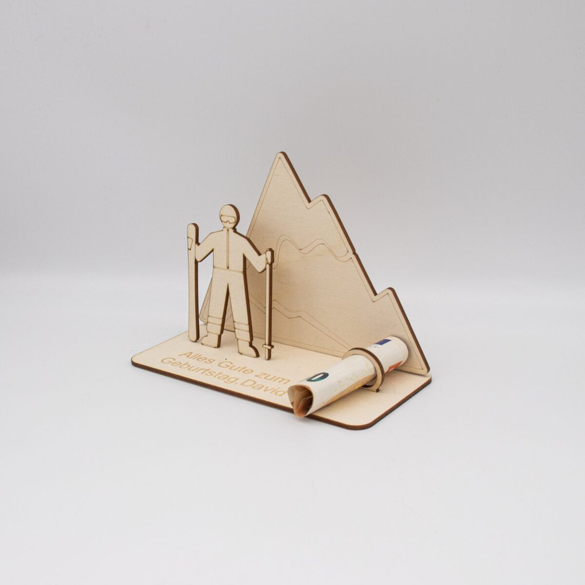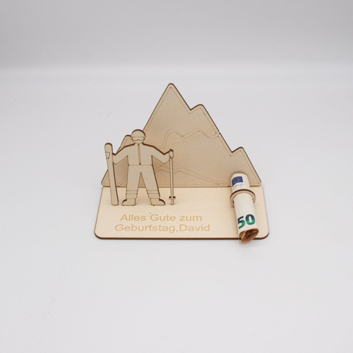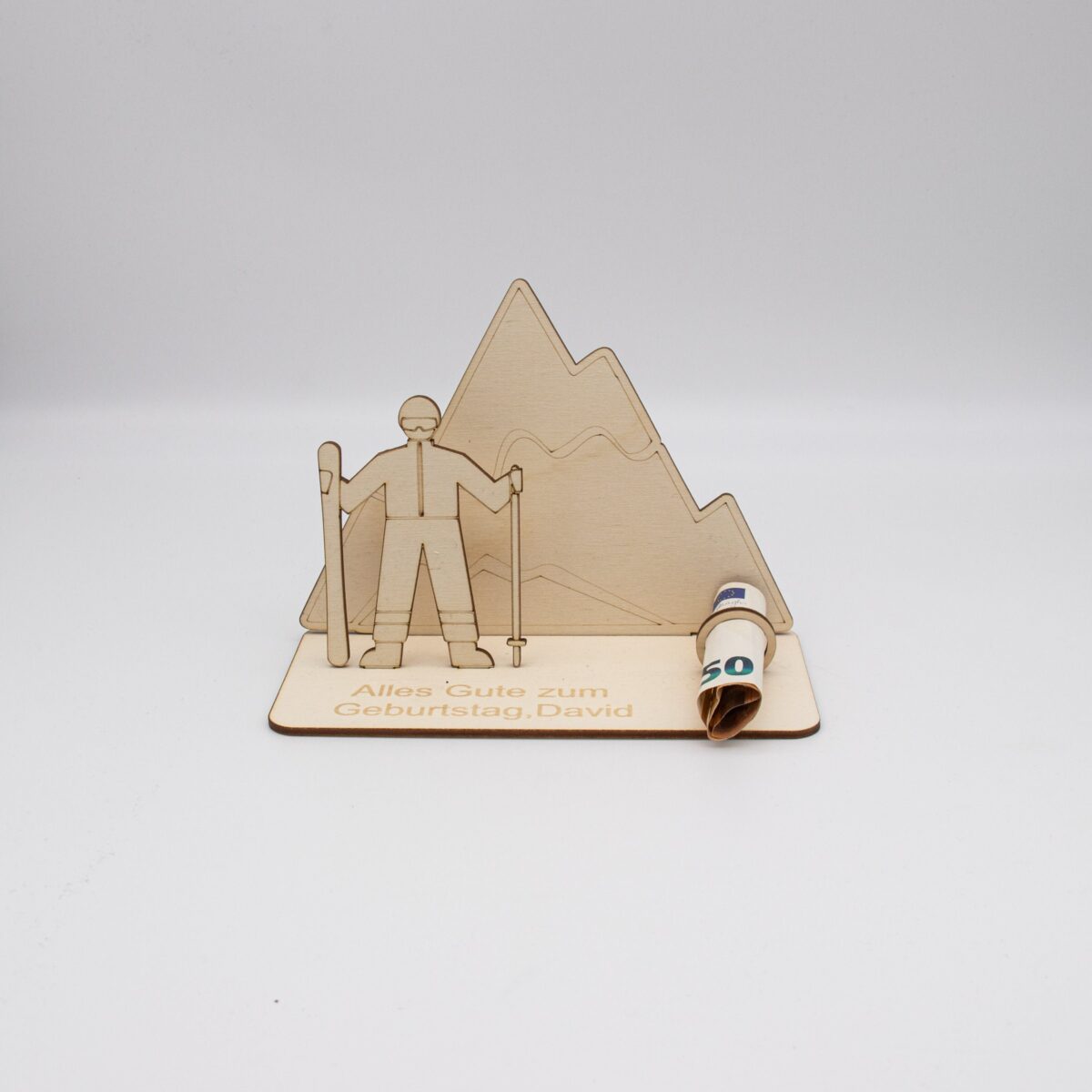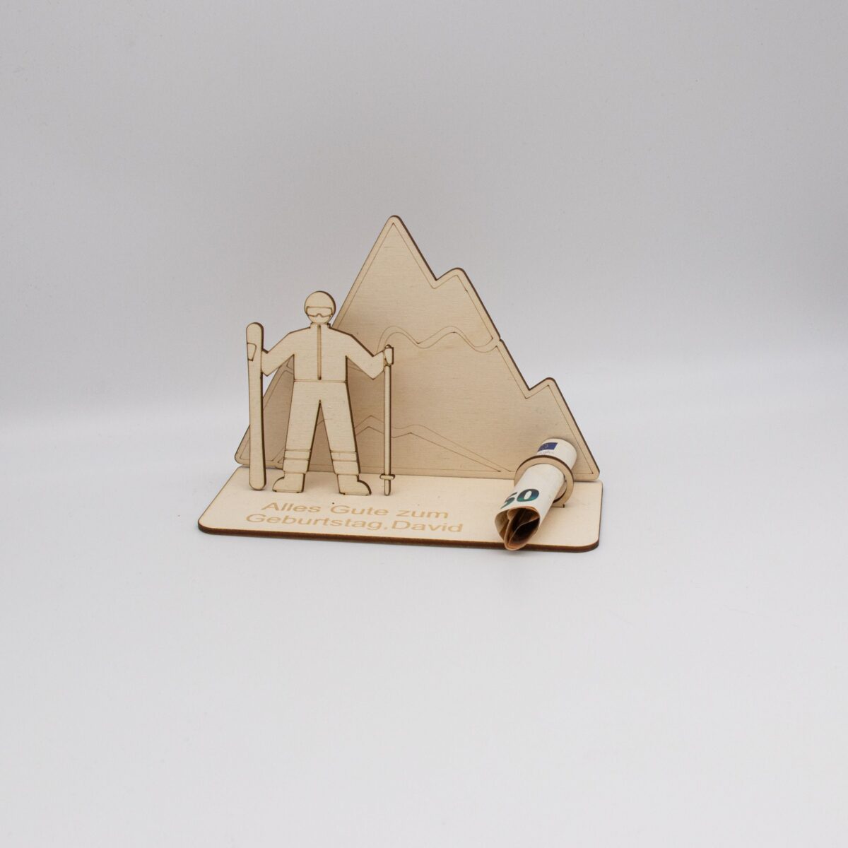Verzaubern Sie einen besonderen Menschen in Ihrem Leben mit unserem exquisiten Geldgeschenk „Skifahren in den Bergen“, meisterhaft gefertigt aus hochwertigem 3mm Birkensperrholz. Dieses einzigartige Geschenk kombiniert Handwerkskunst und persönliche Note in einem.