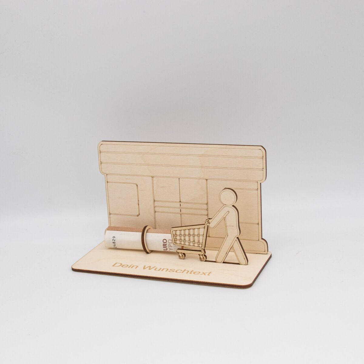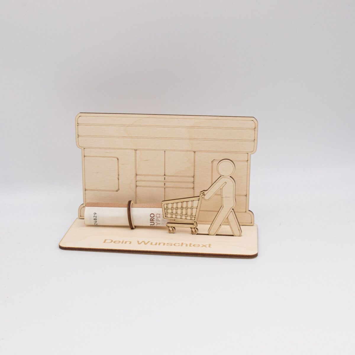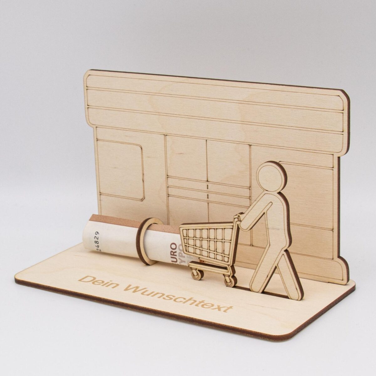 Geldgeschenk Supermarkt – aus Holz personalisiert