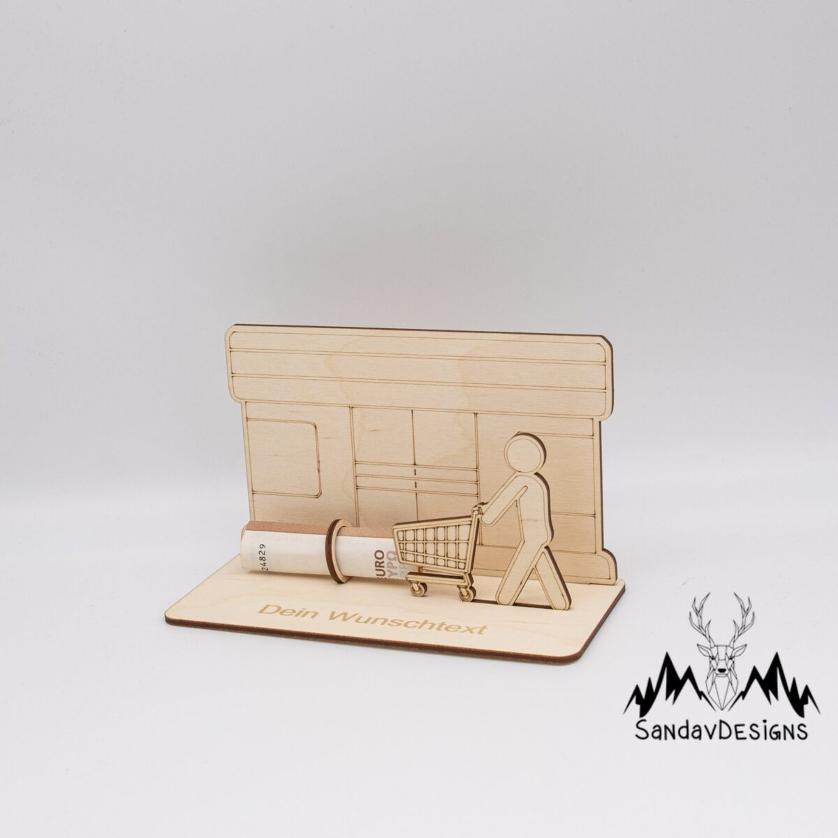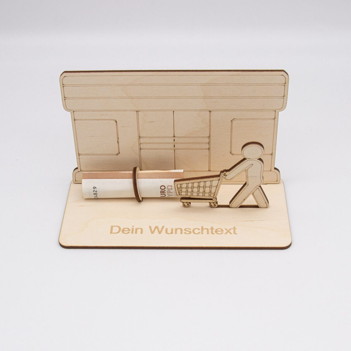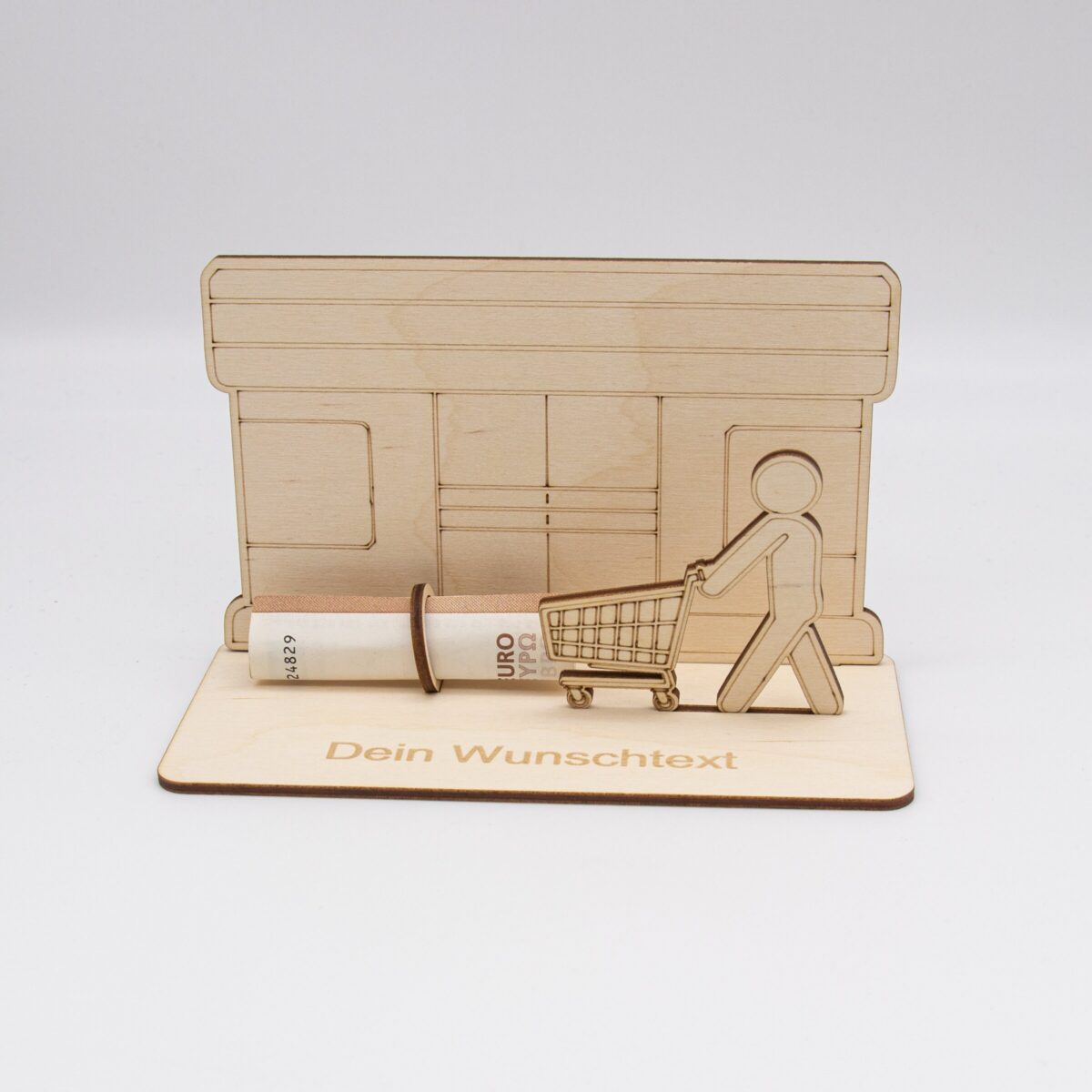 Geldgeschenk Supermarkt – aus Holz personalisiert