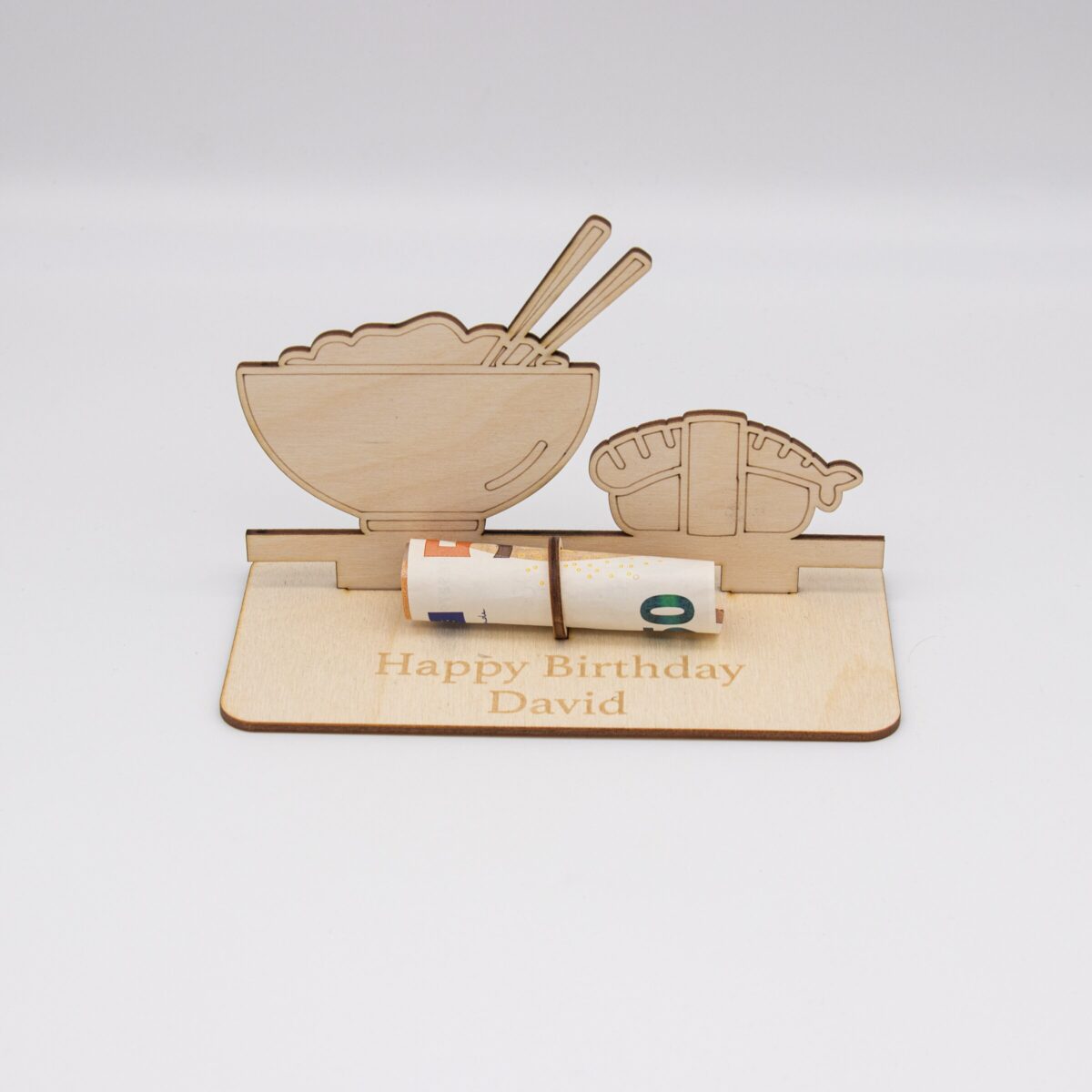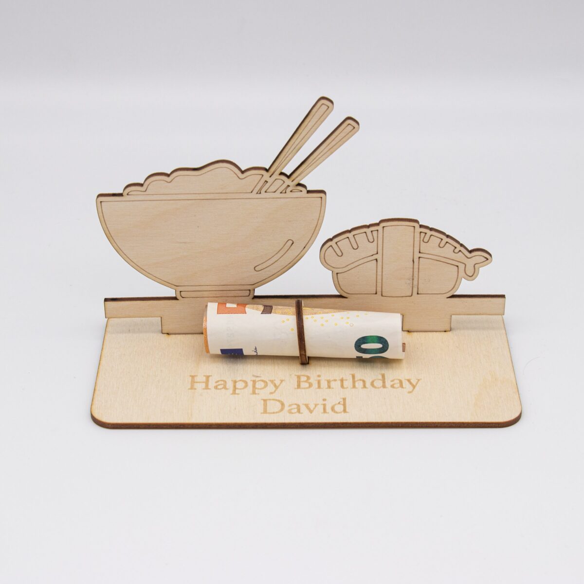 Das Geldgeschenk ist nicht nur eine stilvolle Art, Geld zu präsentieren, sondern auch ein dekoratives Element, das in jedem Raum eine besondere Note verleiht. Egal, ob als Geburtstagsgeschenk, Hochzeitspräsent oder als besondere Aufmerksamkeit für Sushi-Enthusiasten, dieses Geldgeschenk aus Birkensperrholz ist eine ausgezeichnete Wahl.