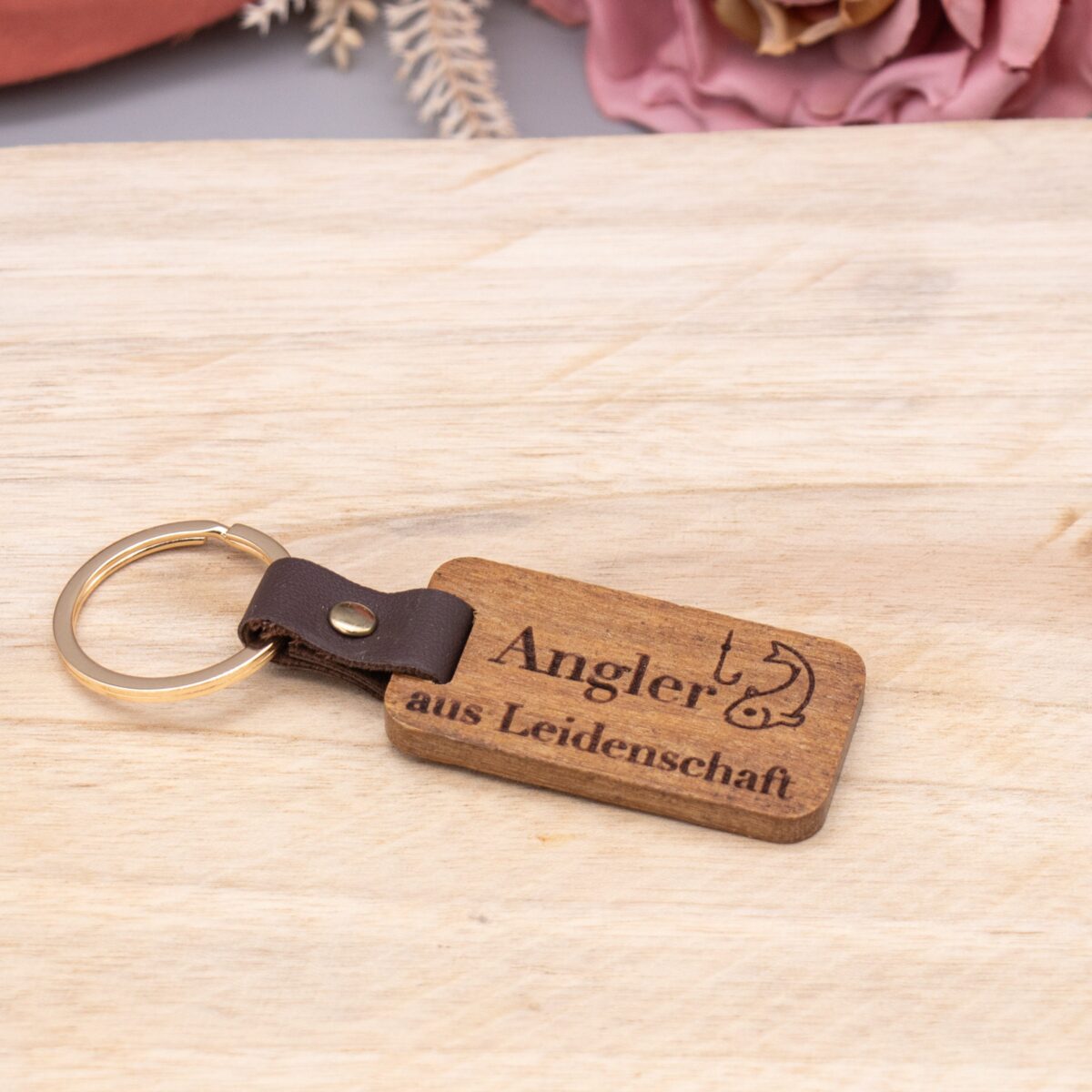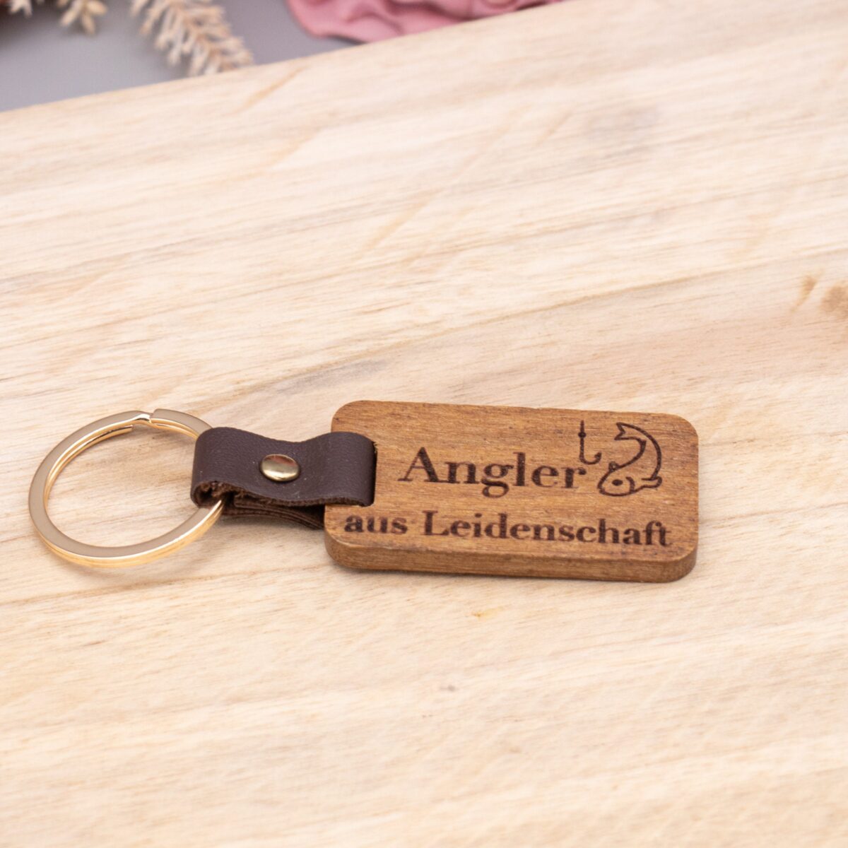 Unser einzigartiger Holzschlüsselanhänger mit den Gravuren „Jäger aus Leidenschaft“ und „Angler aus Leidenschaft“ ist das ideale Accessoire für alle Naturliebhaber, die ihre Leidenschaft für die Jagd oder das Angeln gerne mit sich tragen möchten. Hergestellt aus hochwertigem Holz und individuell graviert, vereint dieser Schlüsselanhänger Stil, Funktionalität und eine herzliche Botschaft.