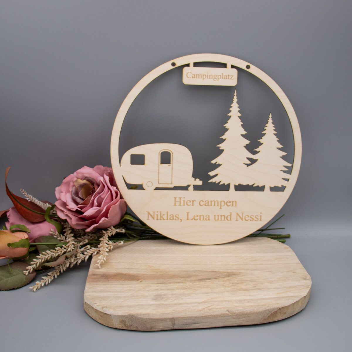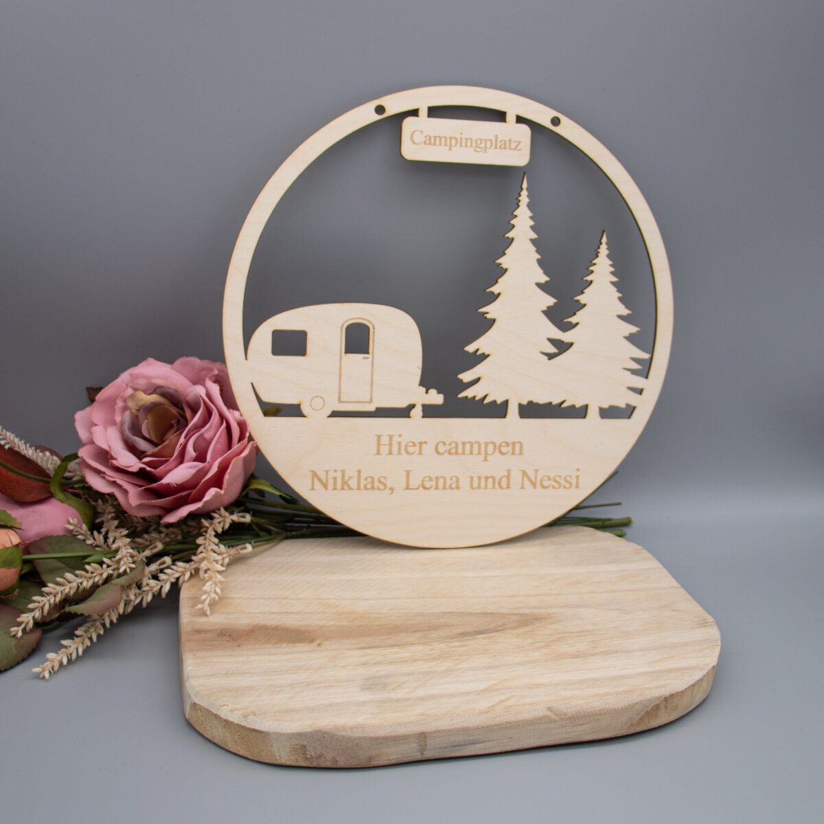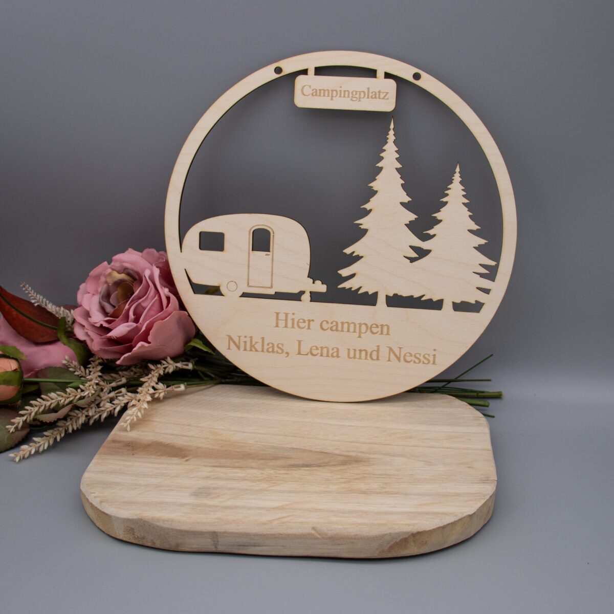 Die Größe der Schilder beträgt 23 cm, Solltet ihr nur Namen angeben steht „Hier Campen“ vor den Namen.