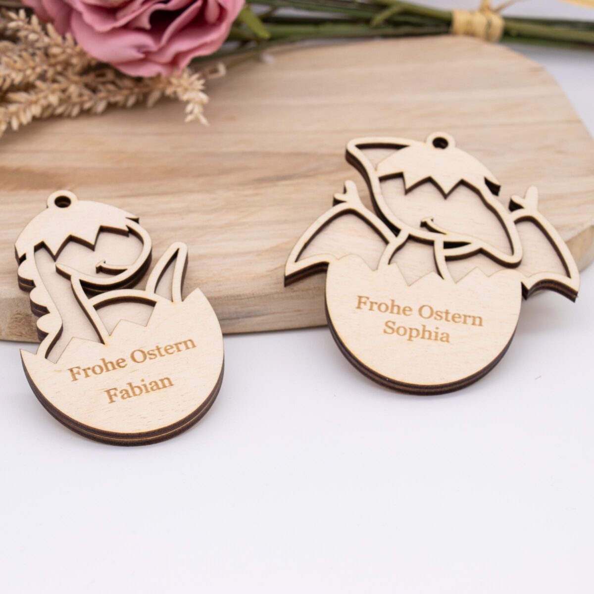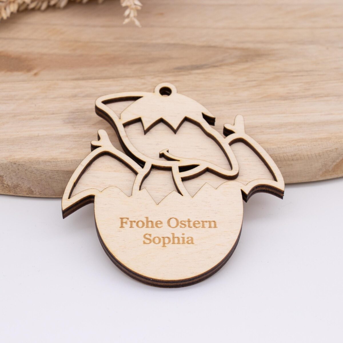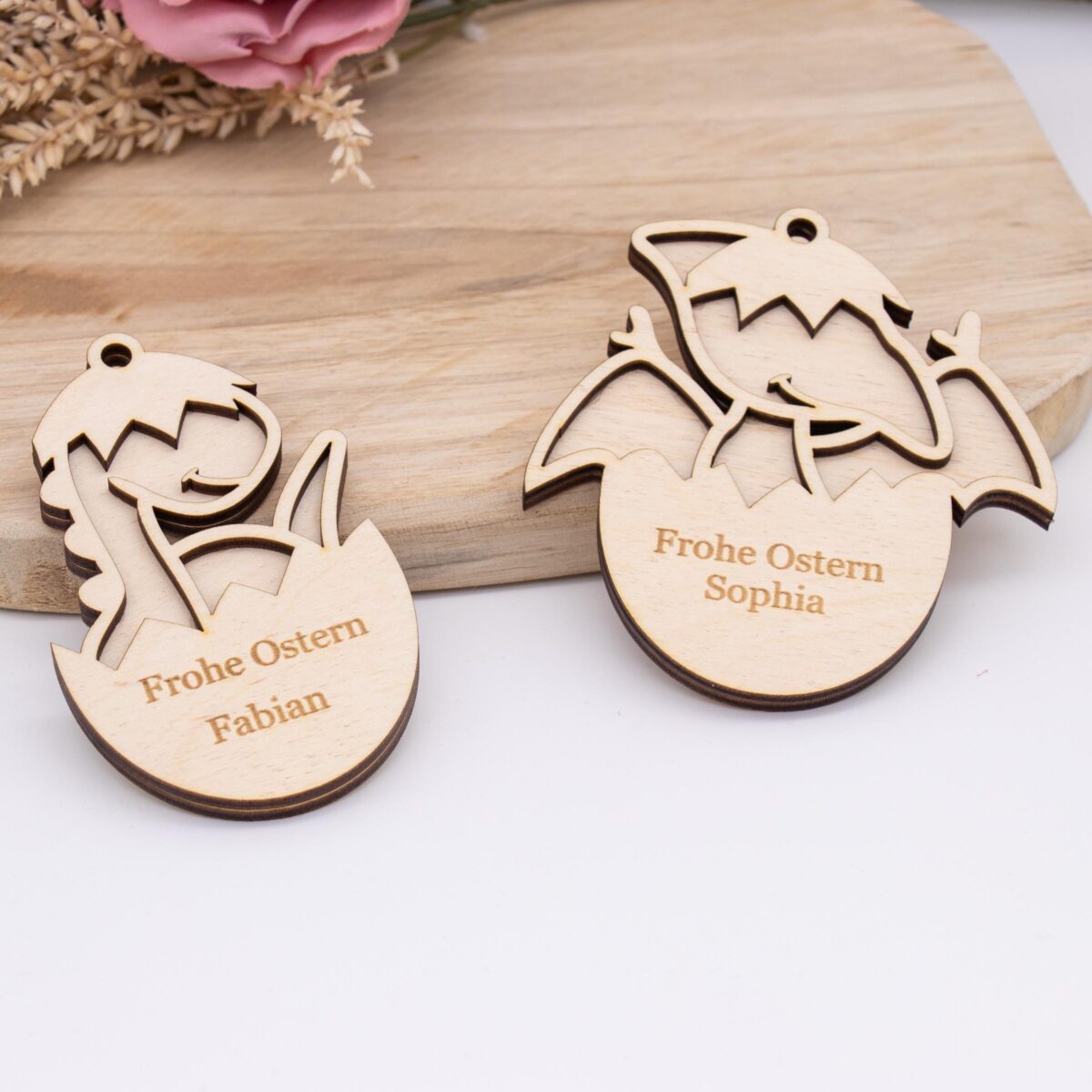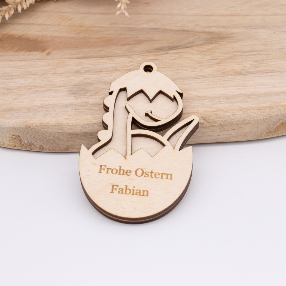 Holzanhänger für Kinder zu Ostern ( Dino ) – personalisiert
