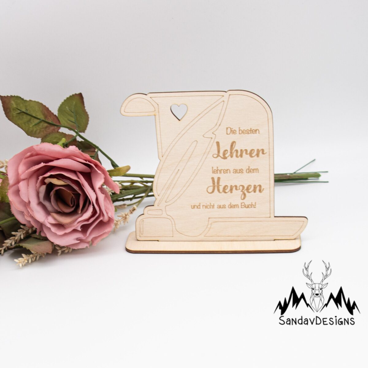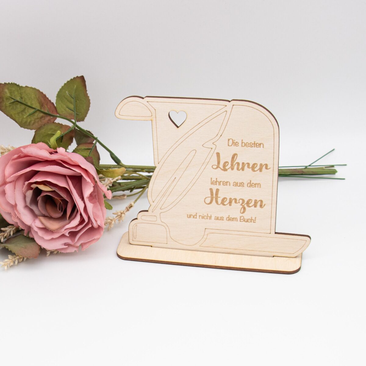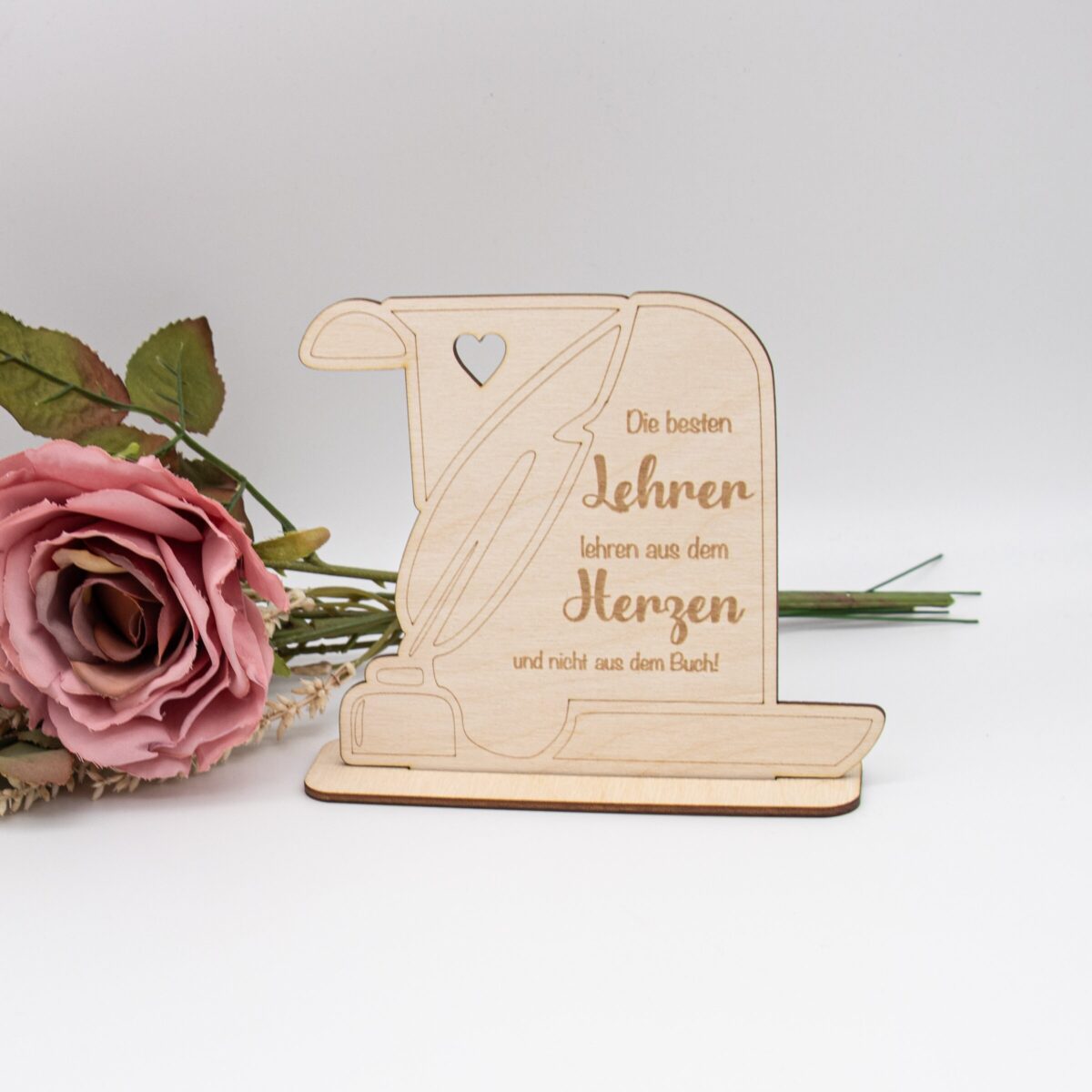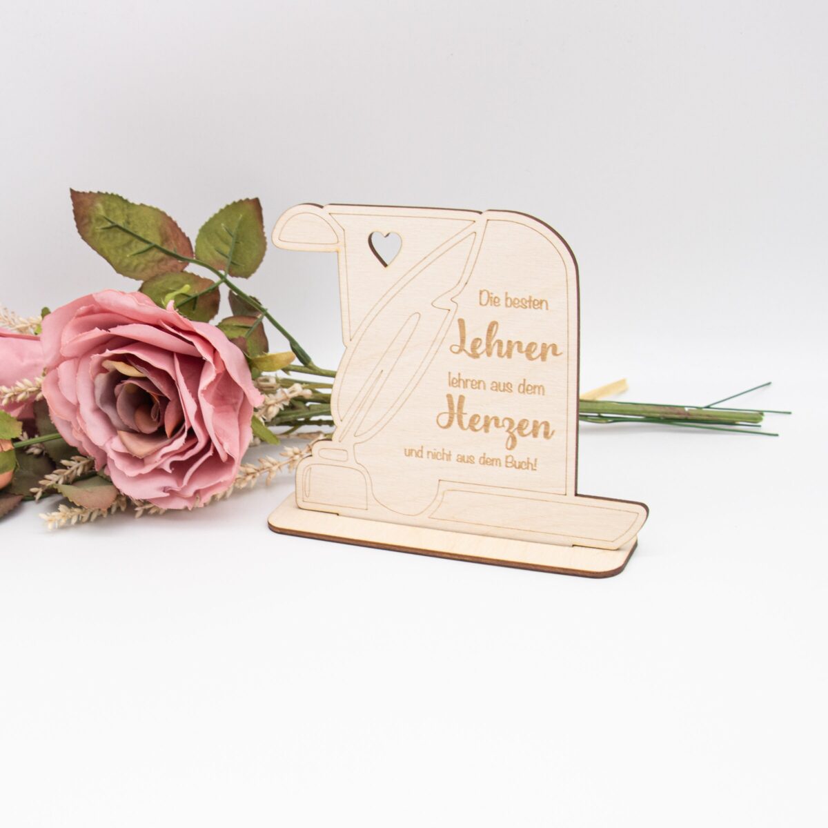 Dieser Holzaufsteller ist das perfekte Geschenk zum Lehrertag, als Abschiedsgeschenk am Schuljahresende, zur Ehrung eines besonderen Lehrers oder einfach als Dankeschön für die unermüdliche Arbeit und Unterstützung.