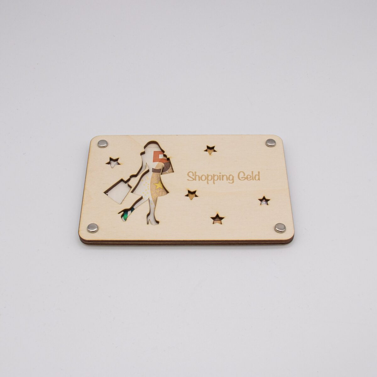 Mit der „Shopping Geld“ Geldgeschenk-Karte aus Birkenholz überreichen Sie nicht nur ein Geschenk, sondern auch eine bleibende Erinnerung.