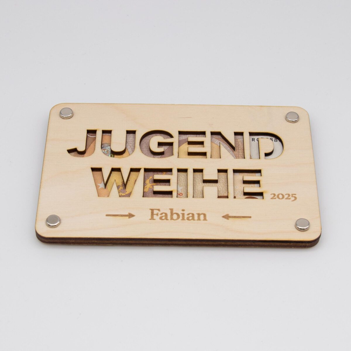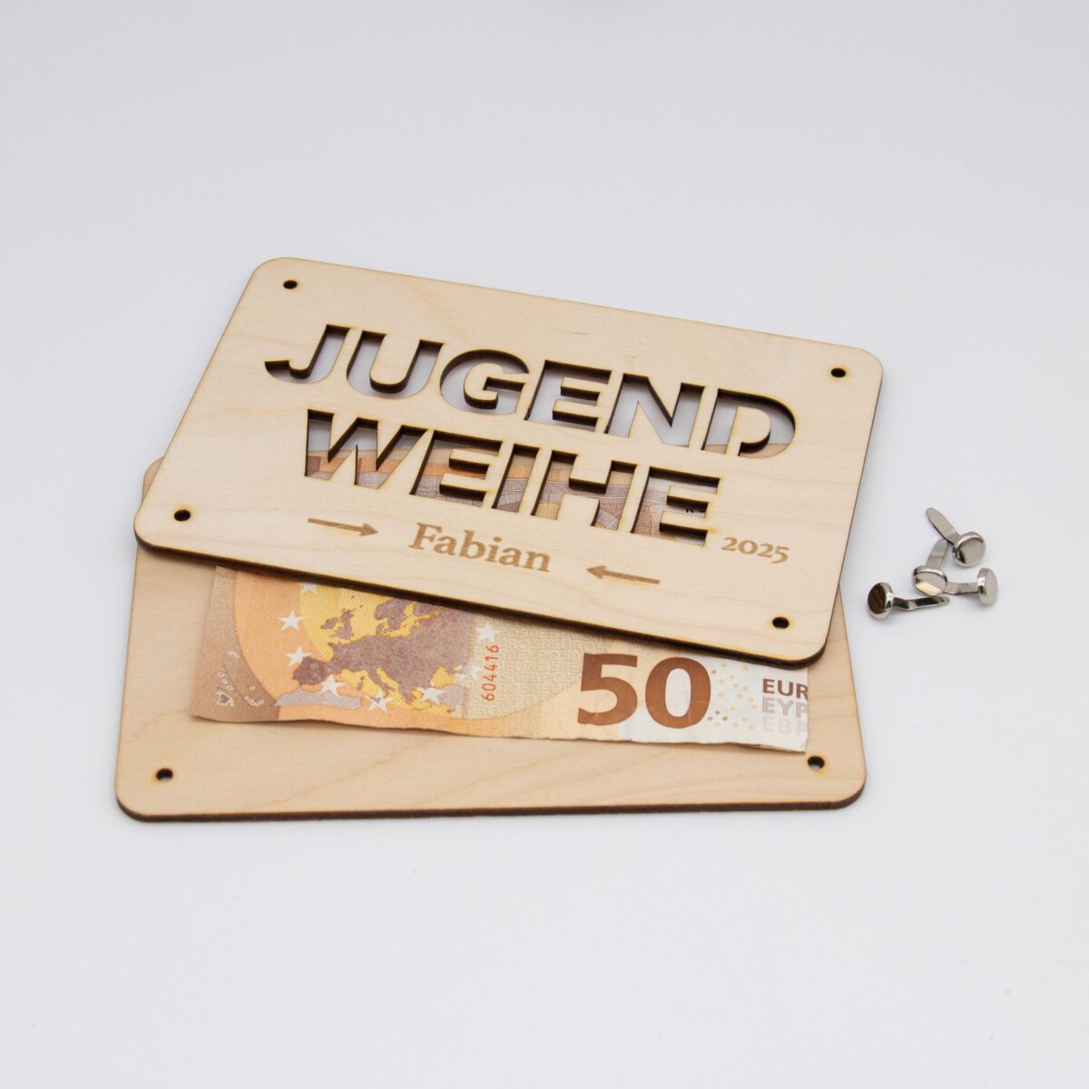 Mit der Jugendweihe Geldgeschenk-Karte aus Birkenholz überreichen Sie nicht nur ein Geschenk, sondern auch eine bleibende Erinnerung.