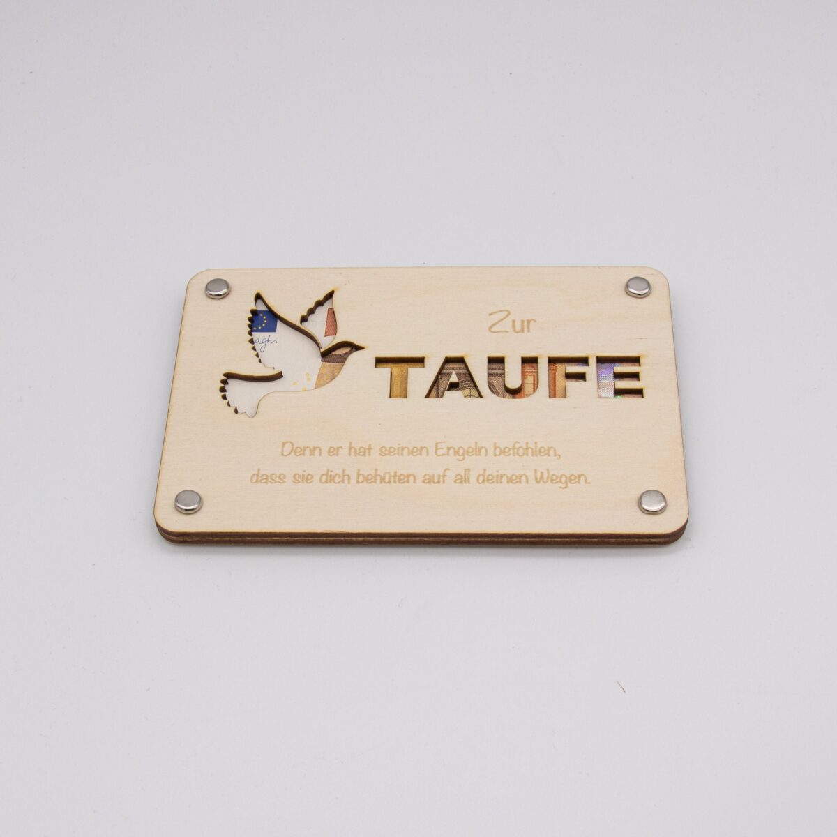 Holzkarte – Geschenkkarte – Geldgeschenk zur Taufe