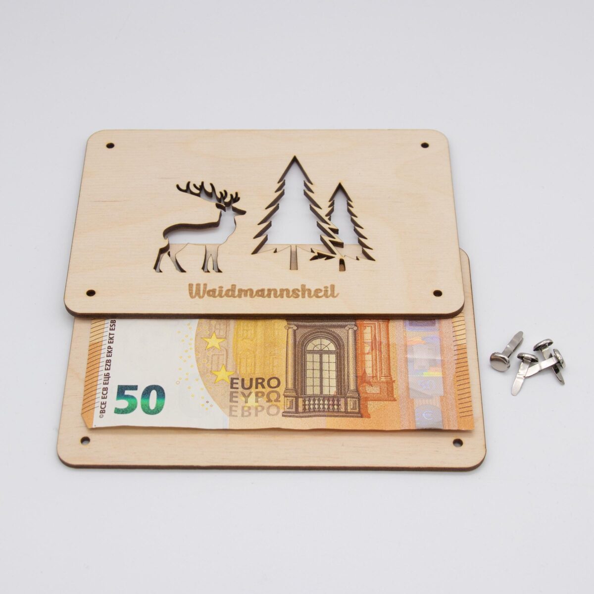 Design: Individuelles Lasermotiv, das den Blick auf das Geschenk-Geld freigibt