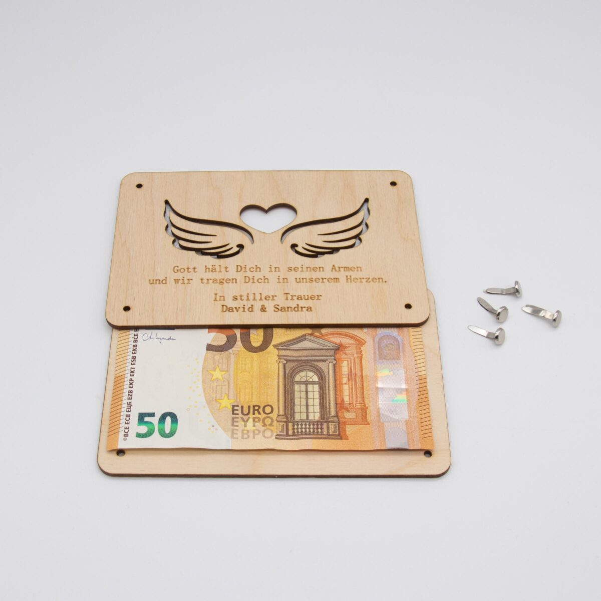 Design: Individuelles Lasermotiv, das den Blick auf das Geschenk-Geld freigibt