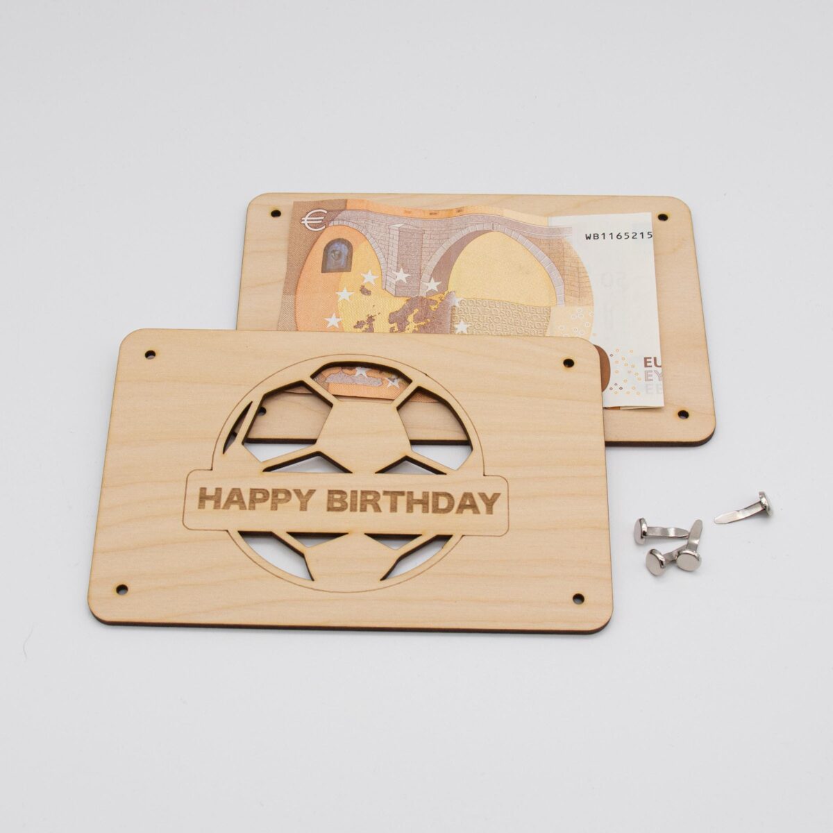Nachhaltigkeit und Qualität: Gefertigt aus robustem und natürlichem Birken-Sperrholz, steht diese Karte nicht nur für Qualität, sondern auch für Nachhaltigkeit. Das Holz verleiht dem Geschenk eine warme, natürliche Ausstrahlung, die sich von herkömmlichen Geldgeschenken abhebt.