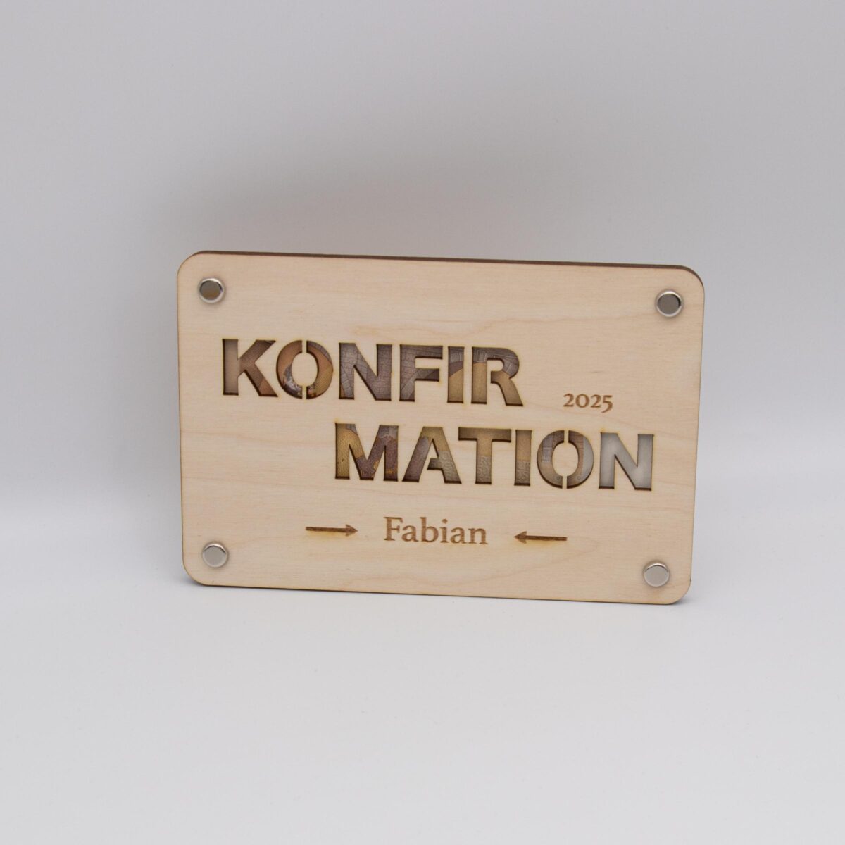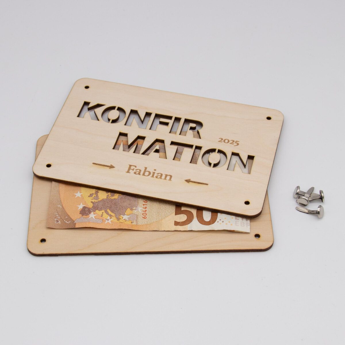 Mit der Konfirmation Geldgeschenk-Karte aus Birkenholz überreichen Sie nicht nur ein Geschenk, sondern auch eine bleibende Erinnerung.